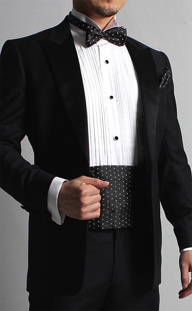 VANNERS生地使用 カマーバンド ペイズリードット ブラック シルク 黒 フォーマル タキシード 結婚式 新郎 パーティ ドレスコード 日本製