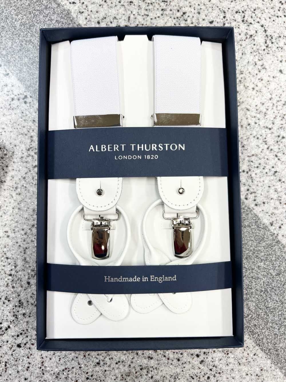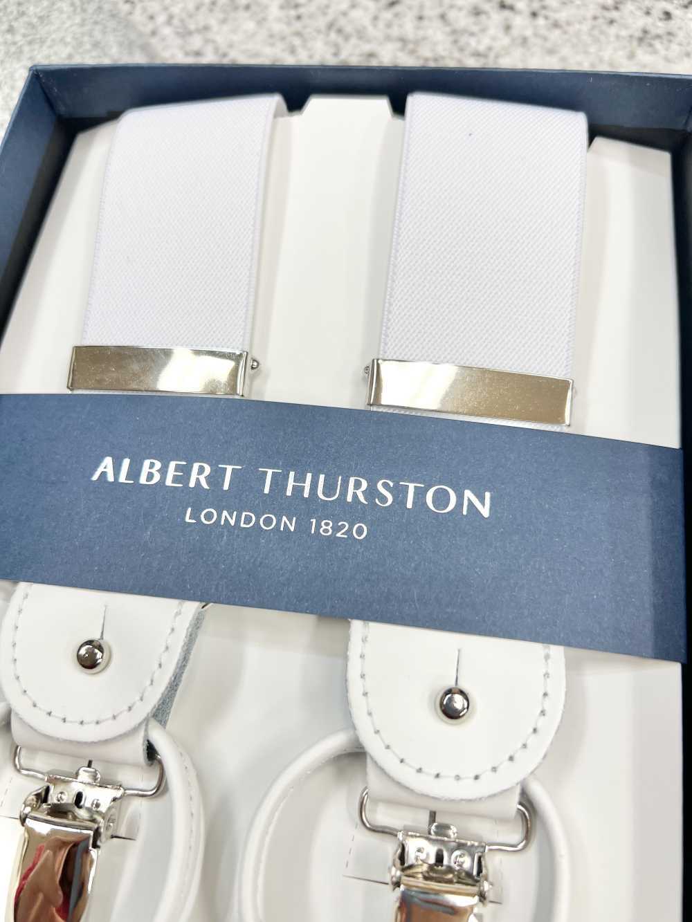 ALBERT THURSTON(アルバートサーストン) サスペンダー ホワイト 白無地 フォーマル ブレイシーズ ギフト プレゼント お洒落 イタリア タキシード 礼服