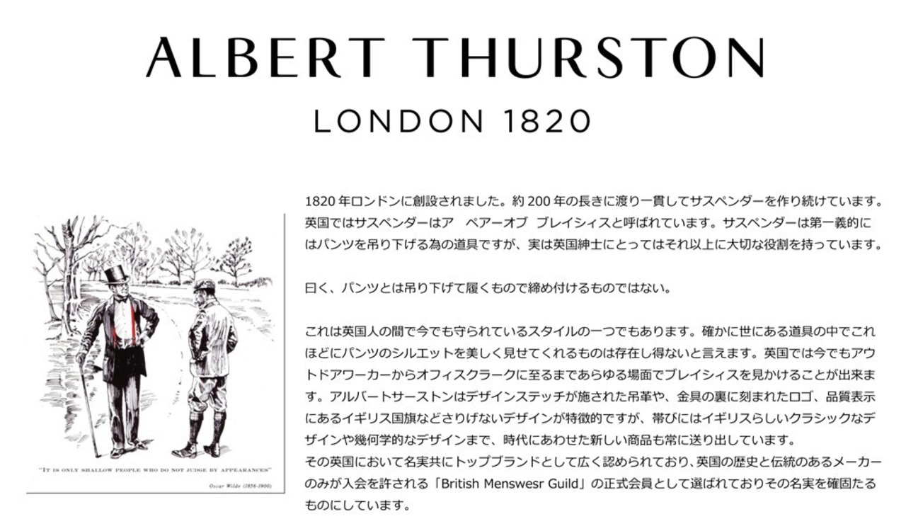 英国紳士をはじめ、世界の著名人に今も尚、愛され続けているサスペンダーのブランド。