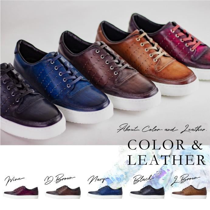 レザースニーカー ラバーソール 大人スニーカー シンプル ドレススニーカー 本革 パンチング 日本製 ユニセックス