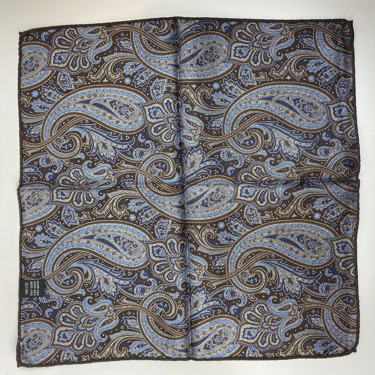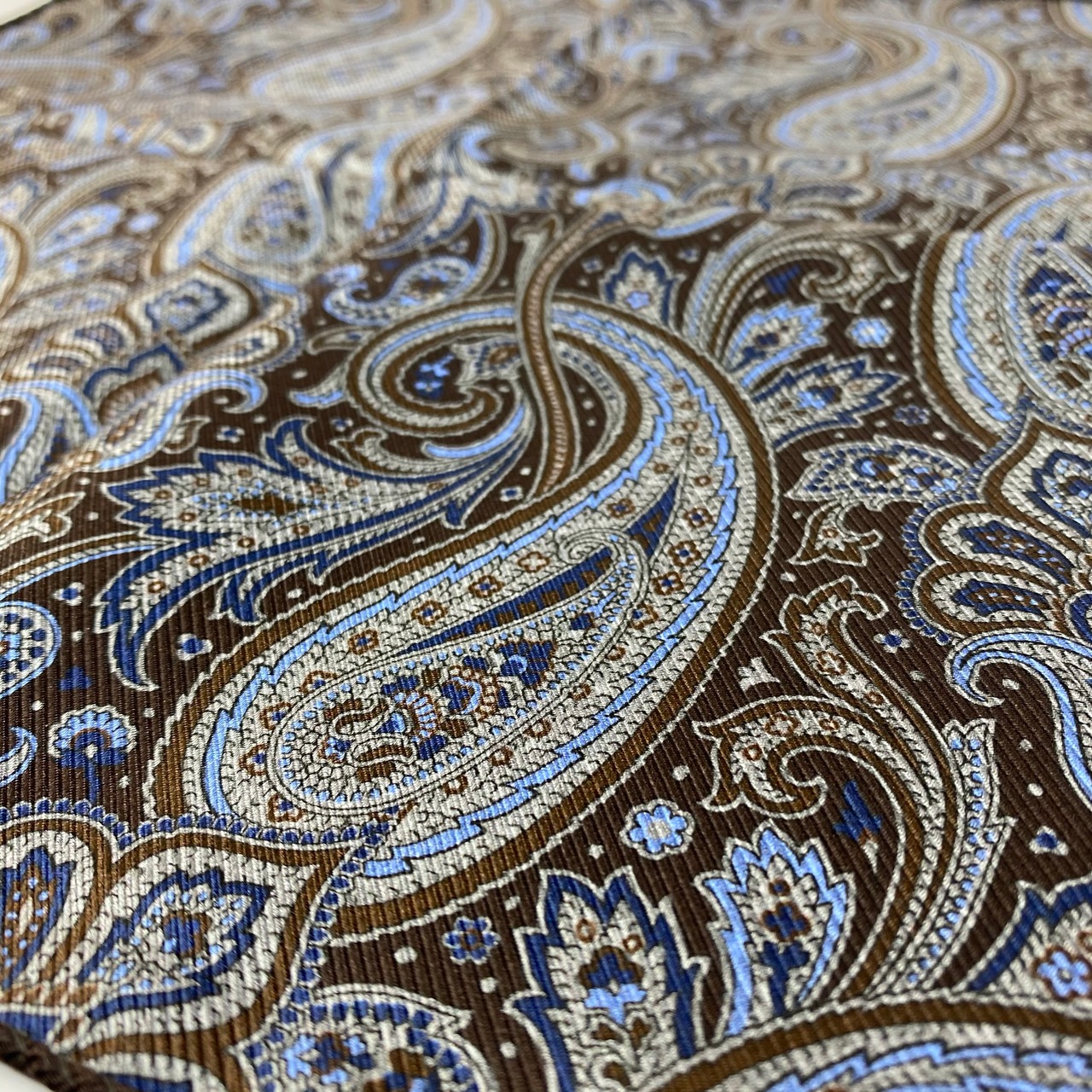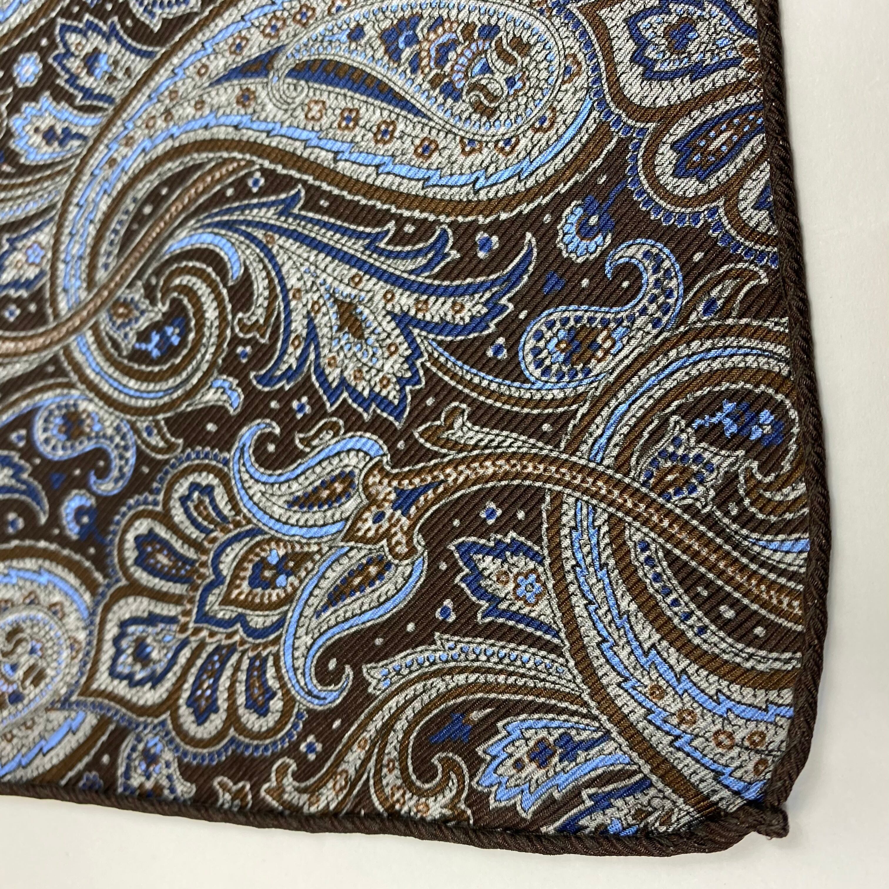 イタリア産 ブラウンドット×ペイズリー リバーシブル シルクチーフ ポケットチーフ お洒落 プレゼント ギフト Vゾーン