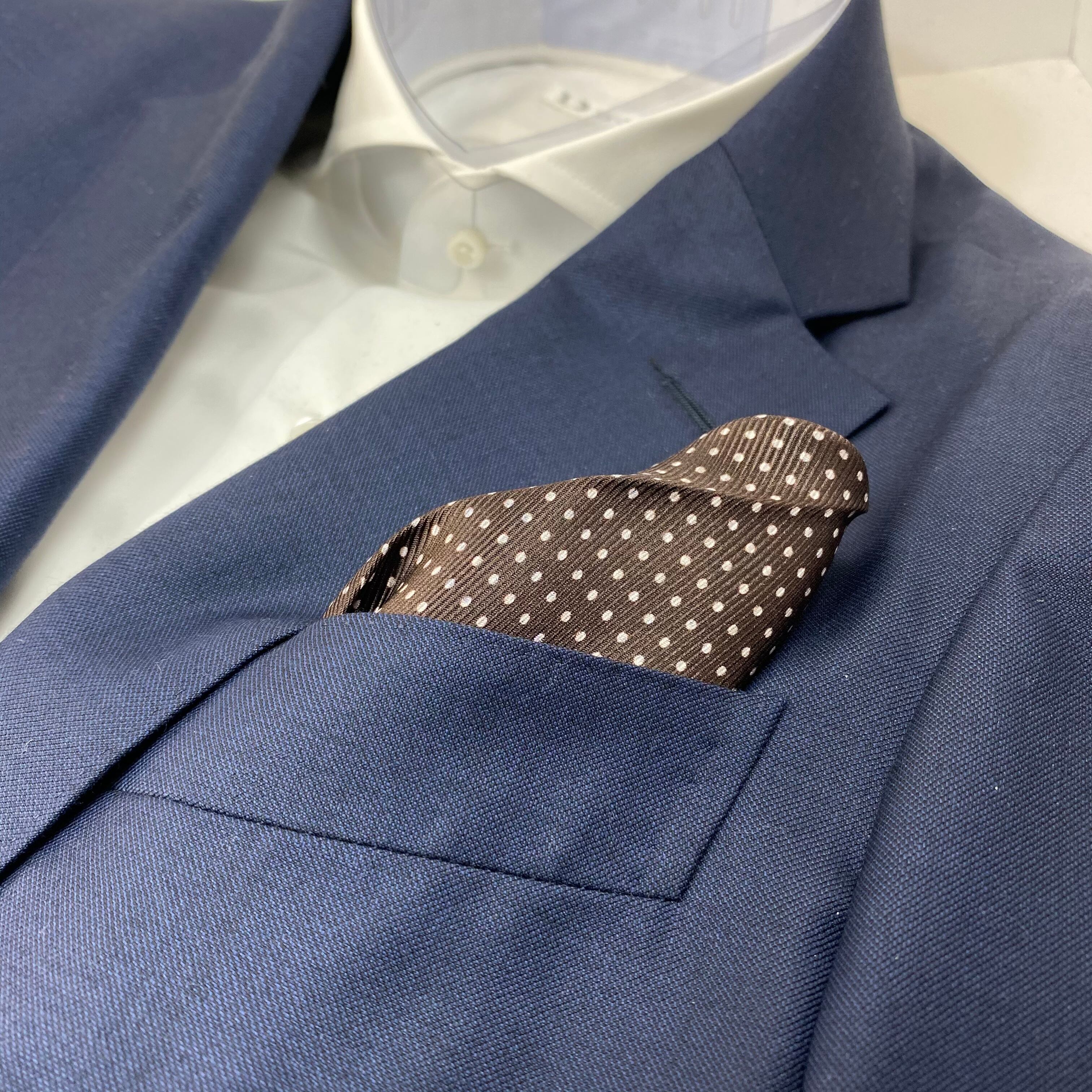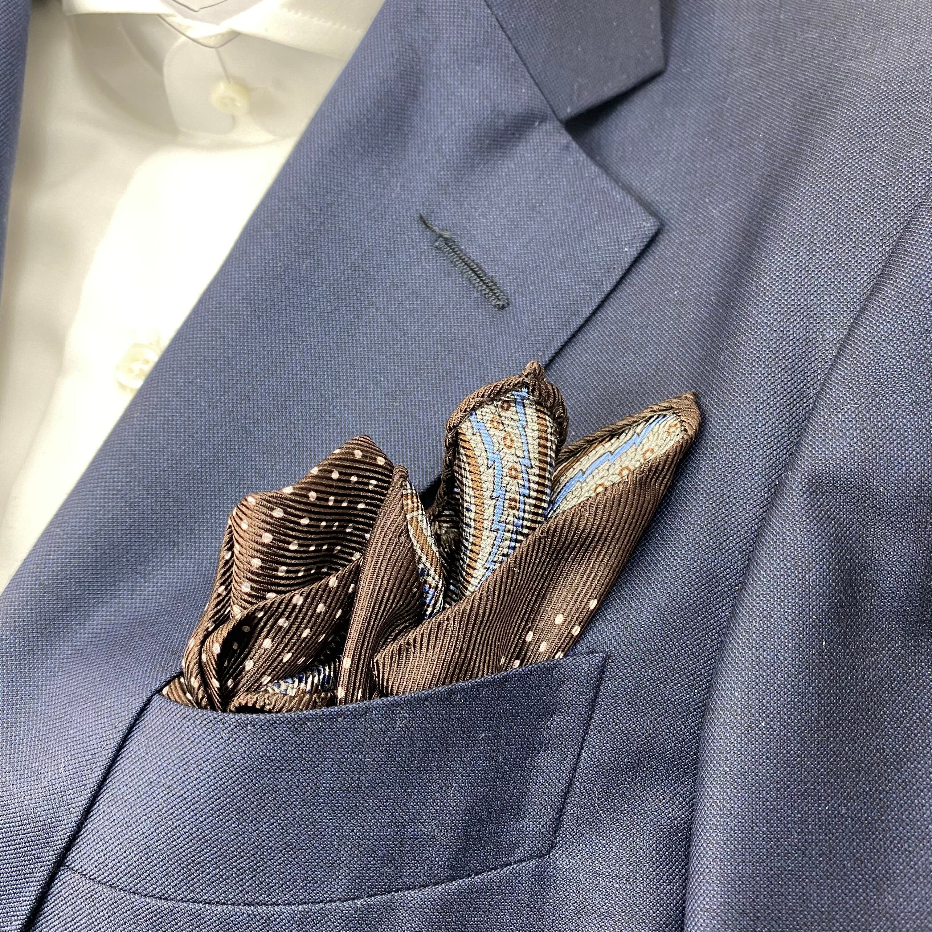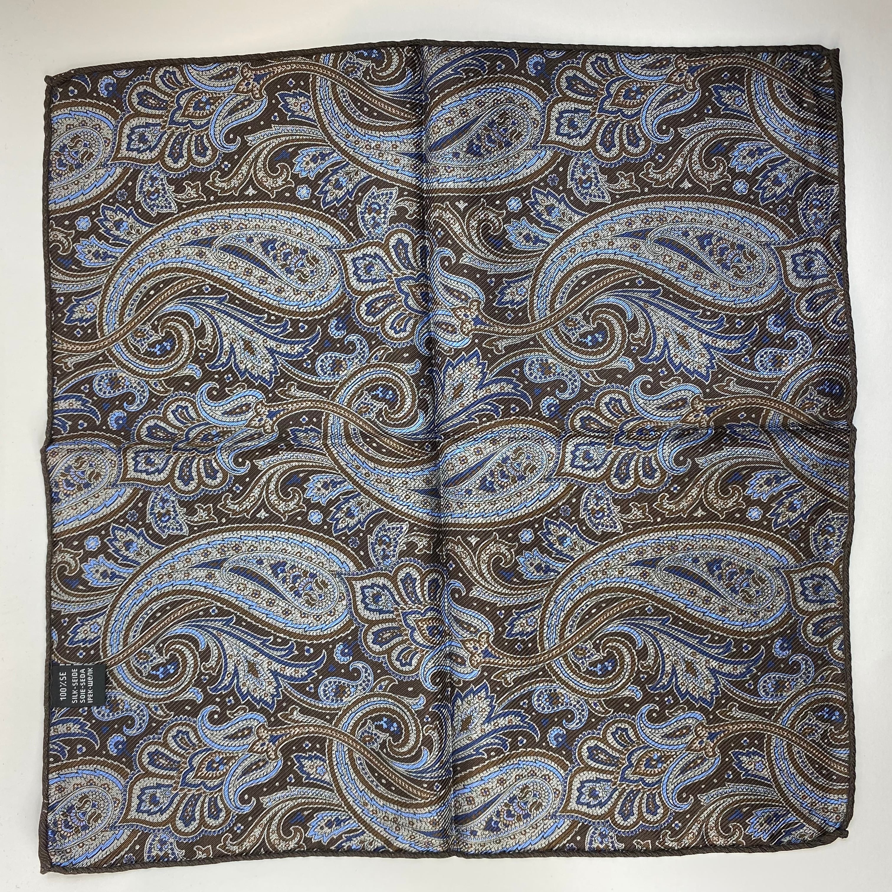 イタリア産 ブラウンドット×ペイズリー リバーシブル シルクチーフ ポケットチーフ お洒落 プレゼント ギフト Vゾーン