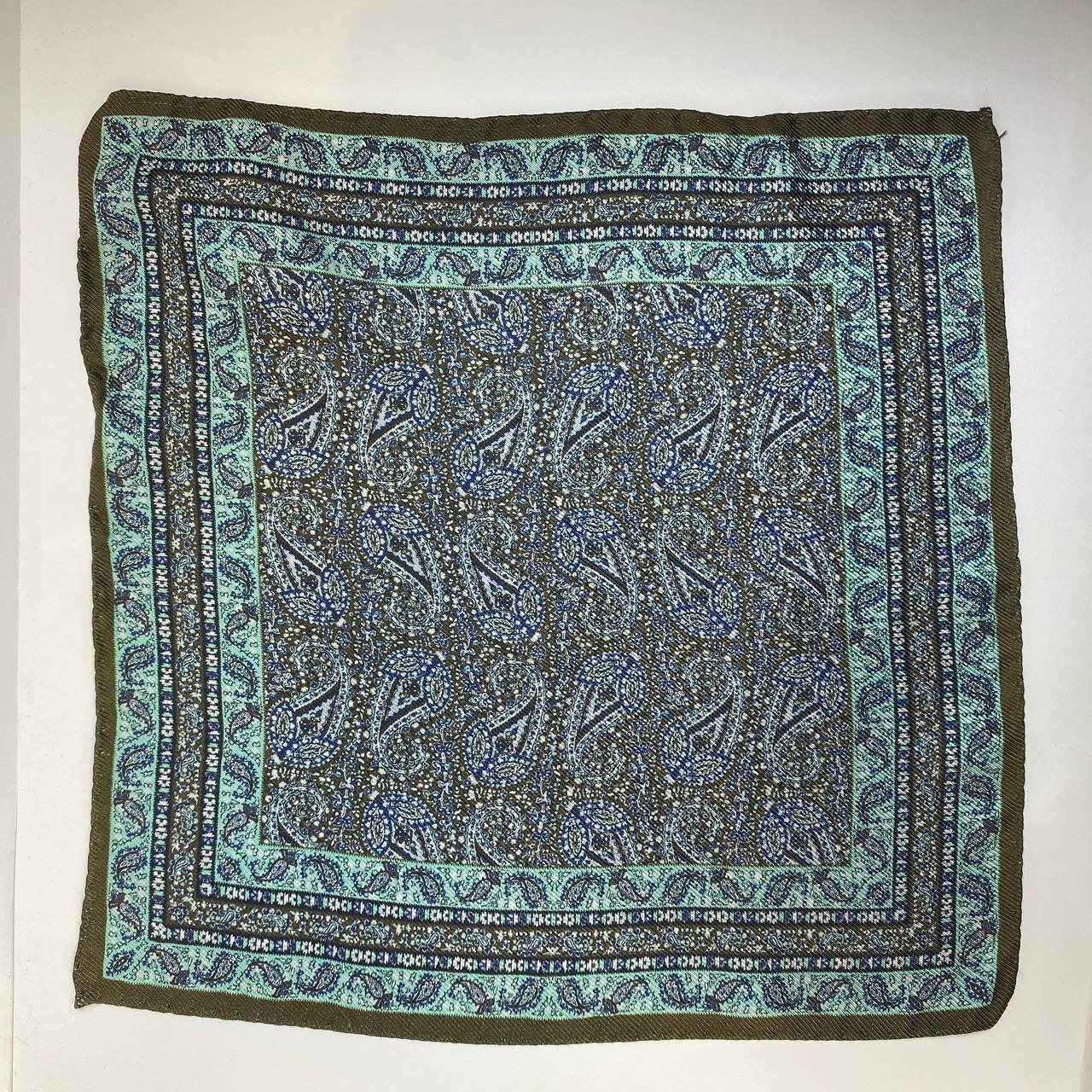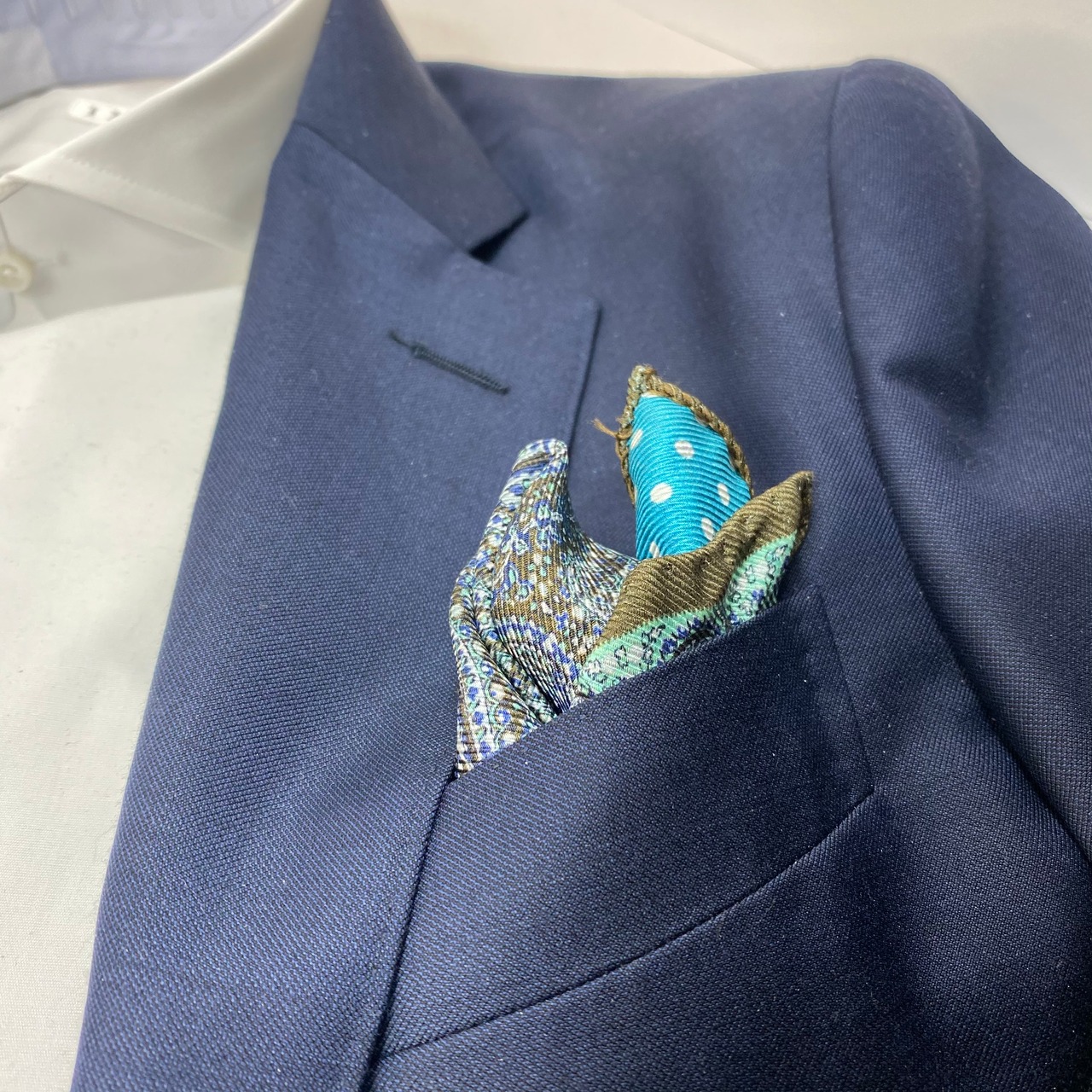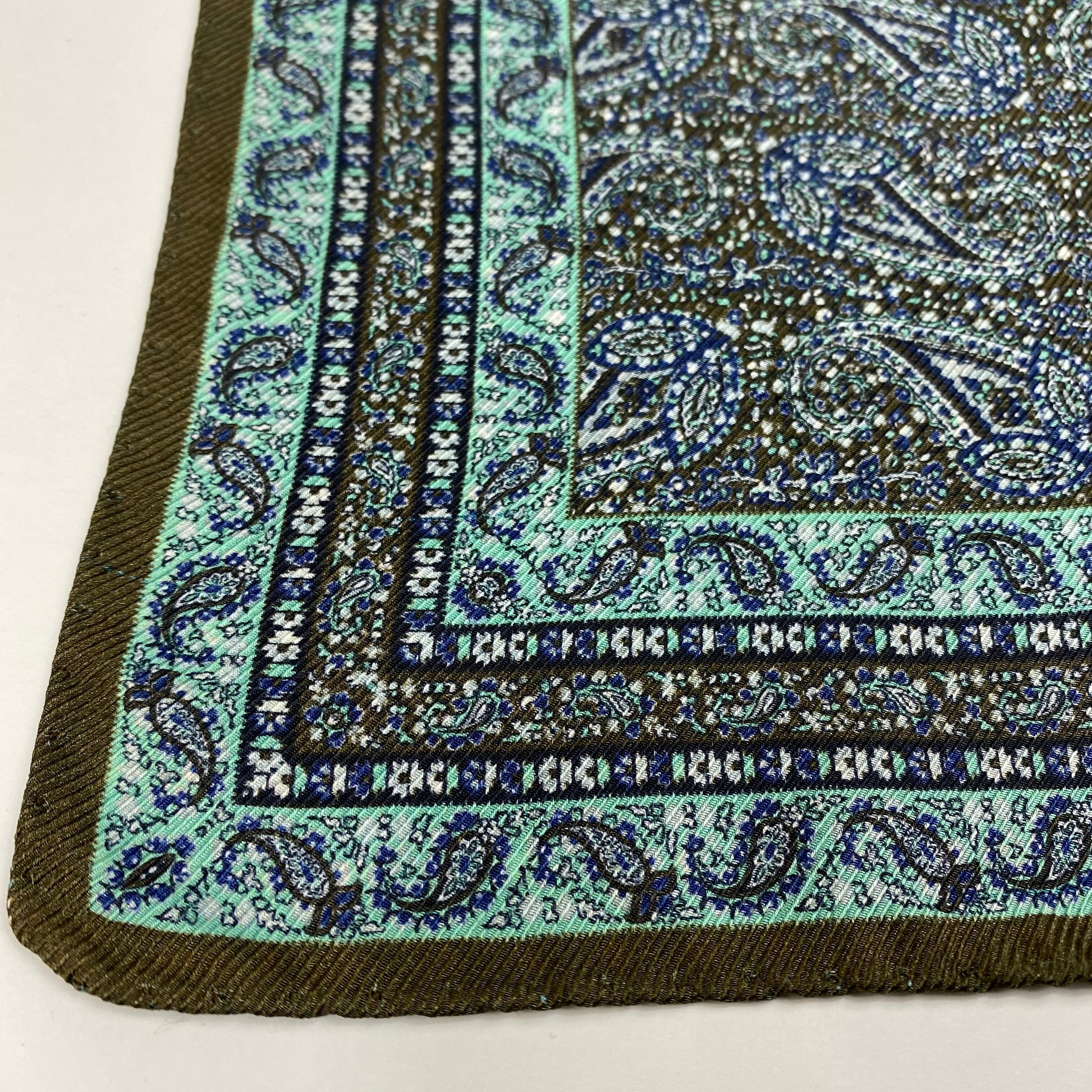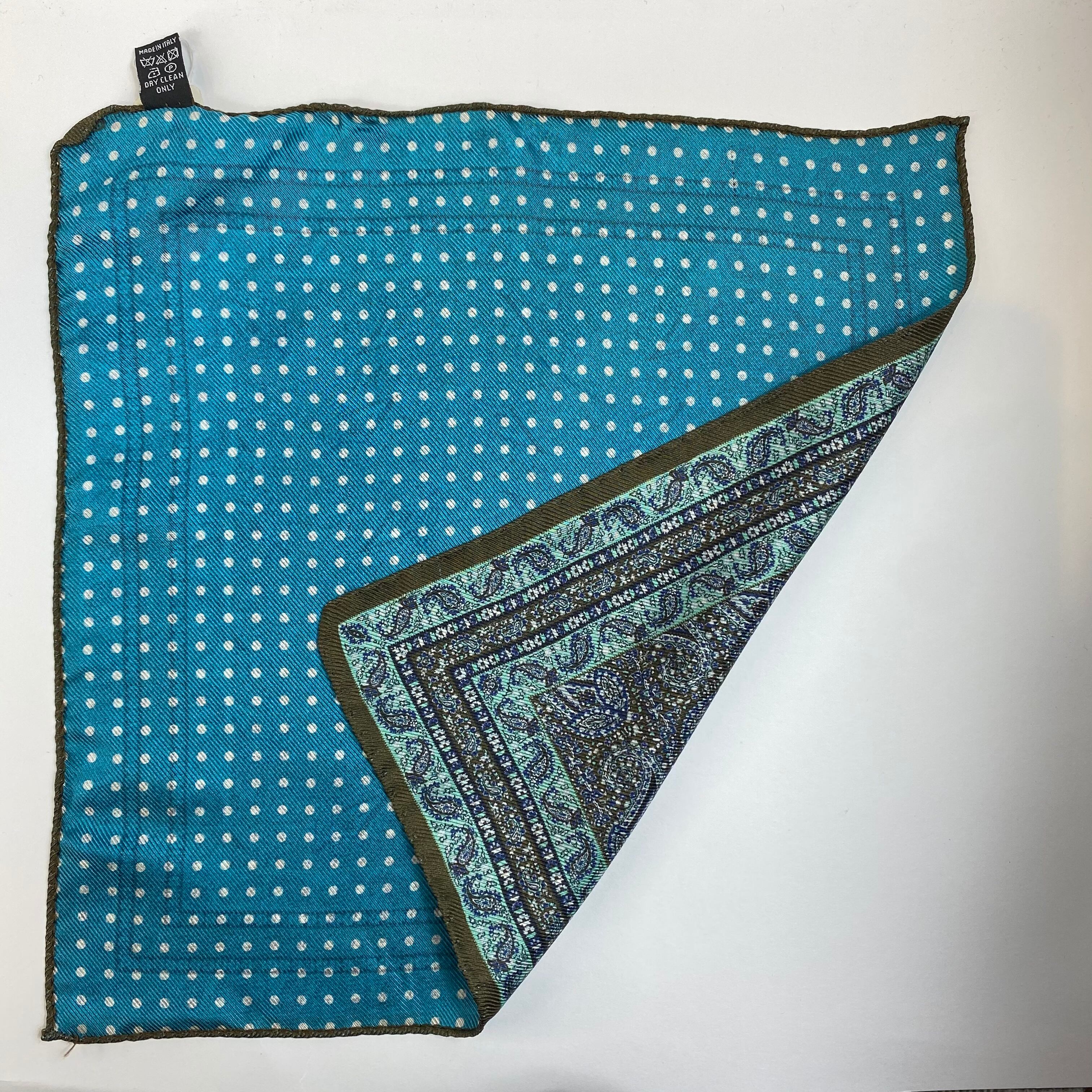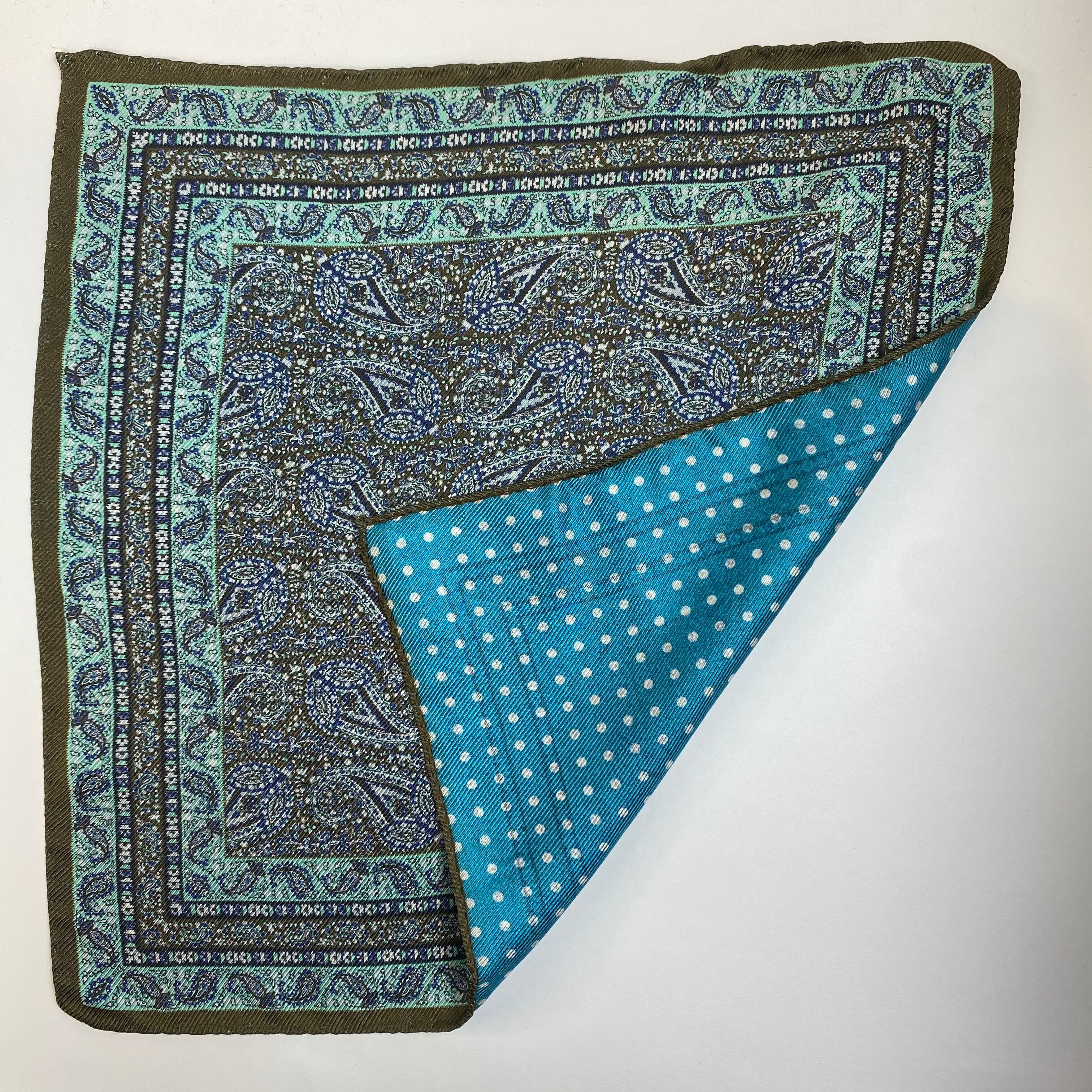 イタリア産 ミントグリーンペイズリー×ブルーグリーン ピンドット リバーシブルチーフ ポケットチーフ お洒落 プレゼント ギフト Vゾーン