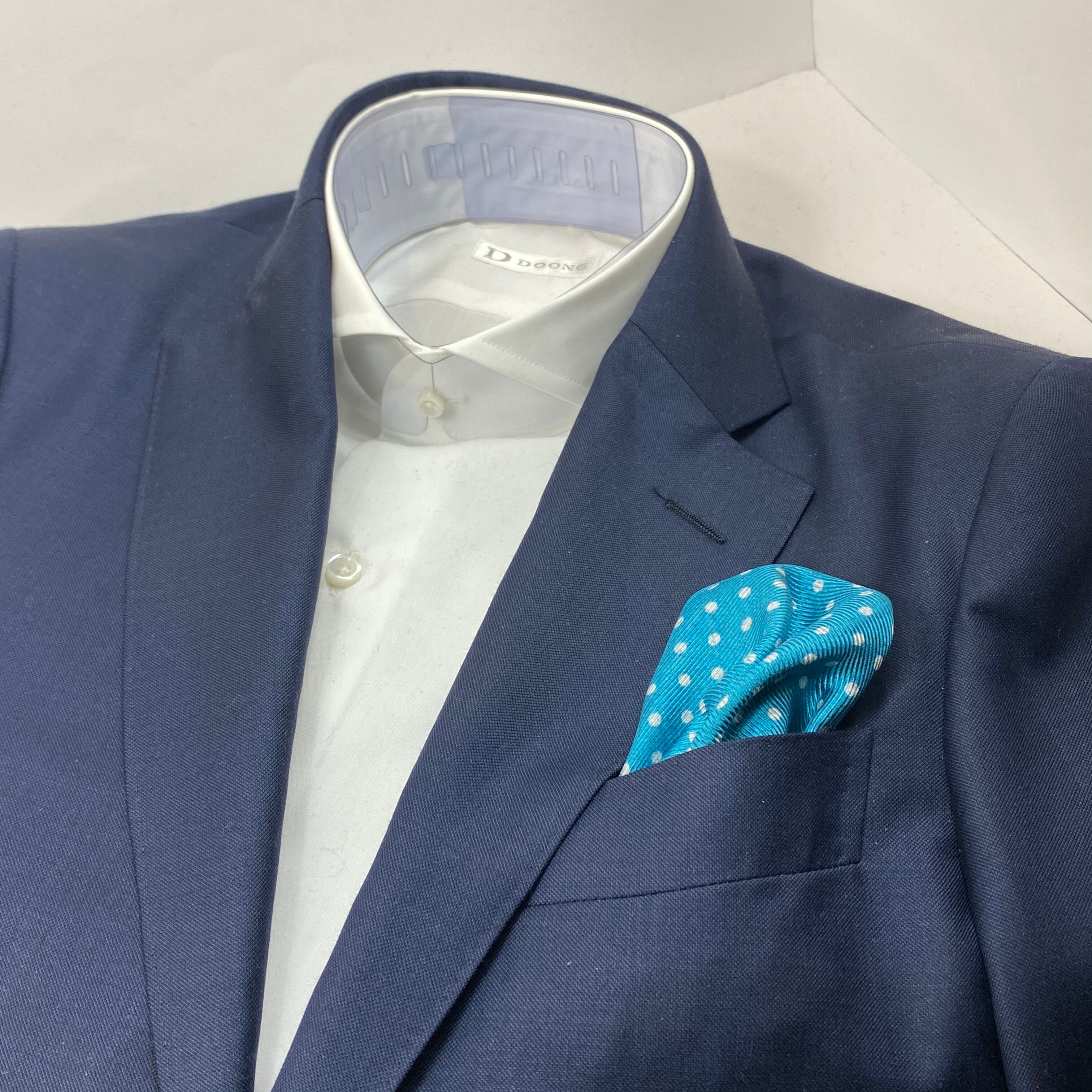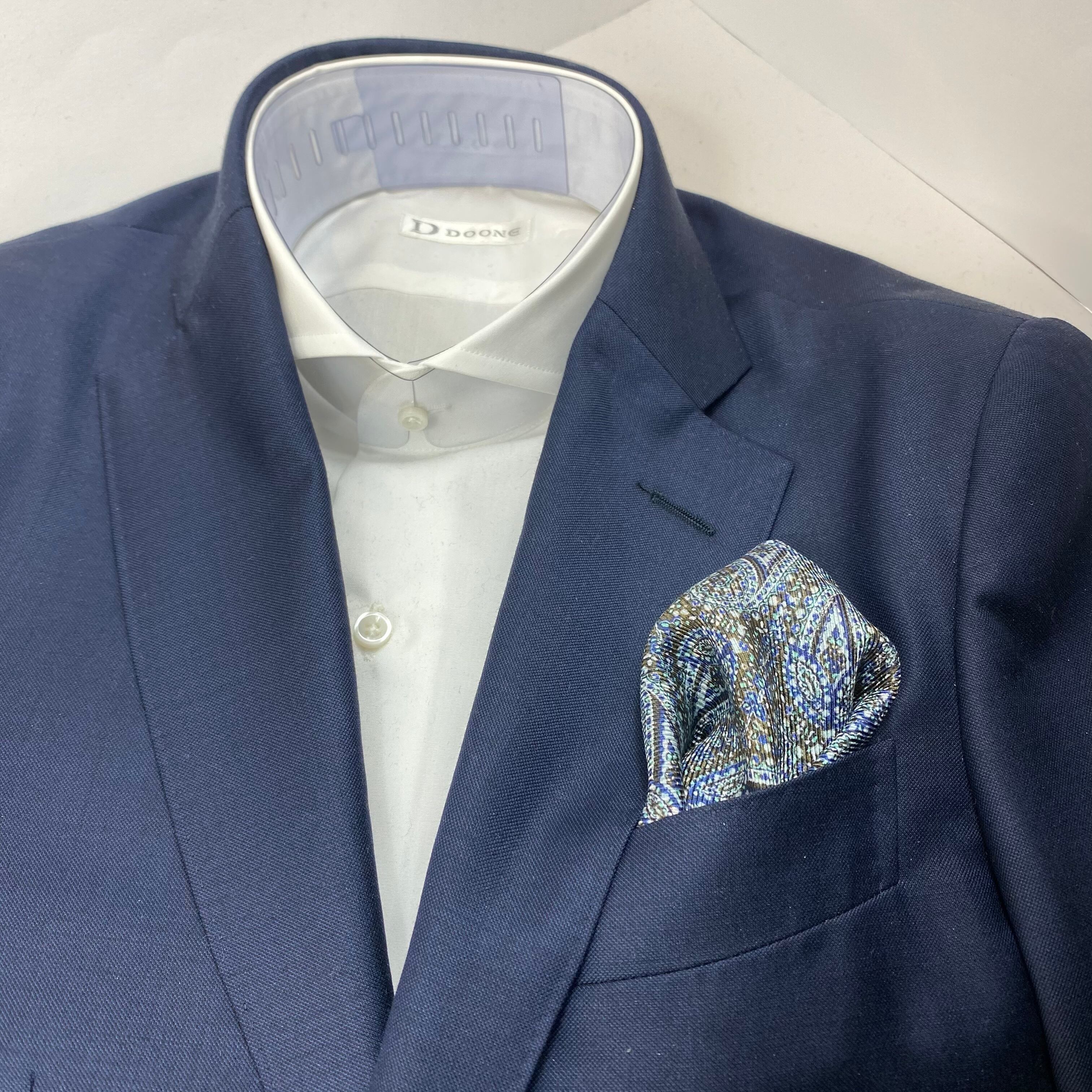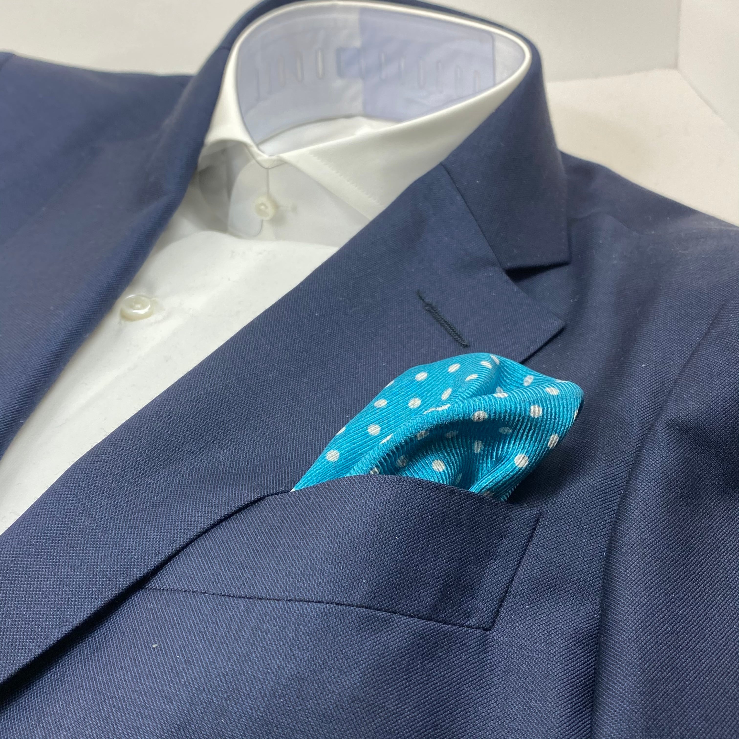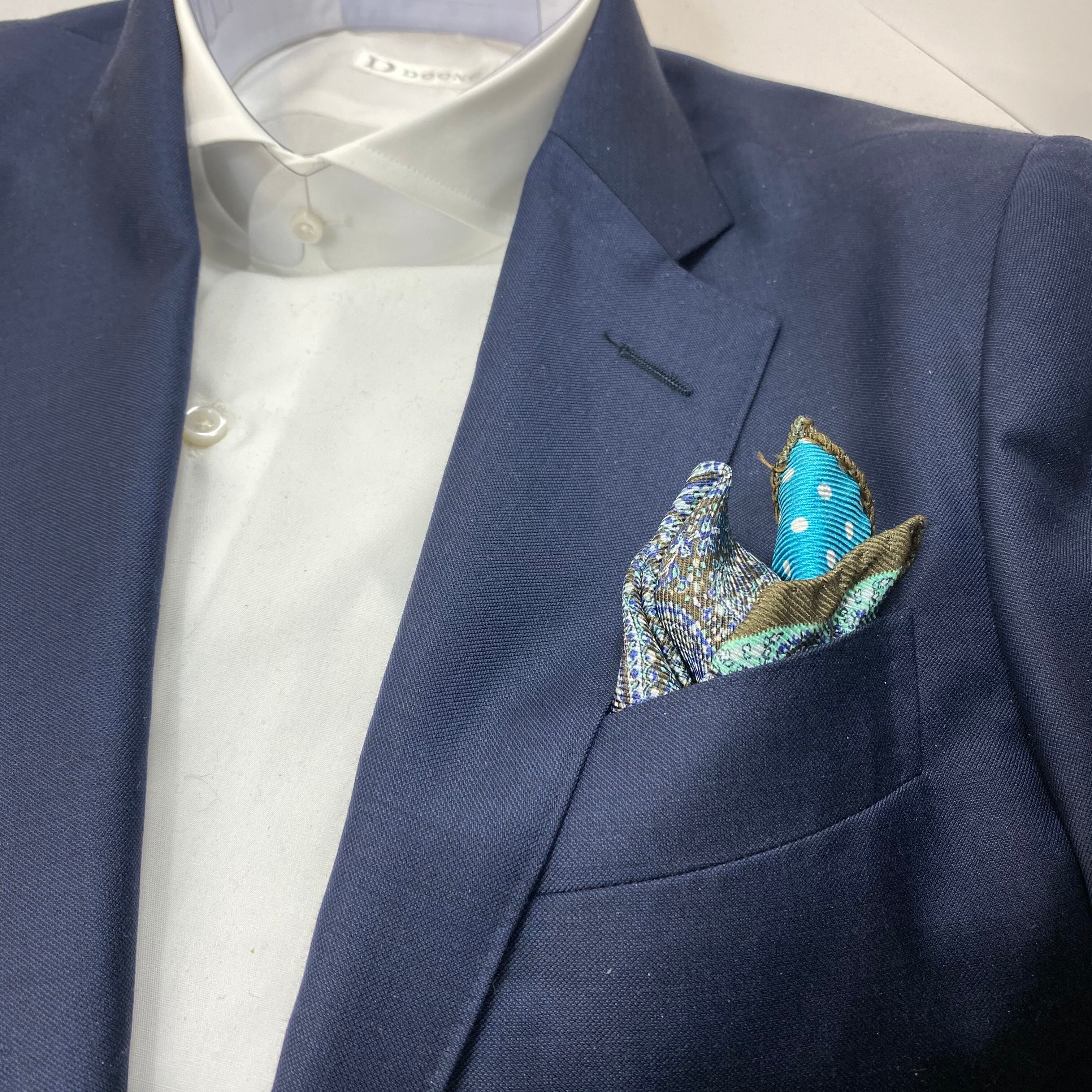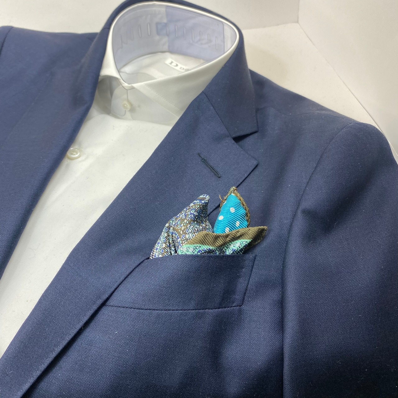 イタリア産 ミントグリーンペイズリー×ブルーグリーン ピンドット リバーシブルチーフ ポケットチーフ お洒落 プレゼント ギフト Vゾーン