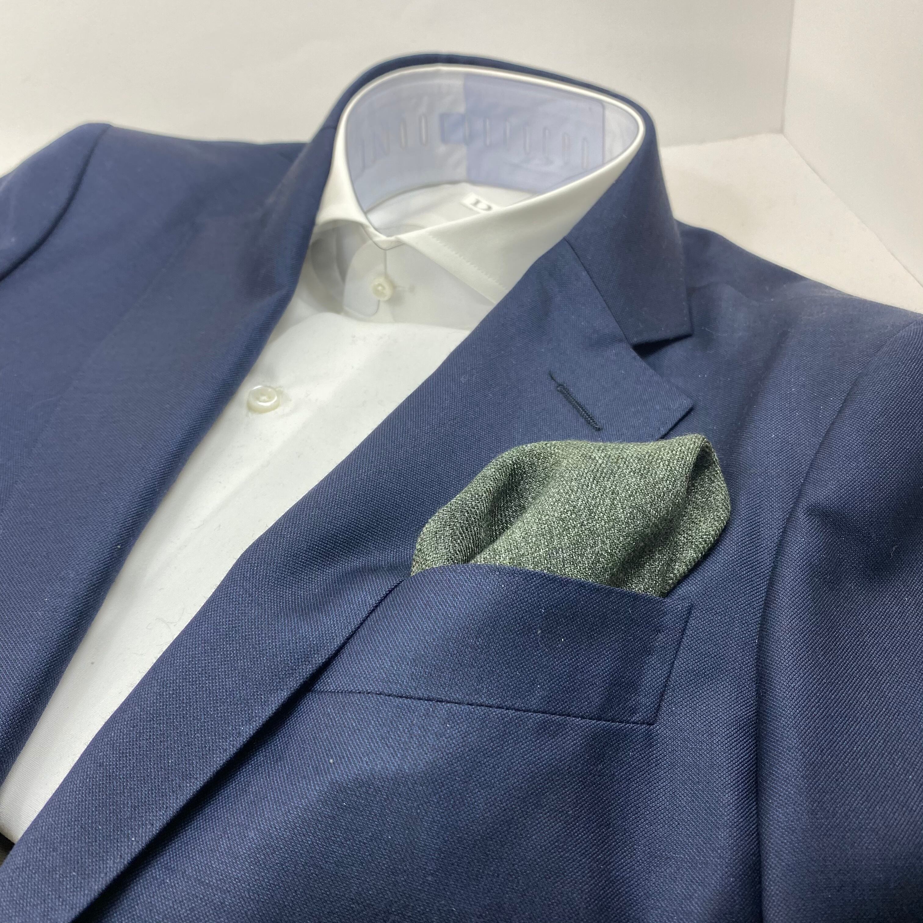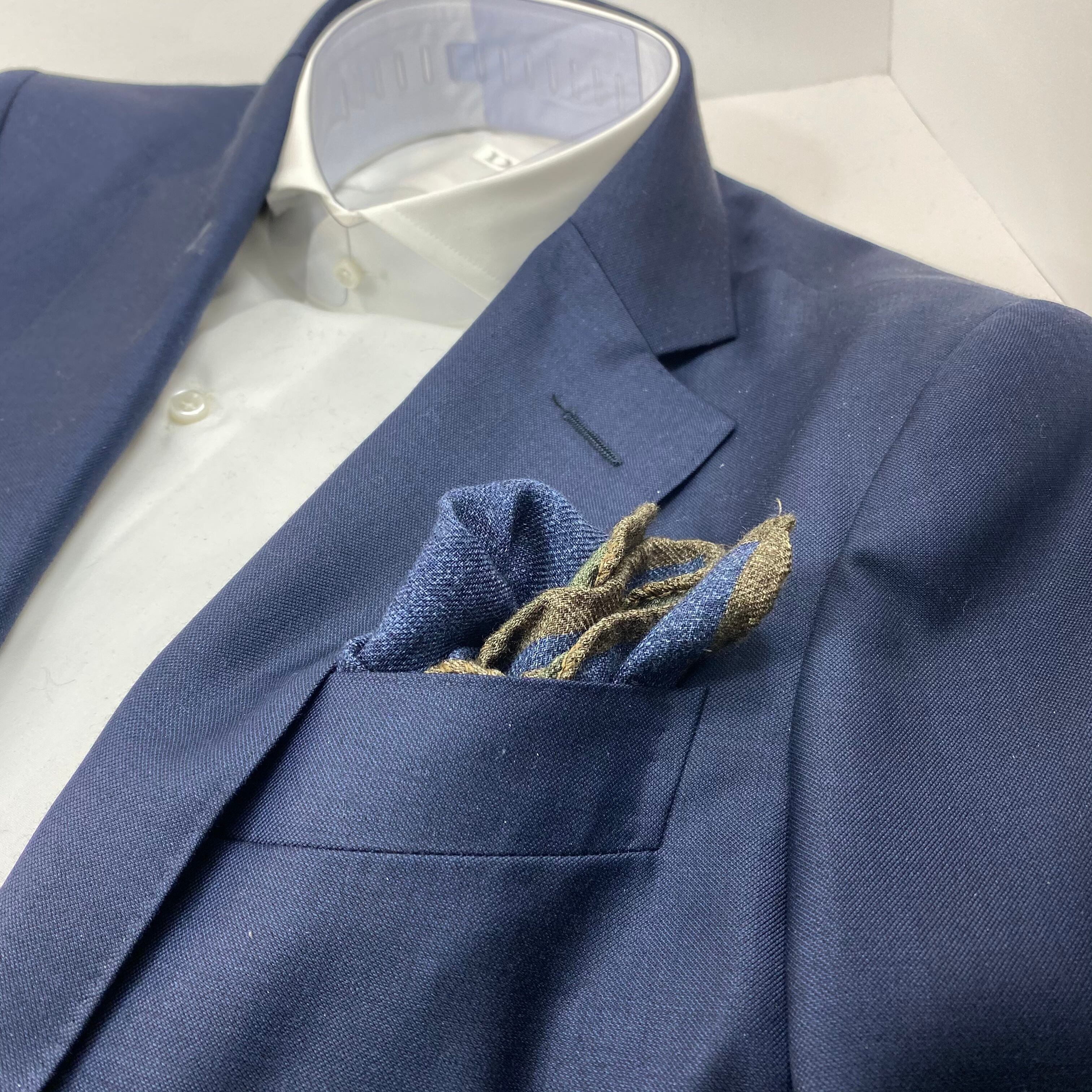 イタリア産 ブルー×カーキグリーン ウール リバーシブルチーフ ポケットチーフ お洒落 プレゼント ギフト Vゾーン