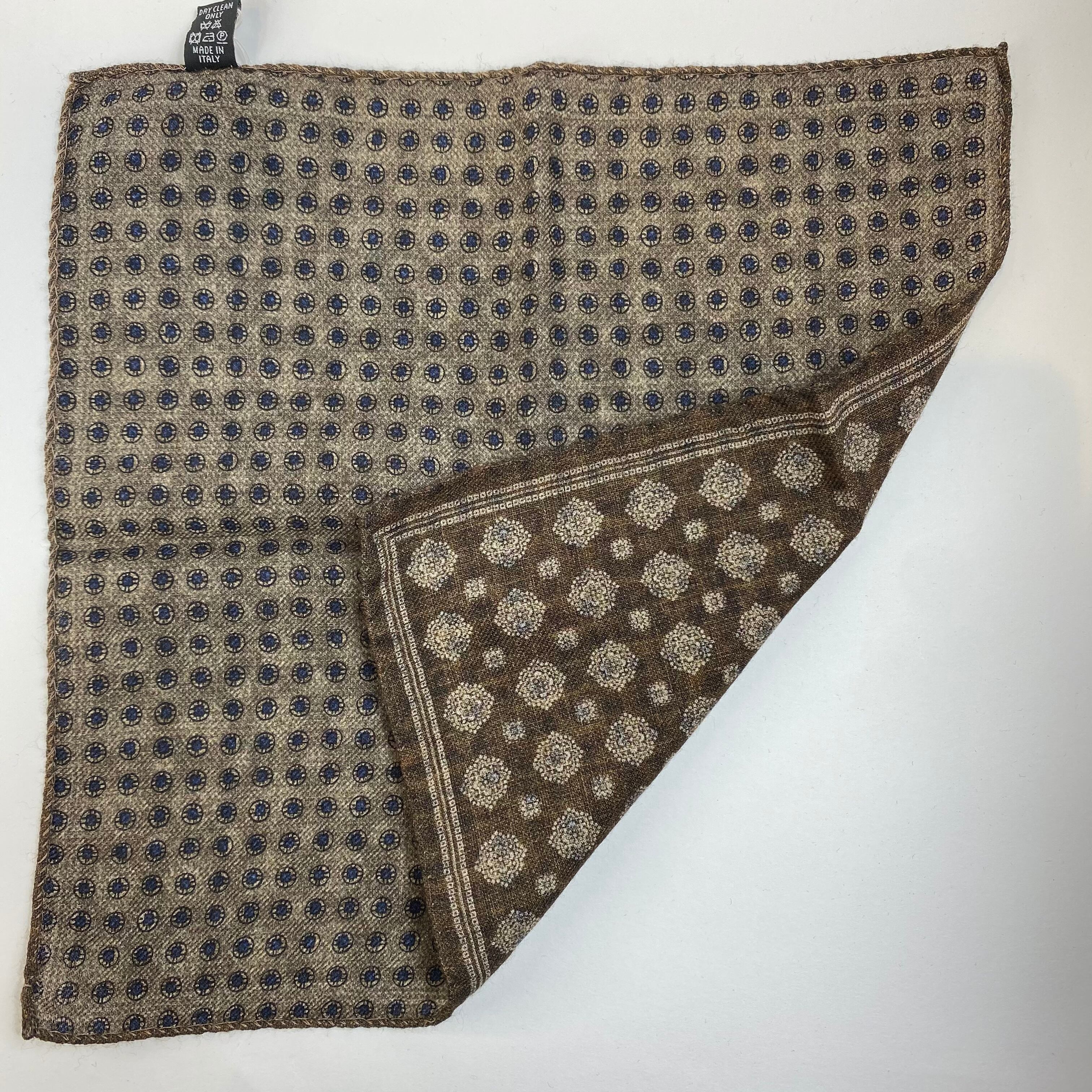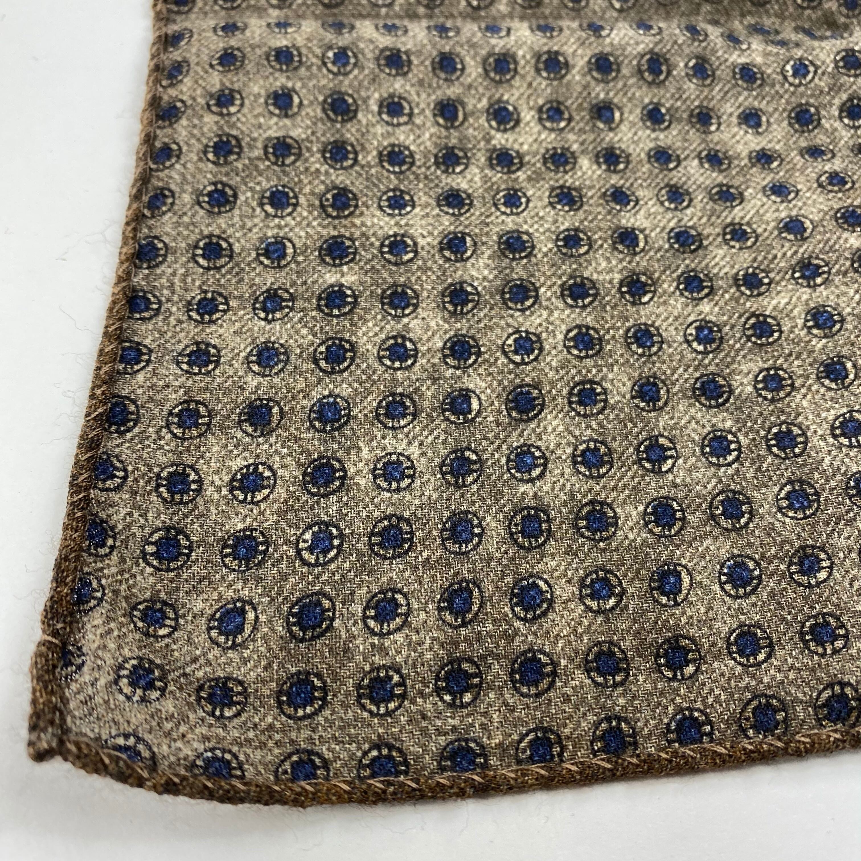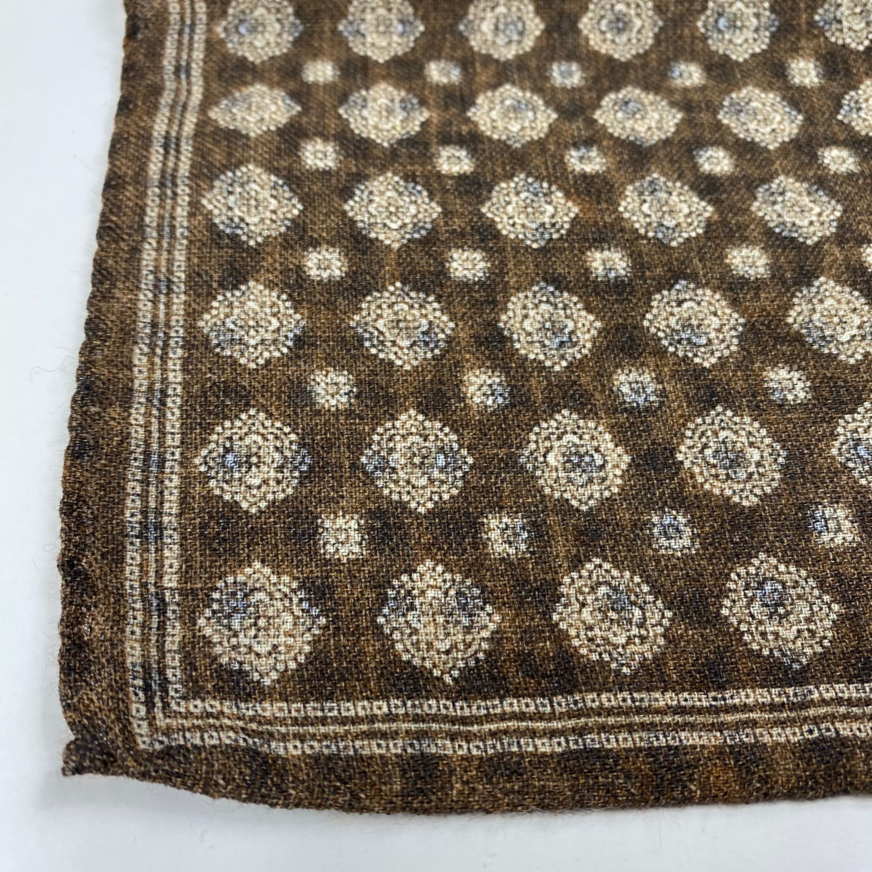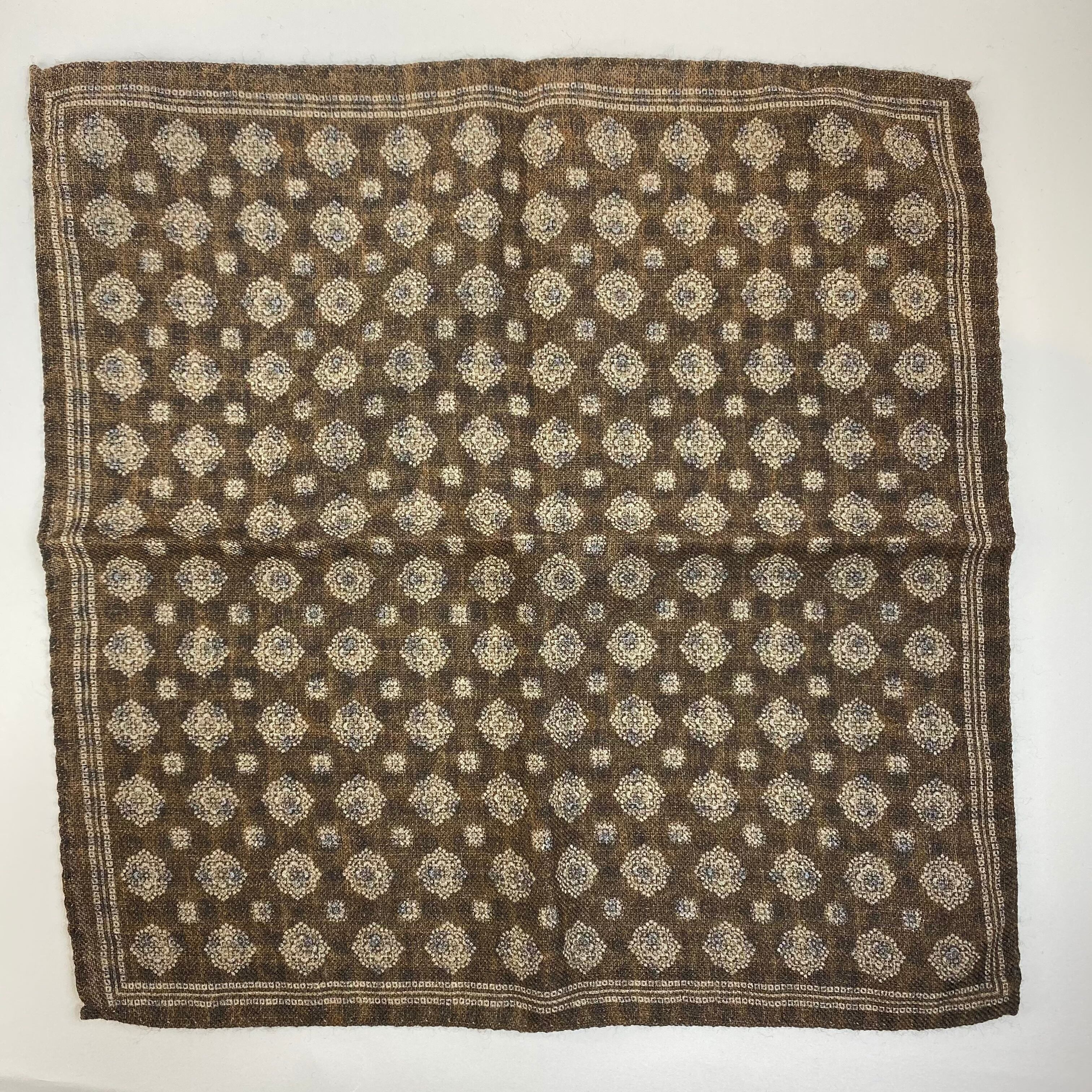 イタリア産 ブラウン小紋柄 ウール リバーシブルチーフ ポケットチーフ お洒落 プレゼント ギフト Vゾーン