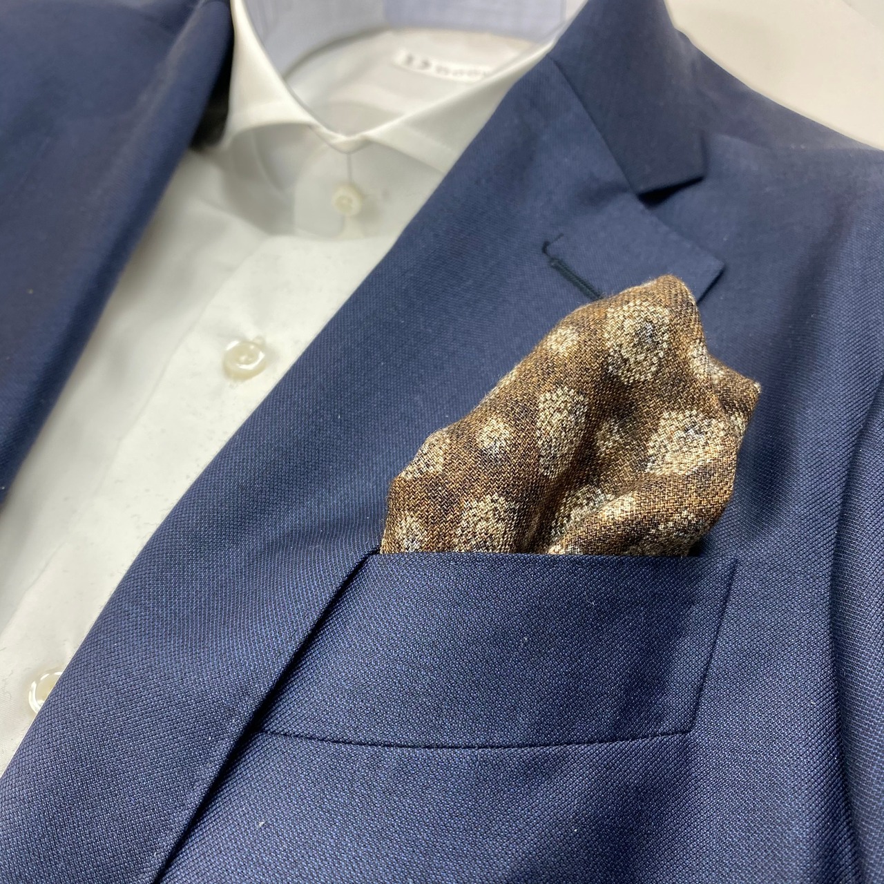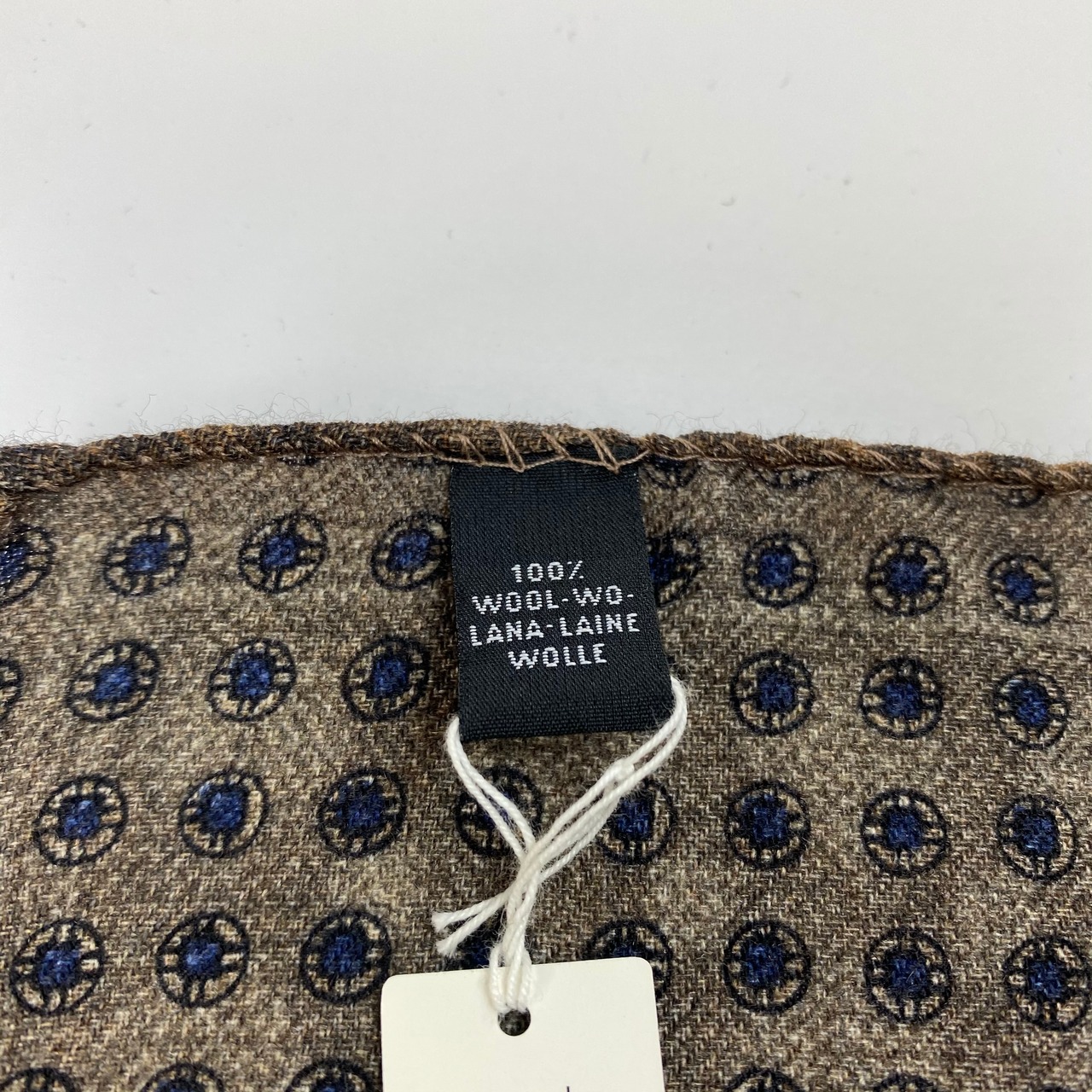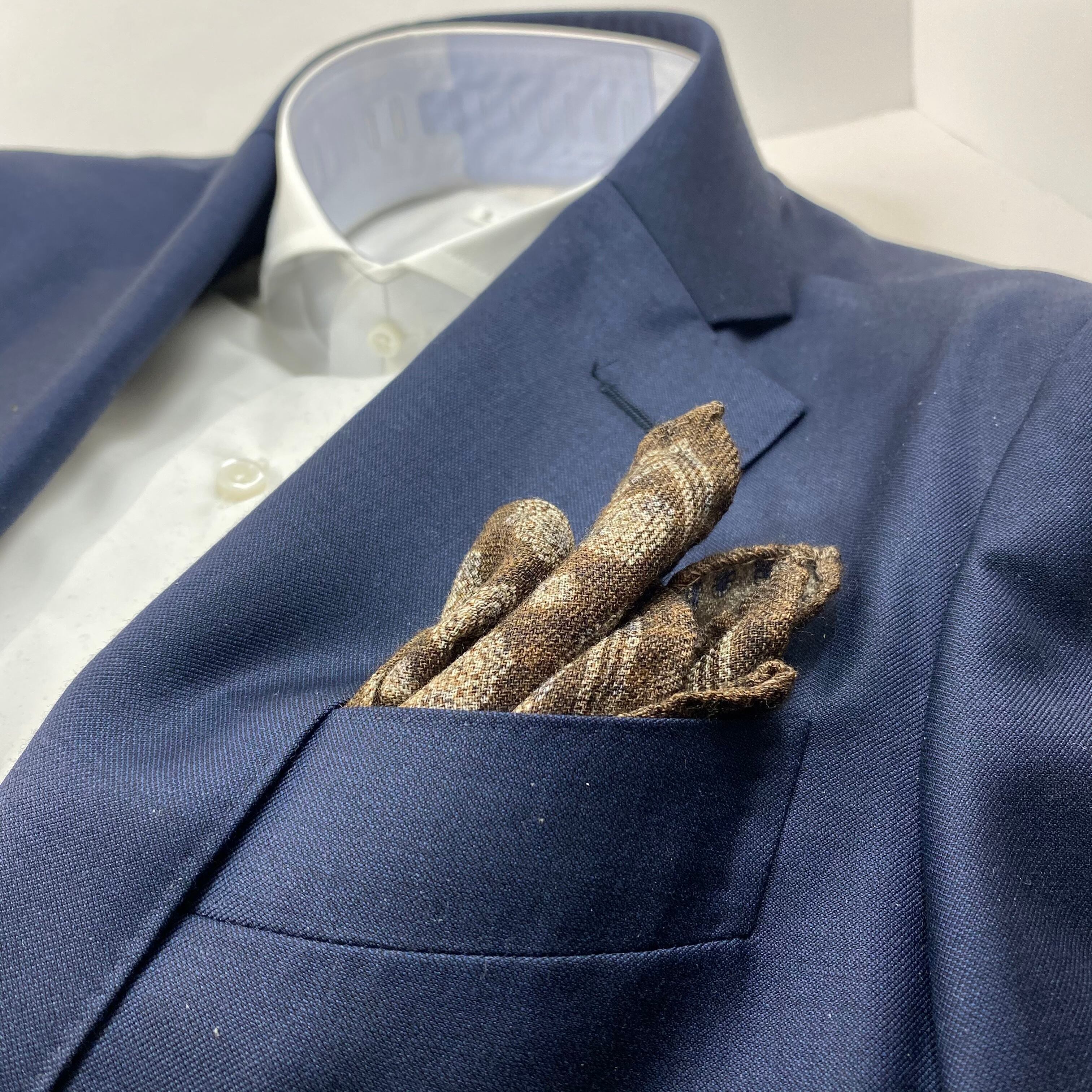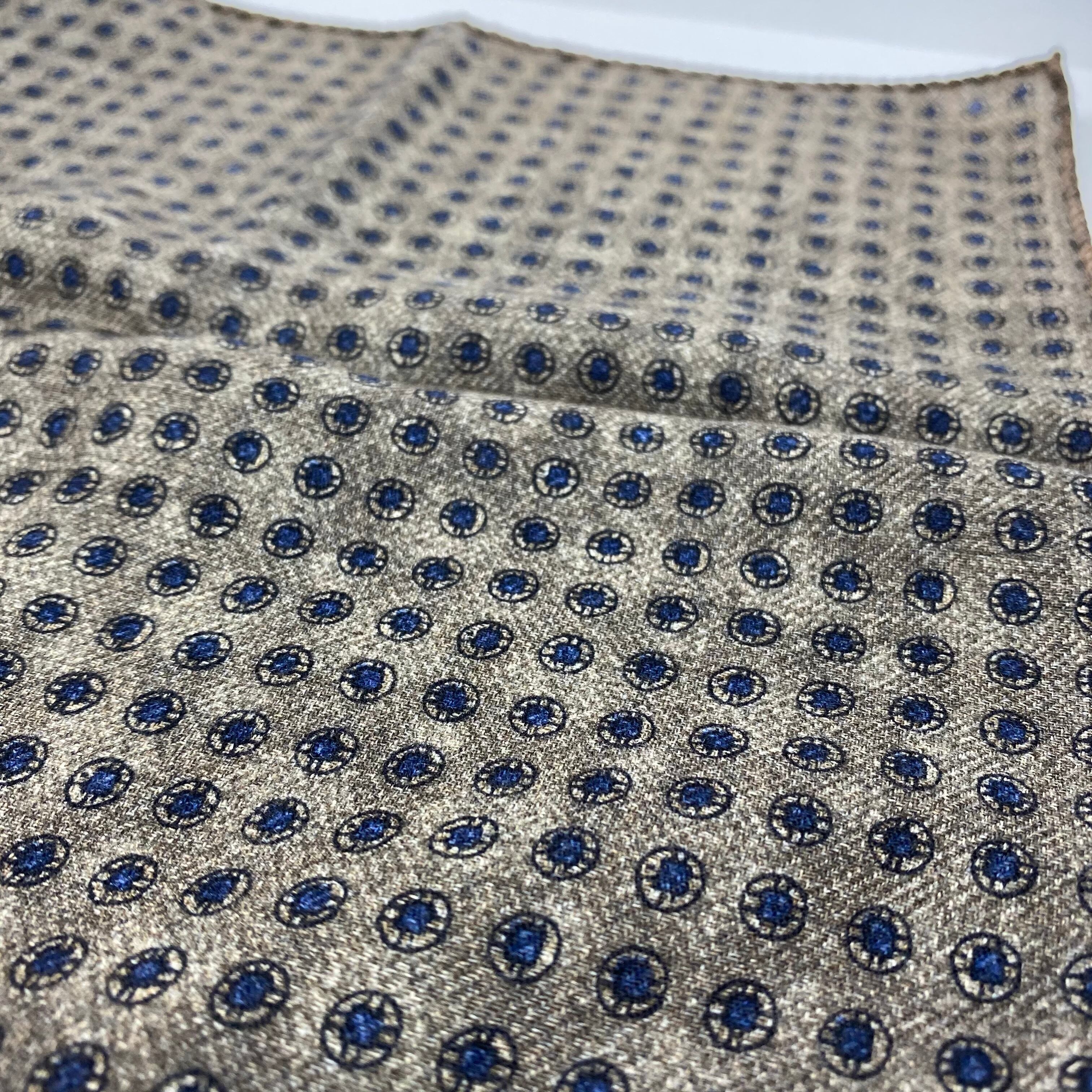 イタリア産 ブラウン小紋柄 ウール リバーシブルチーフ ポケットチーフ お洒落 プレゼント ギフト Vゾーン
