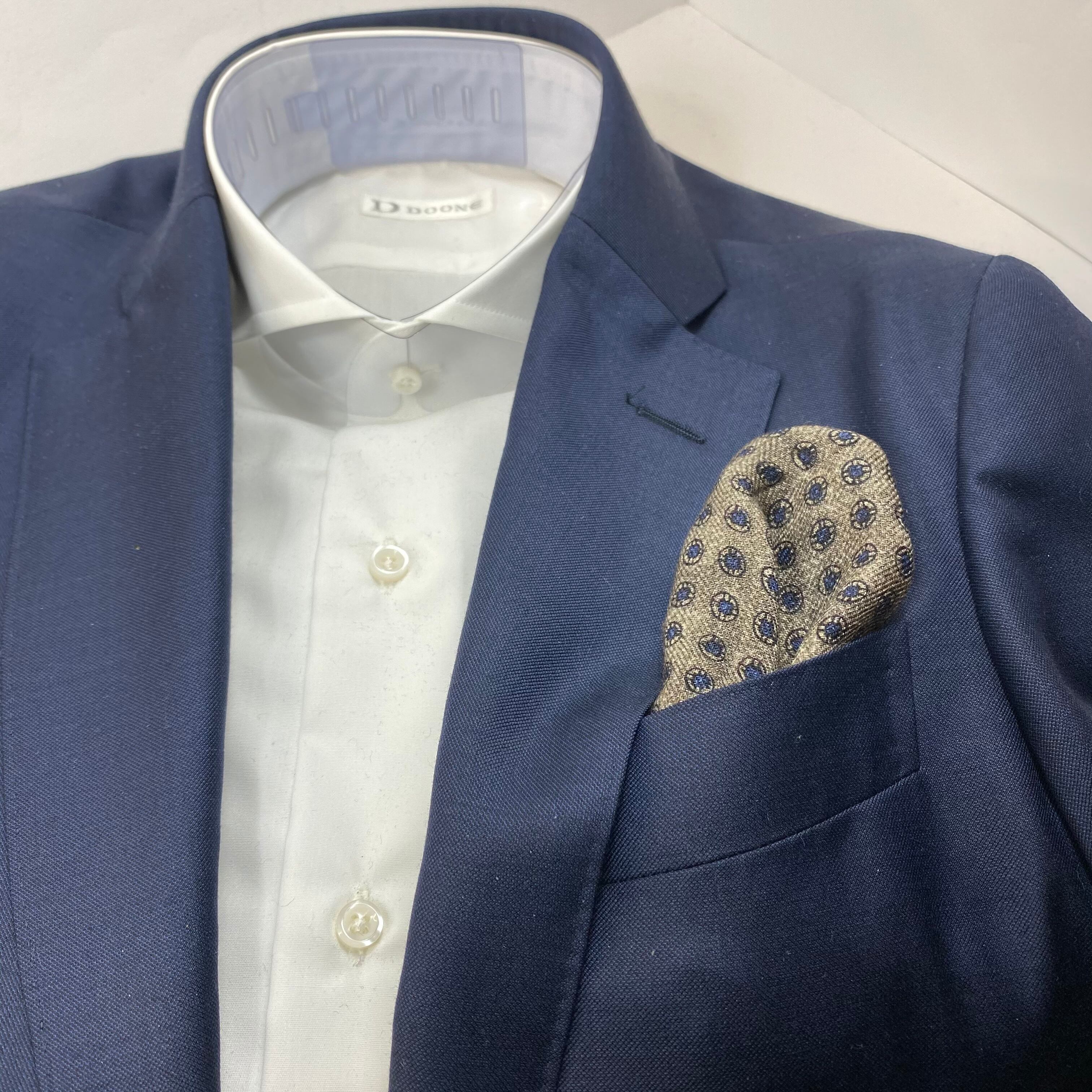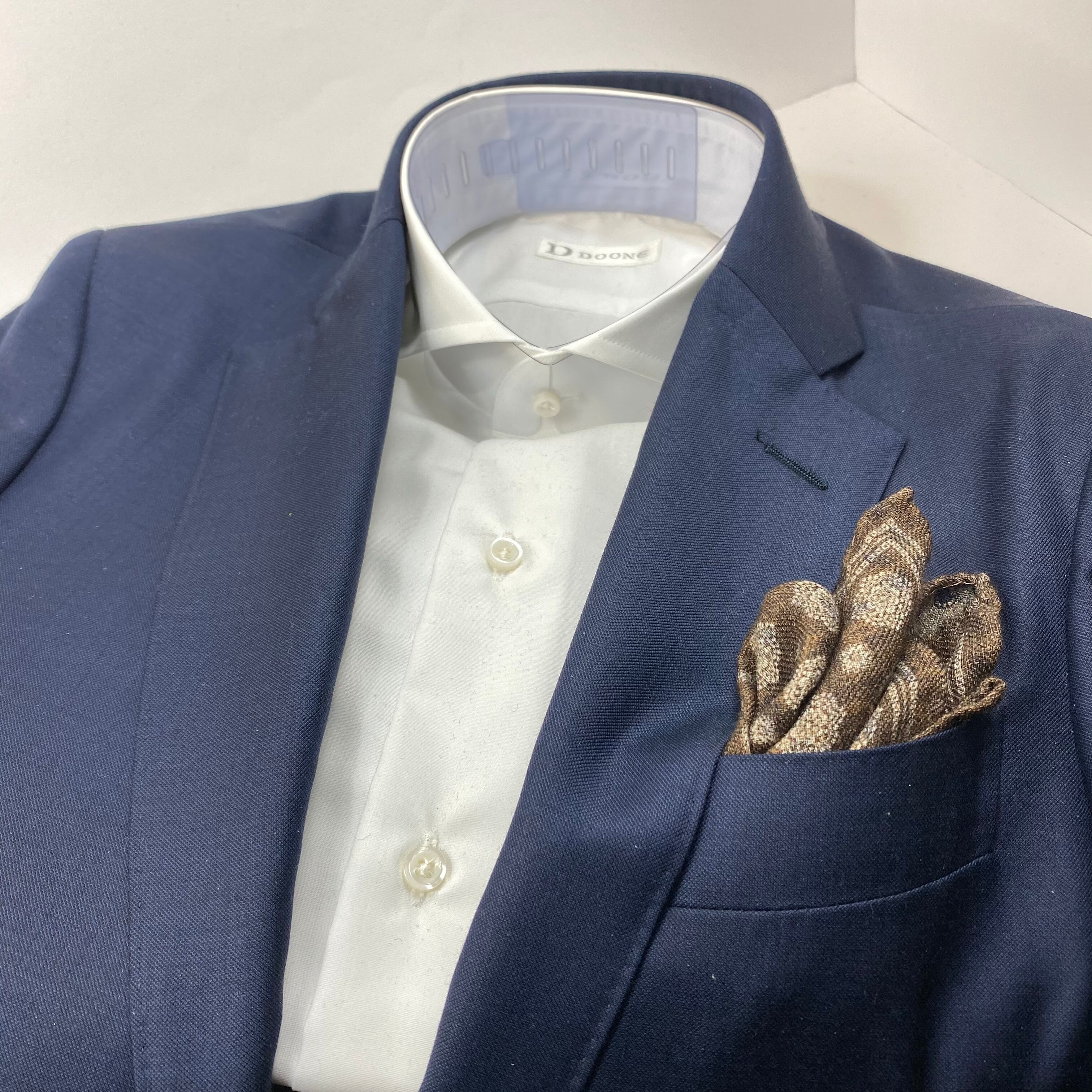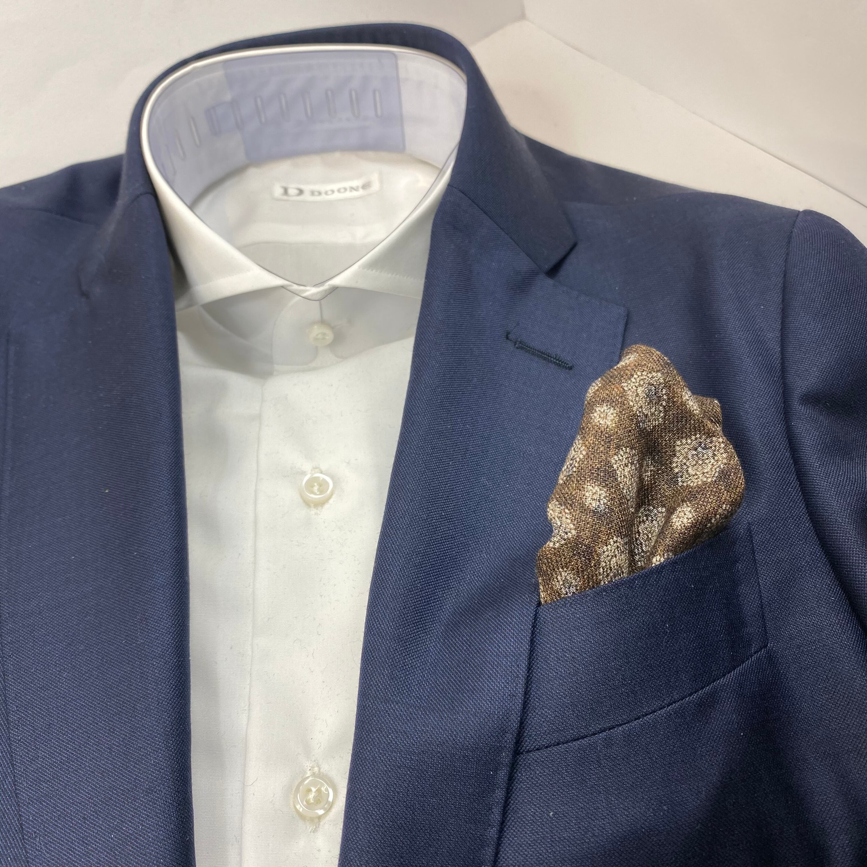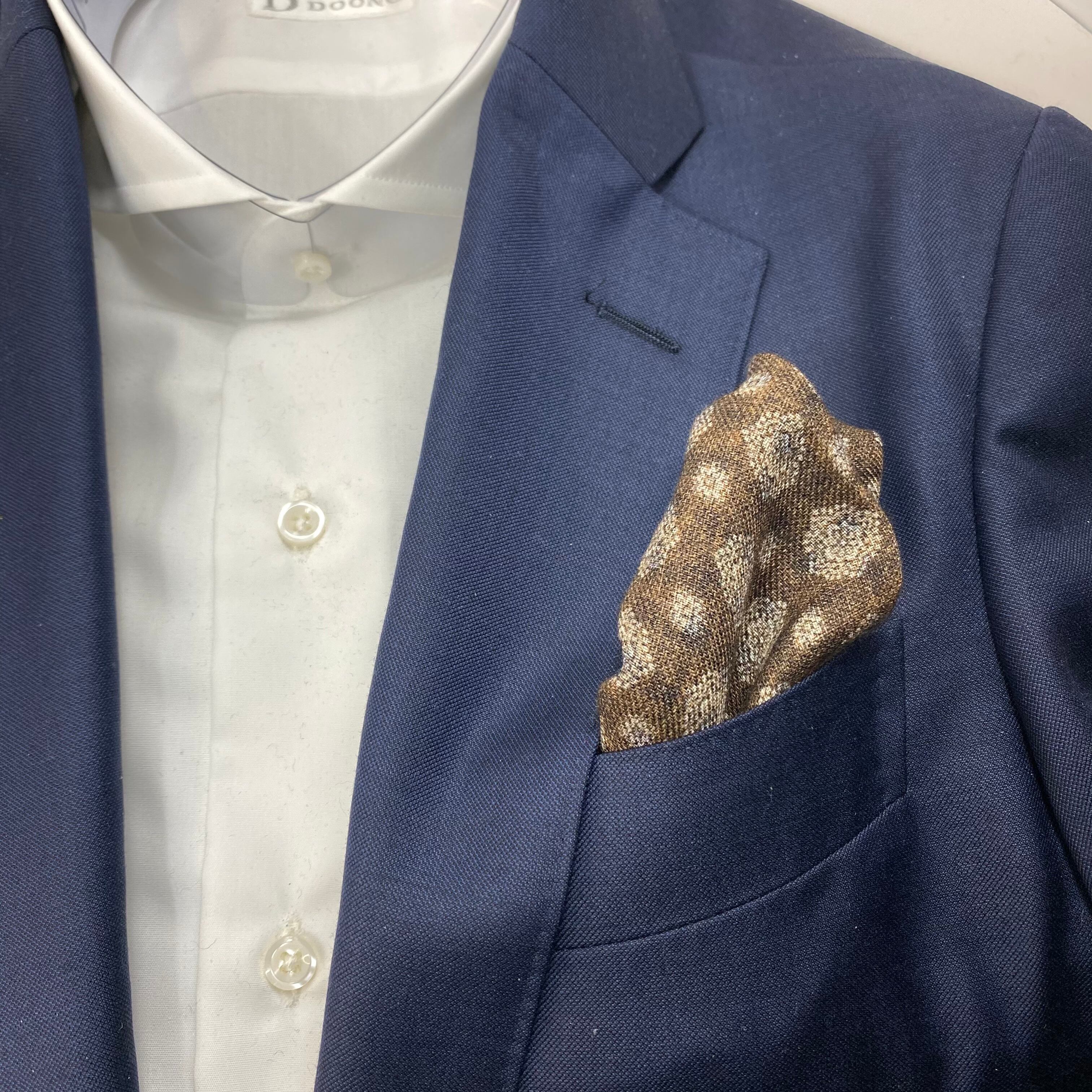 イタリア産 ブラウン小紋柄 ウール リバーシブルチーフ ポケットチーフ お洒落 プレゼント ギフト Vゾーン