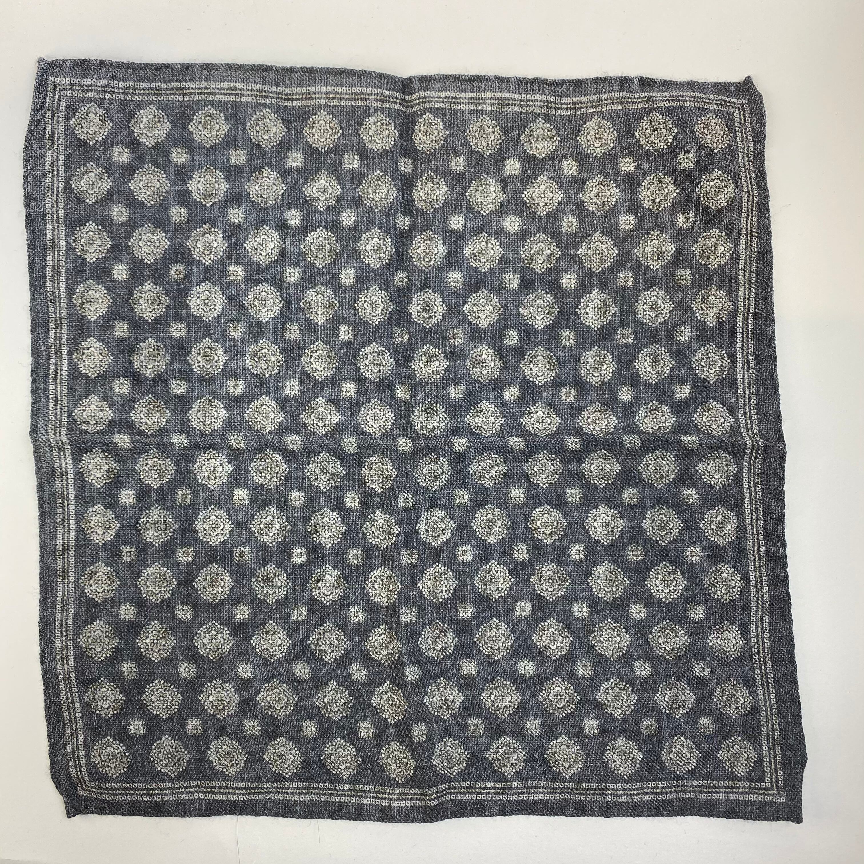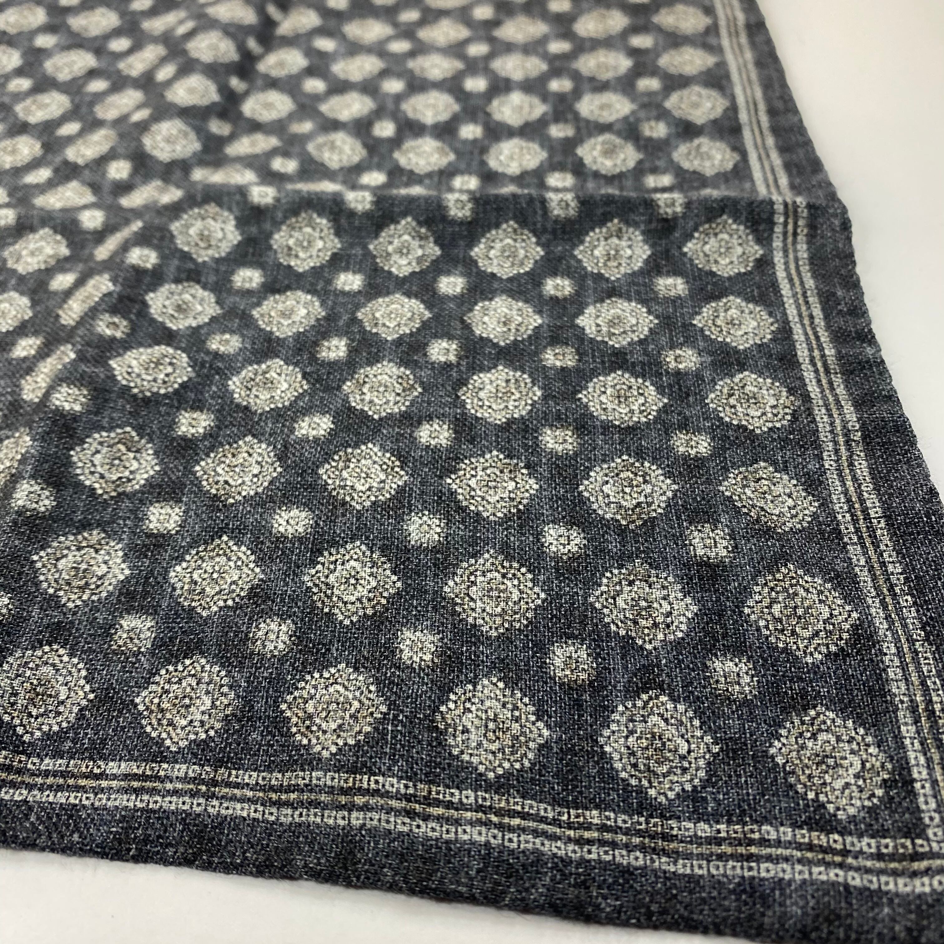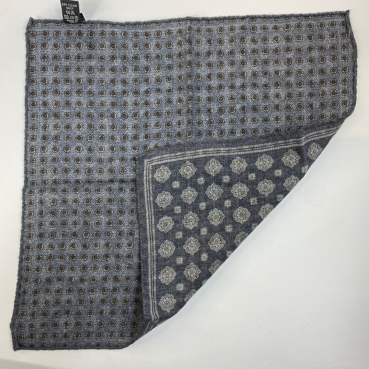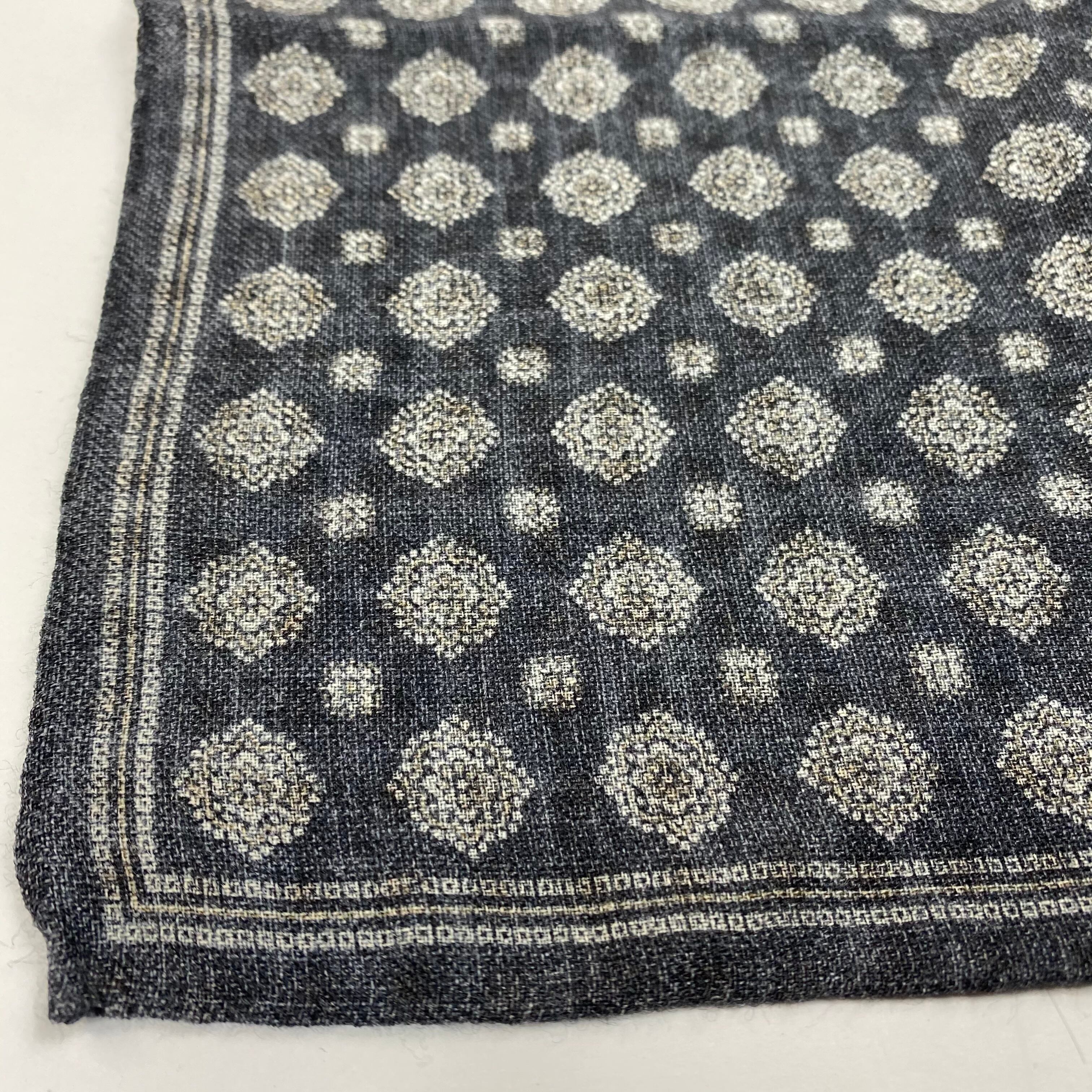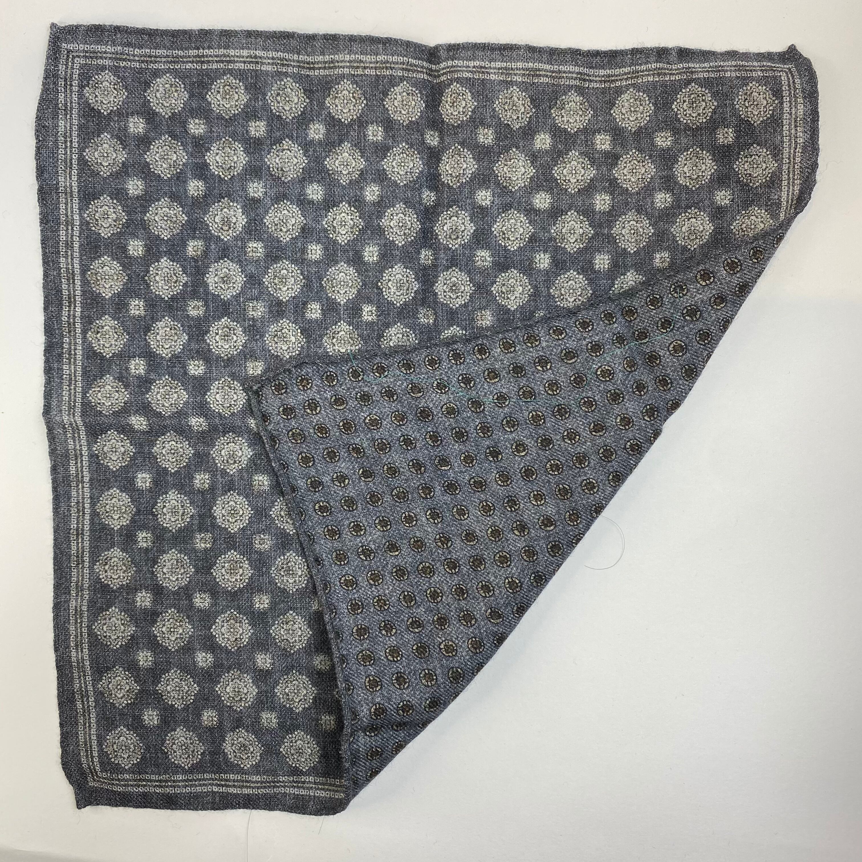 イタリア産 グレー小紋柄 ウール リバーシブルチーフ ポケットチーフ お洒落 プレゼント ギフト Vゾーン