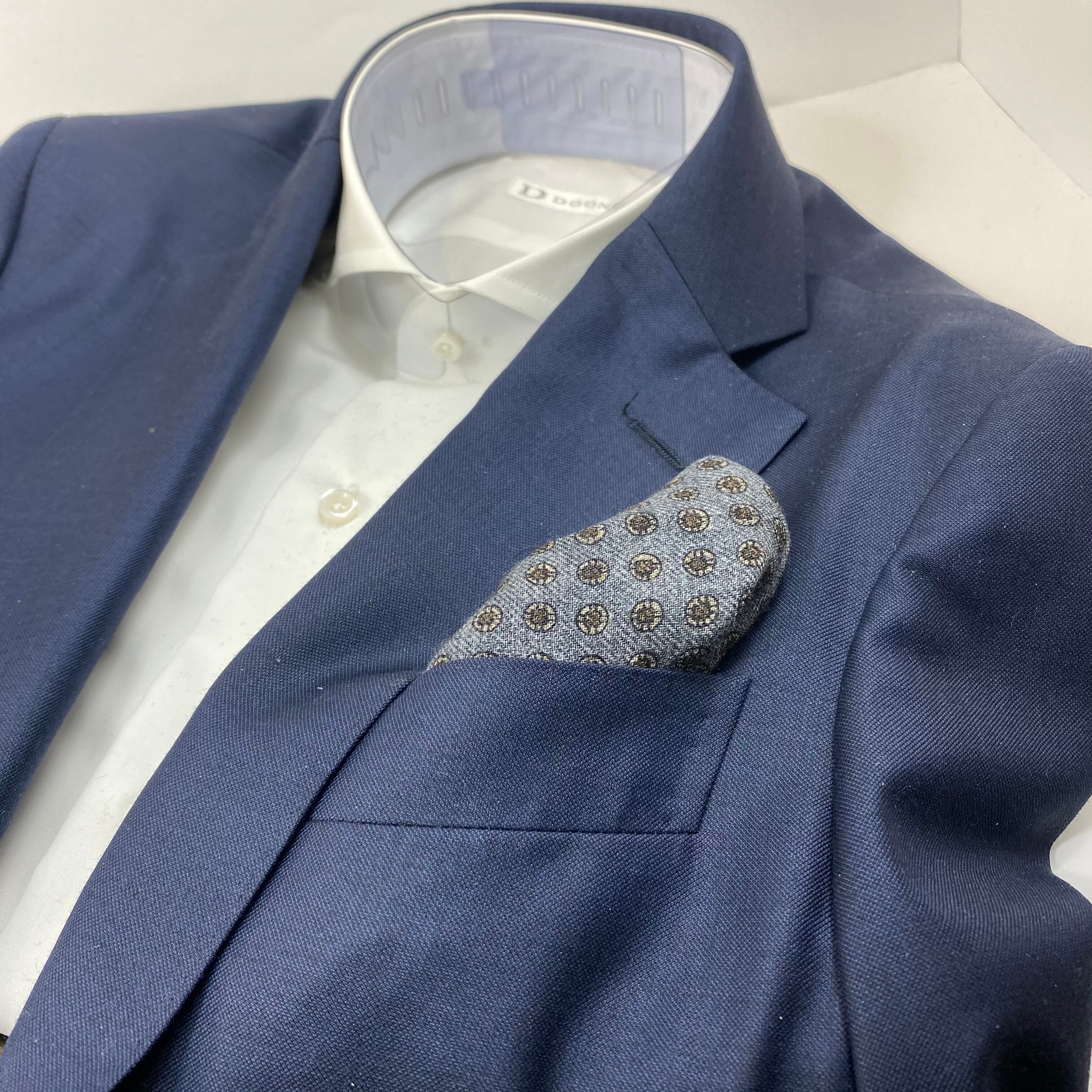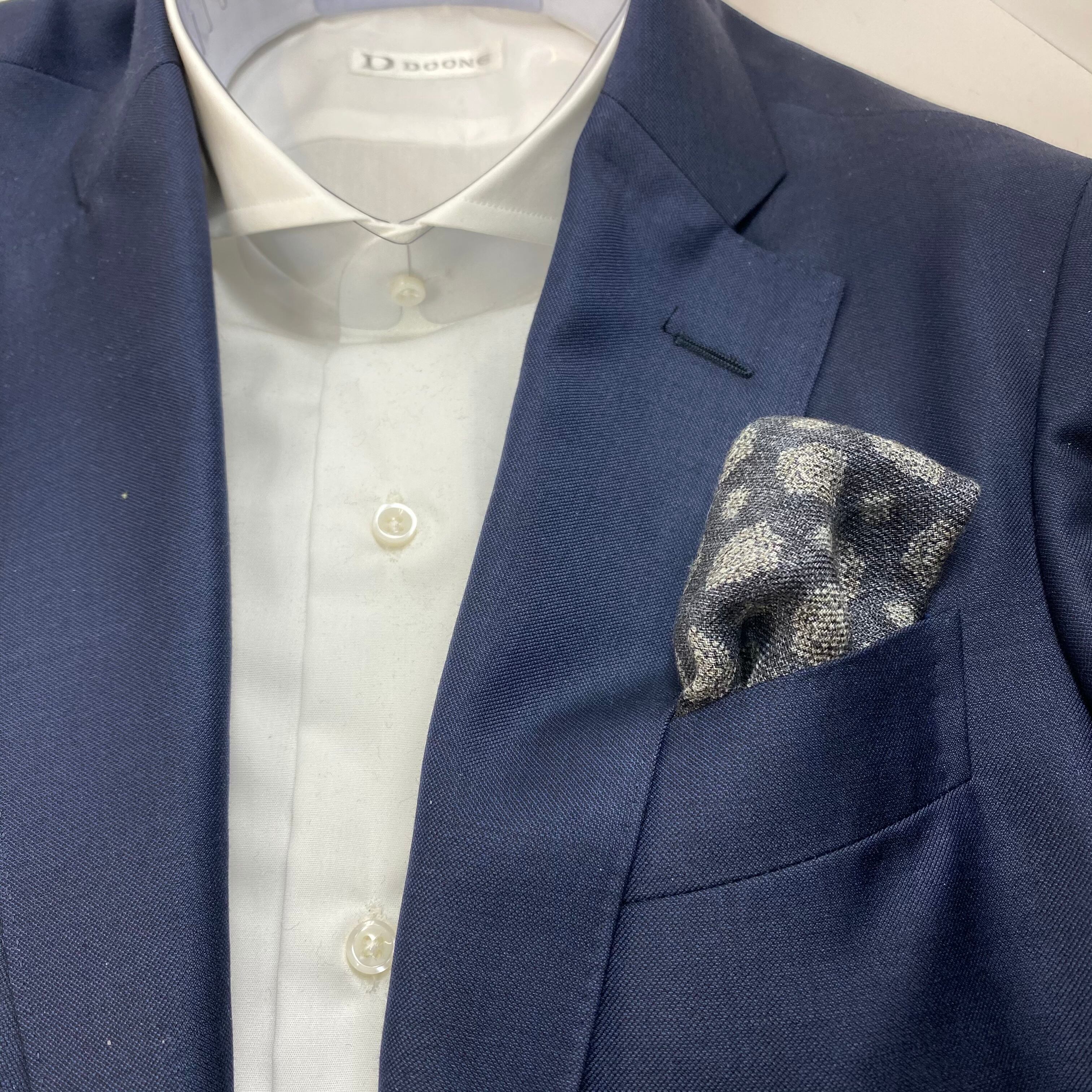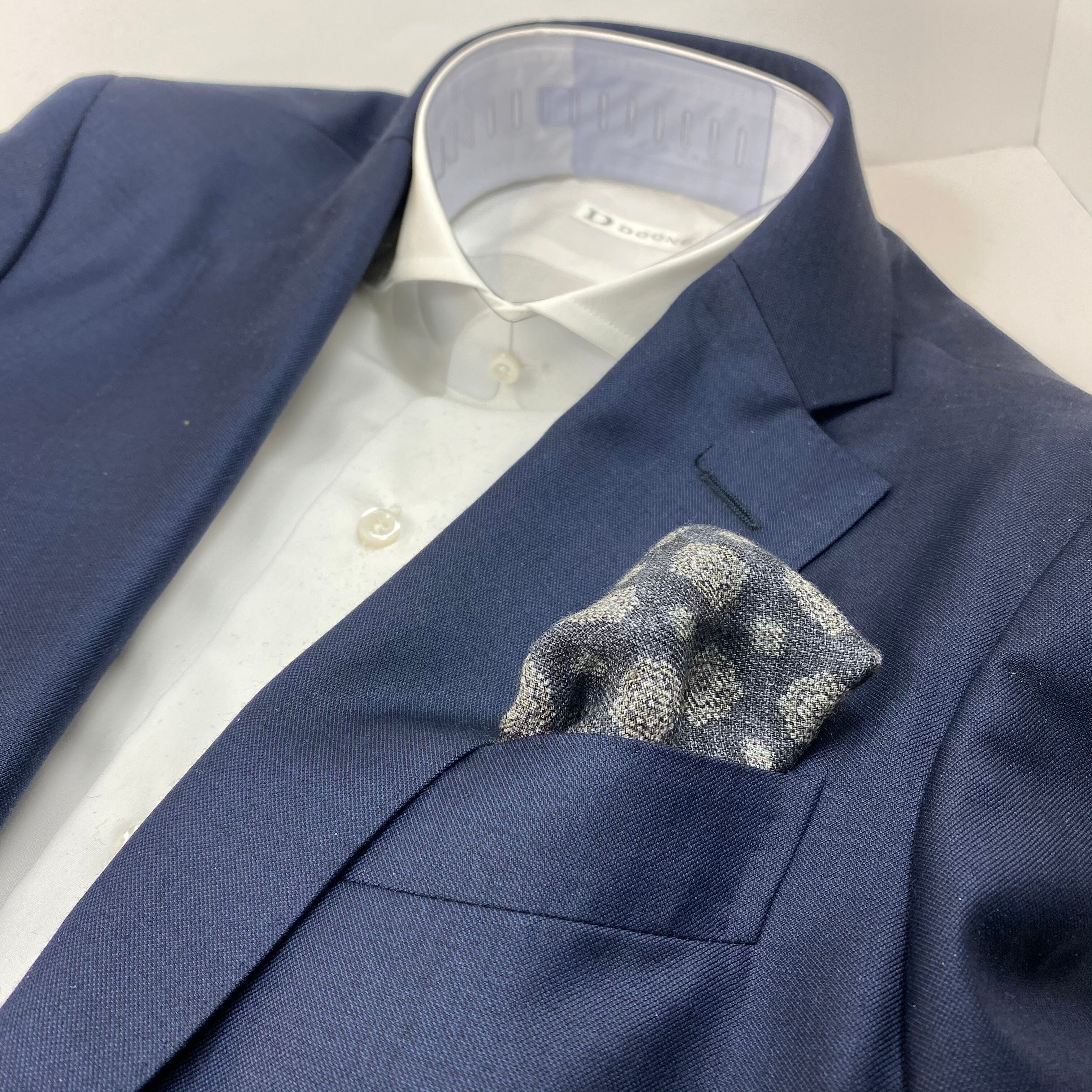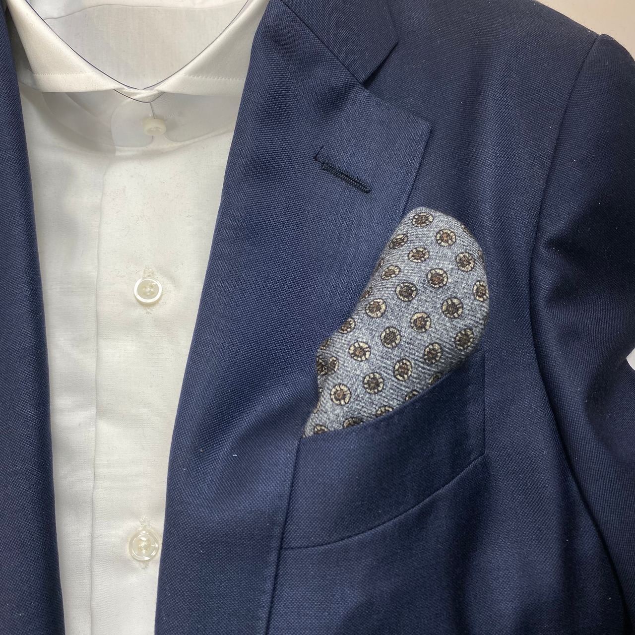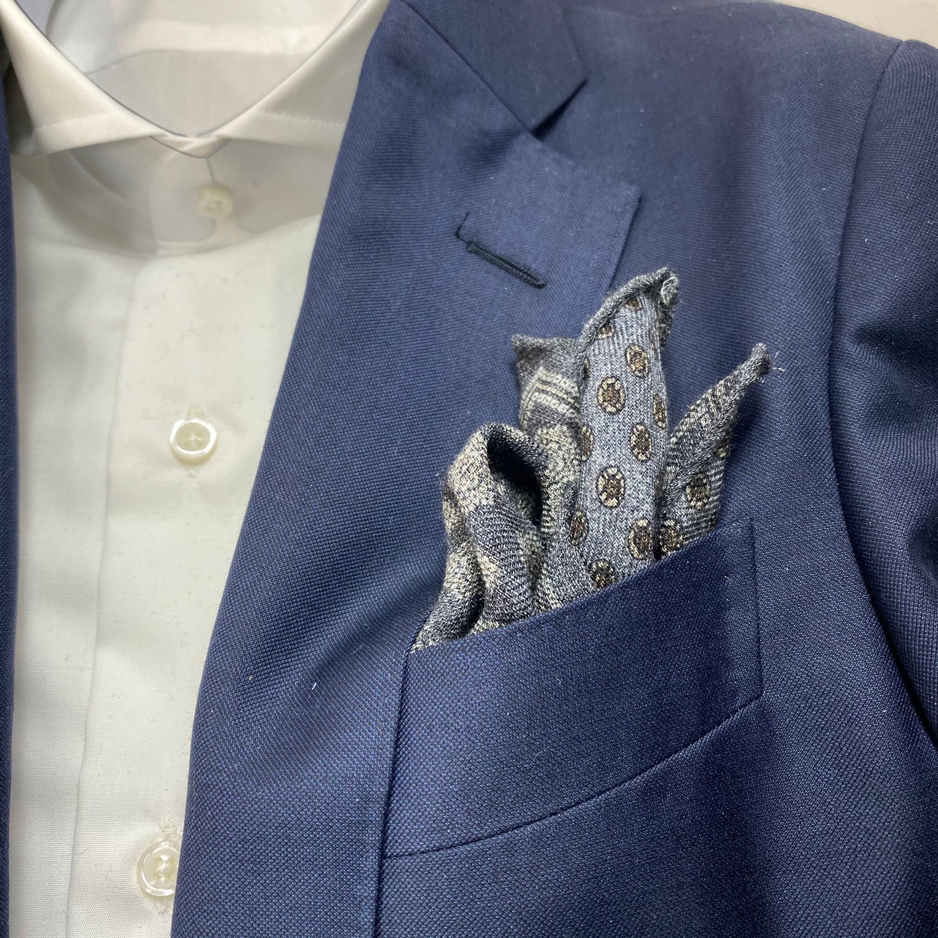 イタリア産 グレー小紋柄 ウール リバーシブルチーフ ポケットチーフ お洒落 プレゼント ギフト Vゾーン
