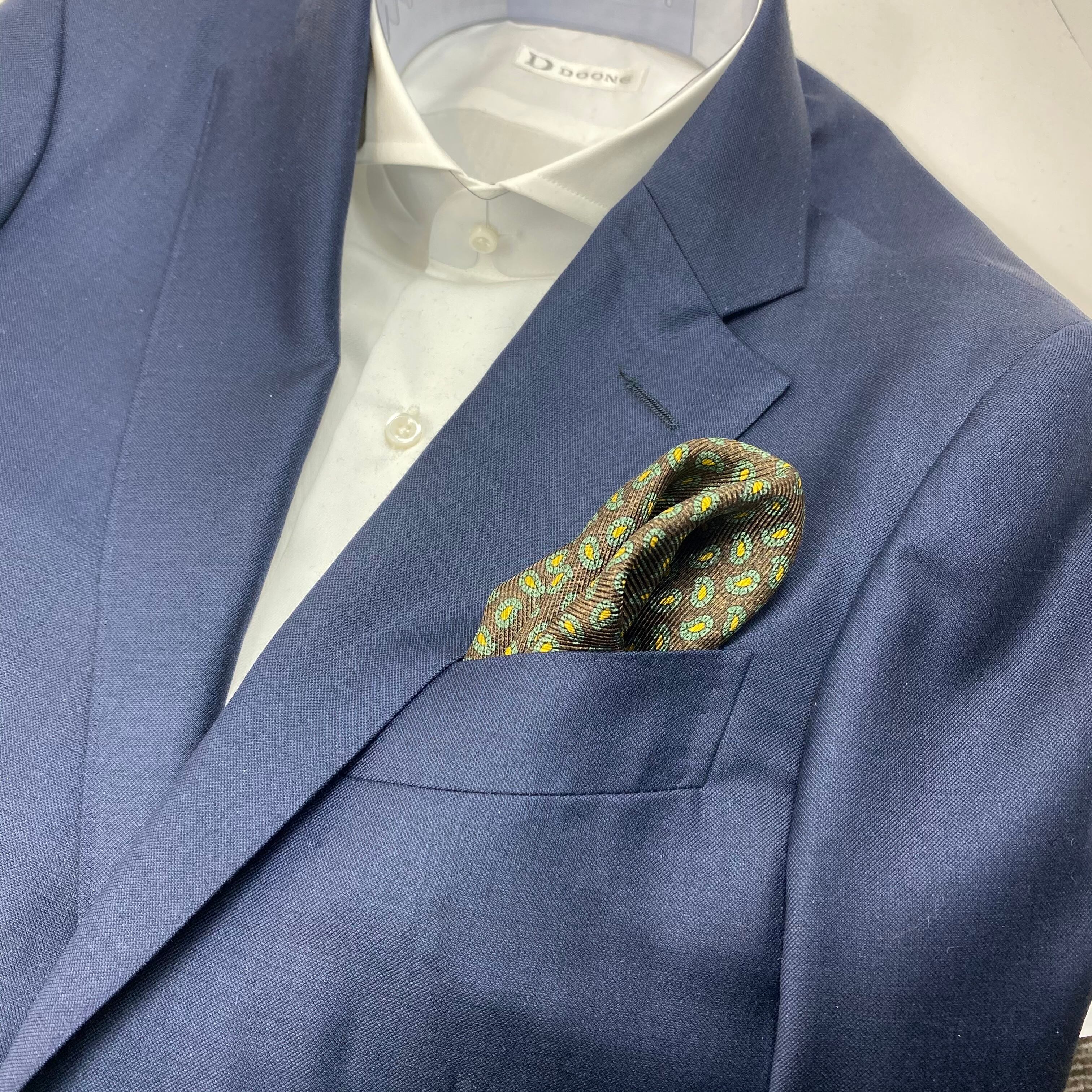 美しい光沢と滑らかな手触りのイタリア産シルクのチーフです。