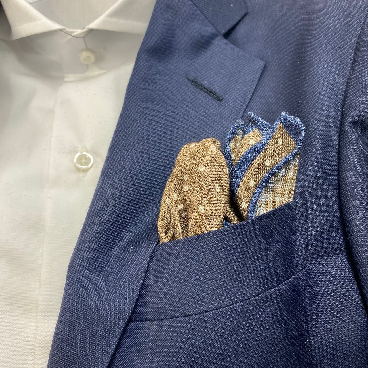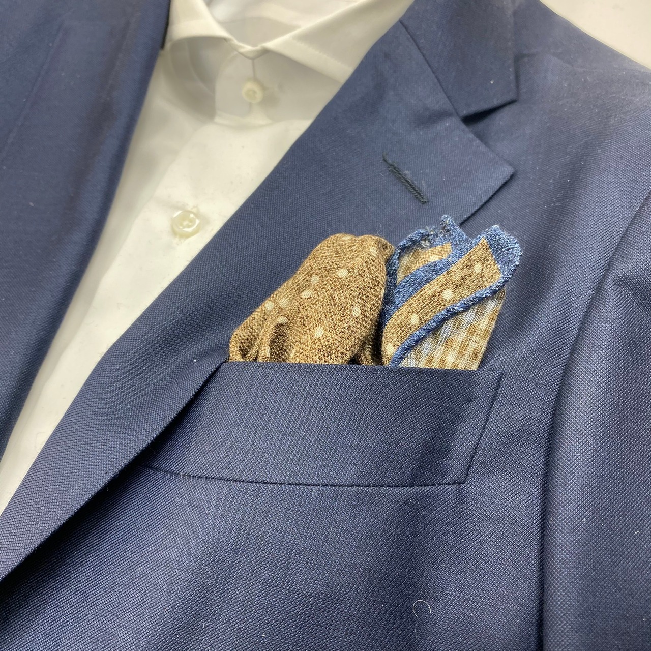 ベーシックに片面を挿すもよし。また2柄が出るようにラフに挿せば、胸元により立体感が産まれます。