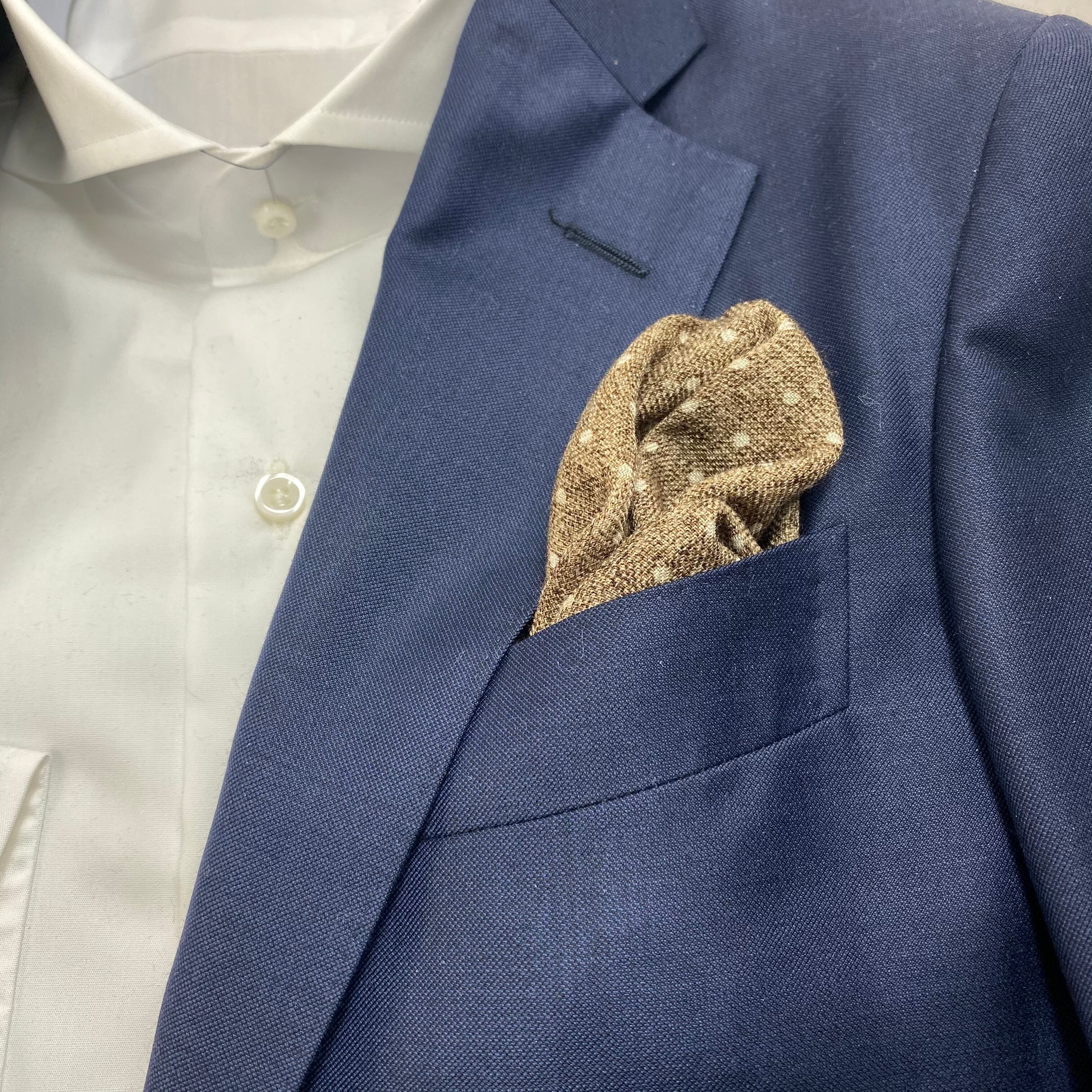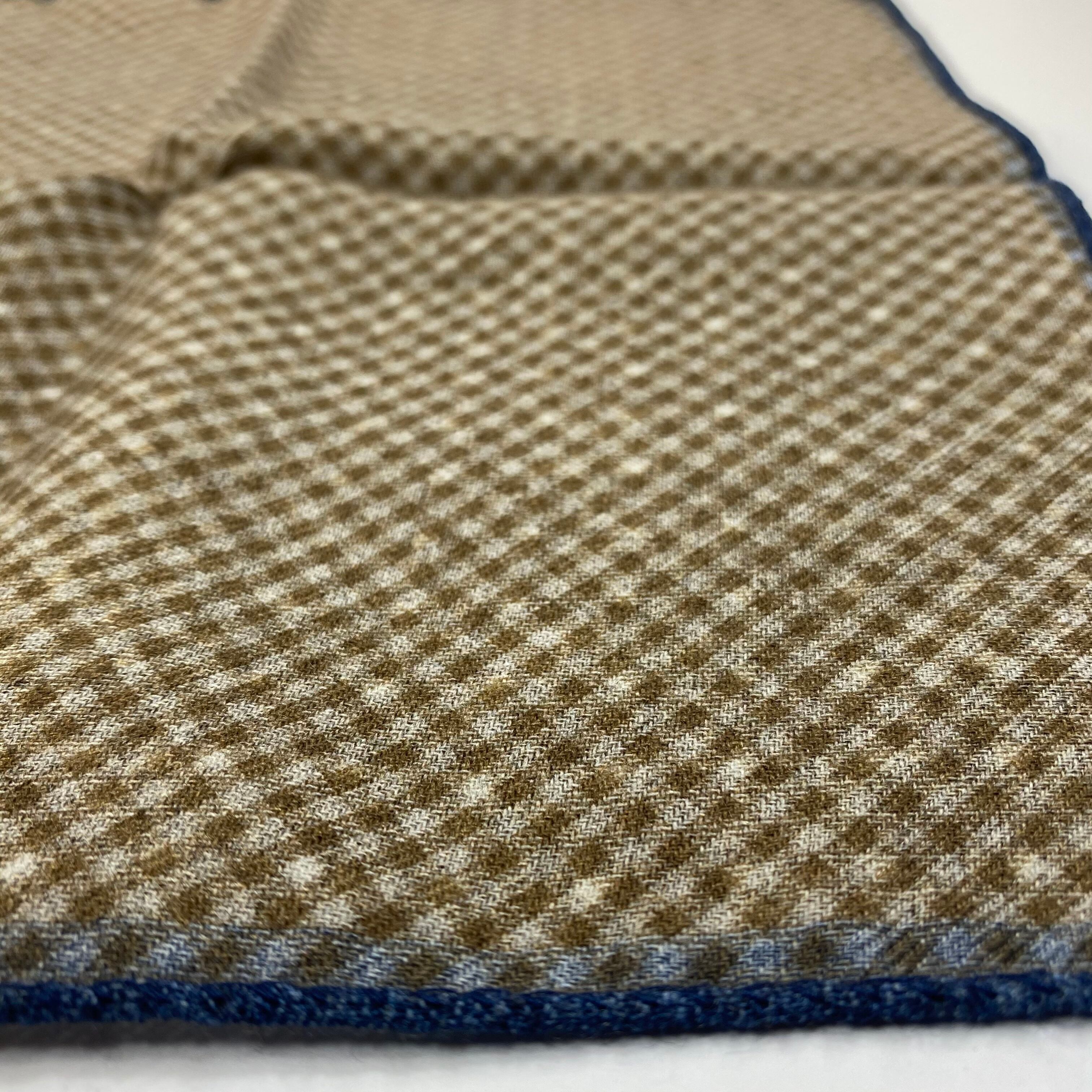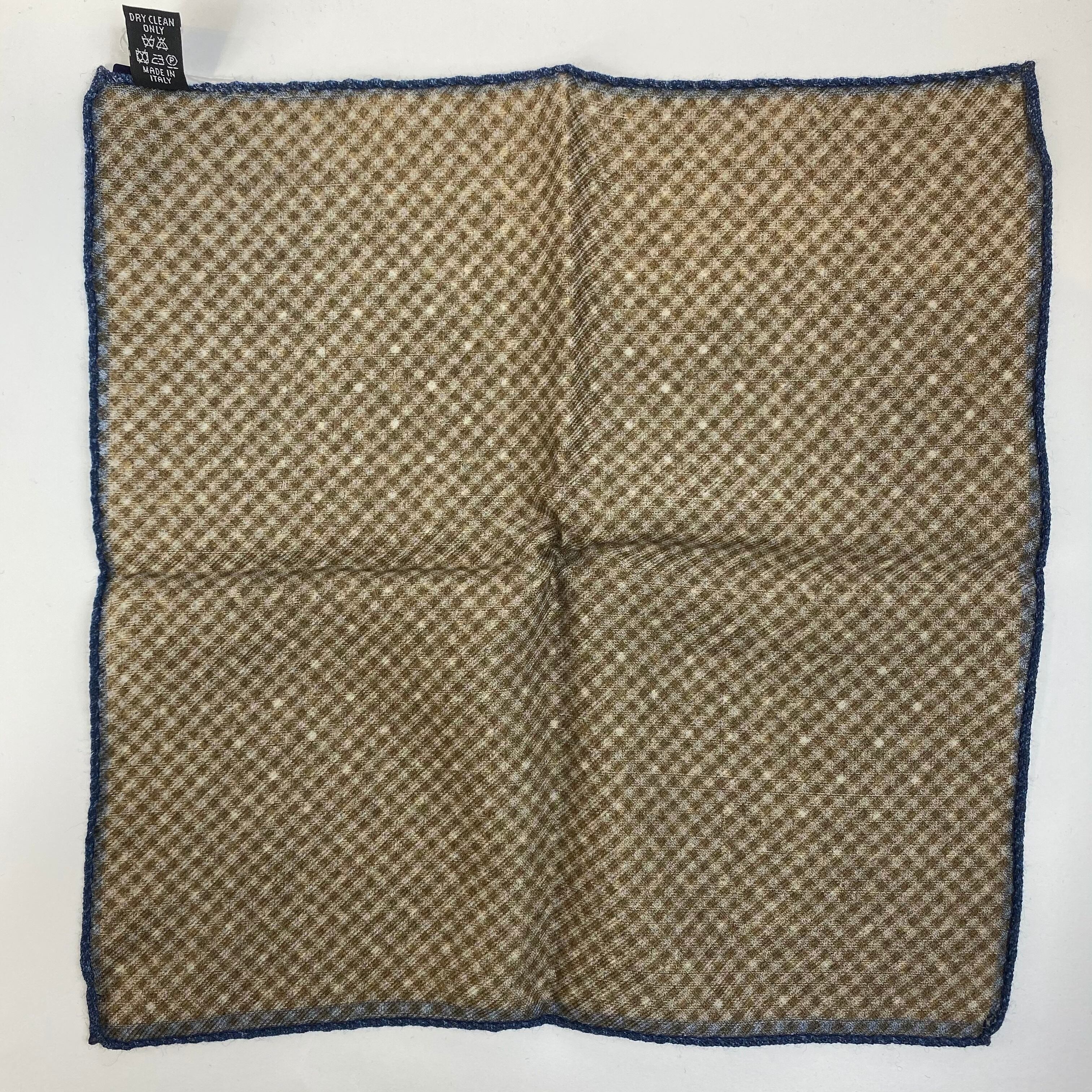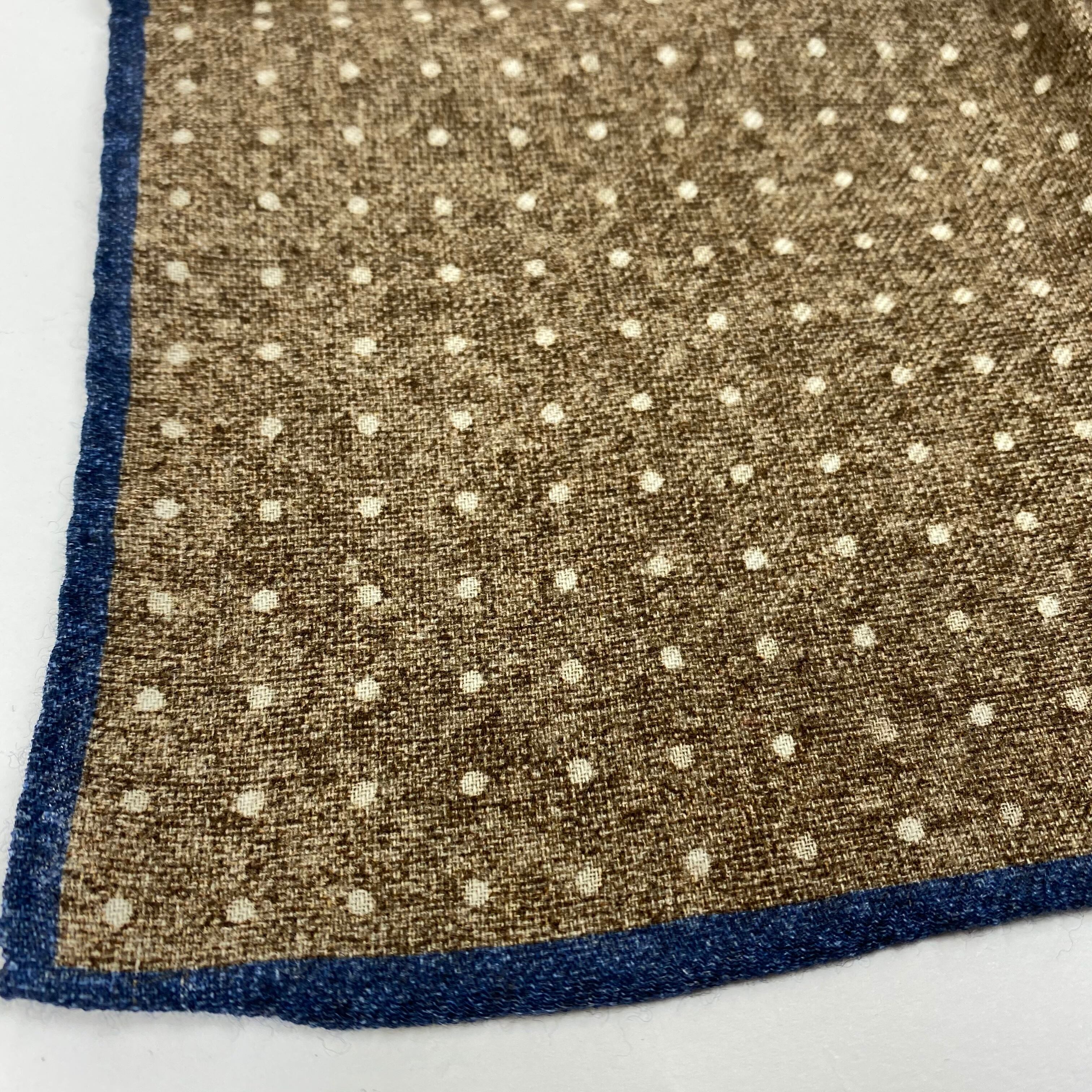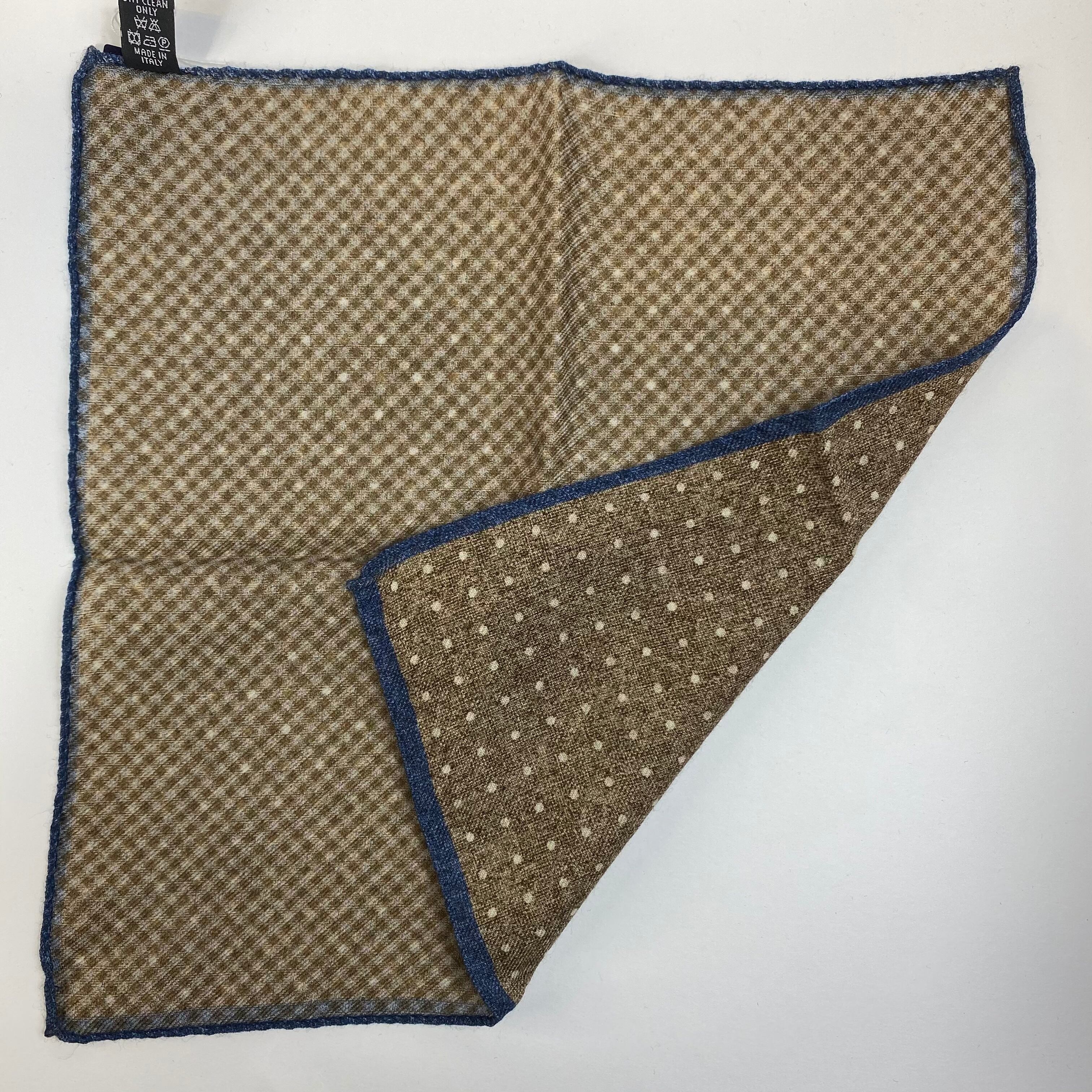 イタリア産 ブラウンチェック×ドット リバーシブル ウールチーフ ポケットチーフ お洒落 プレゼント ギフト Vゾーン