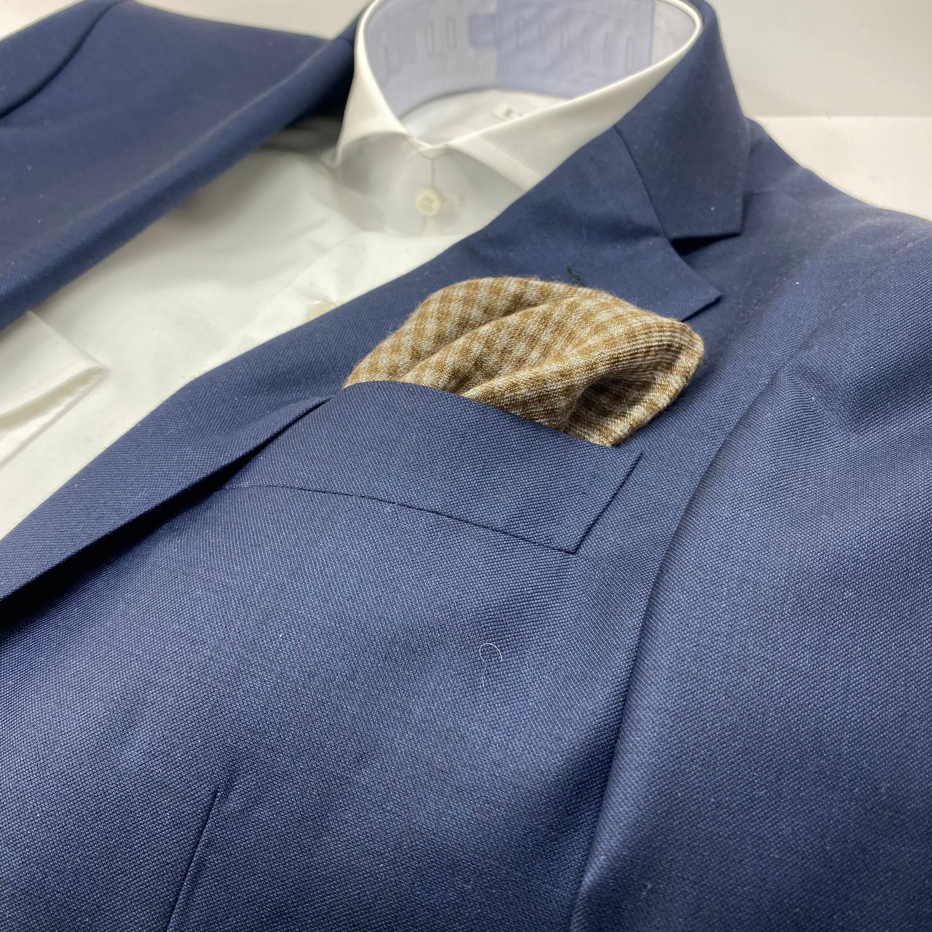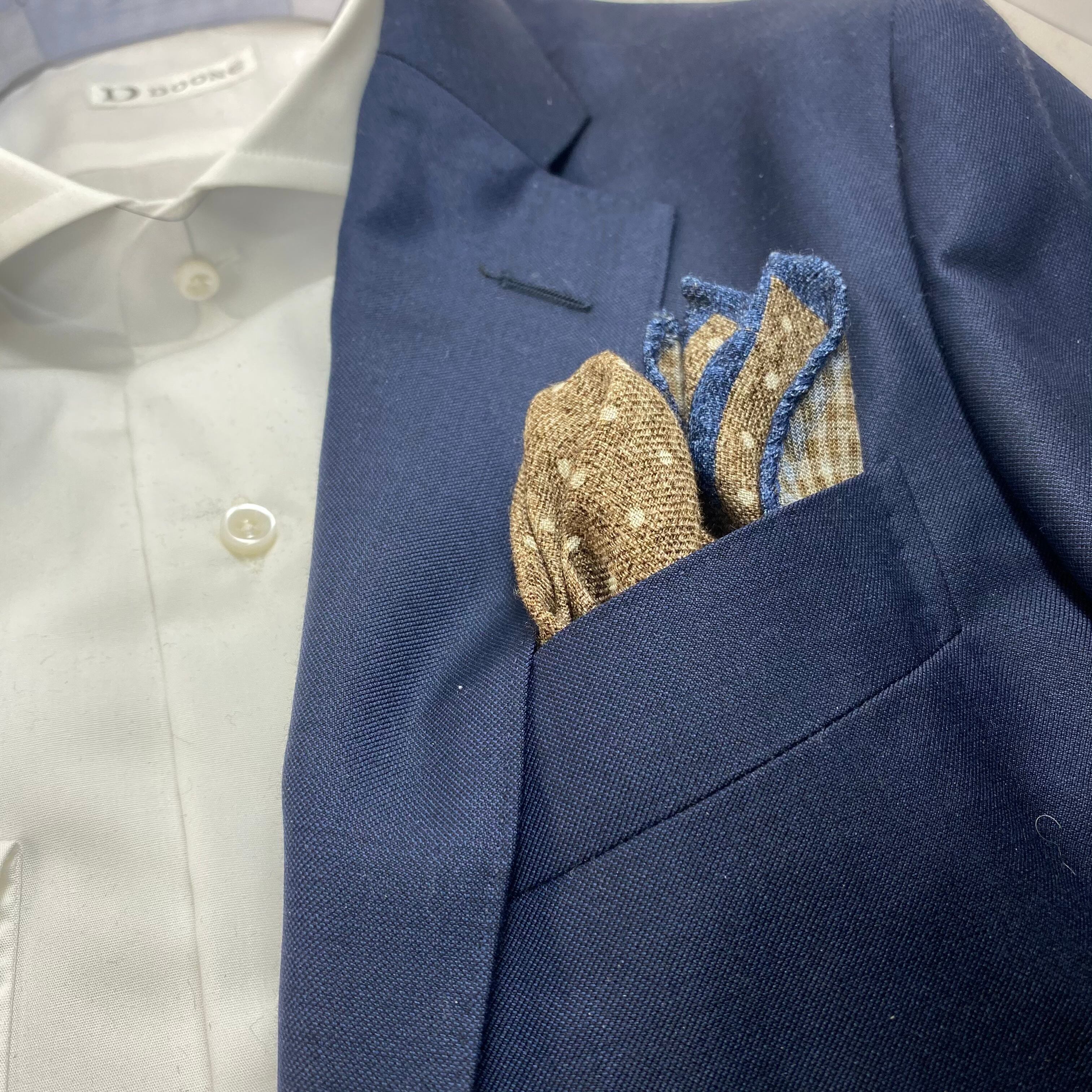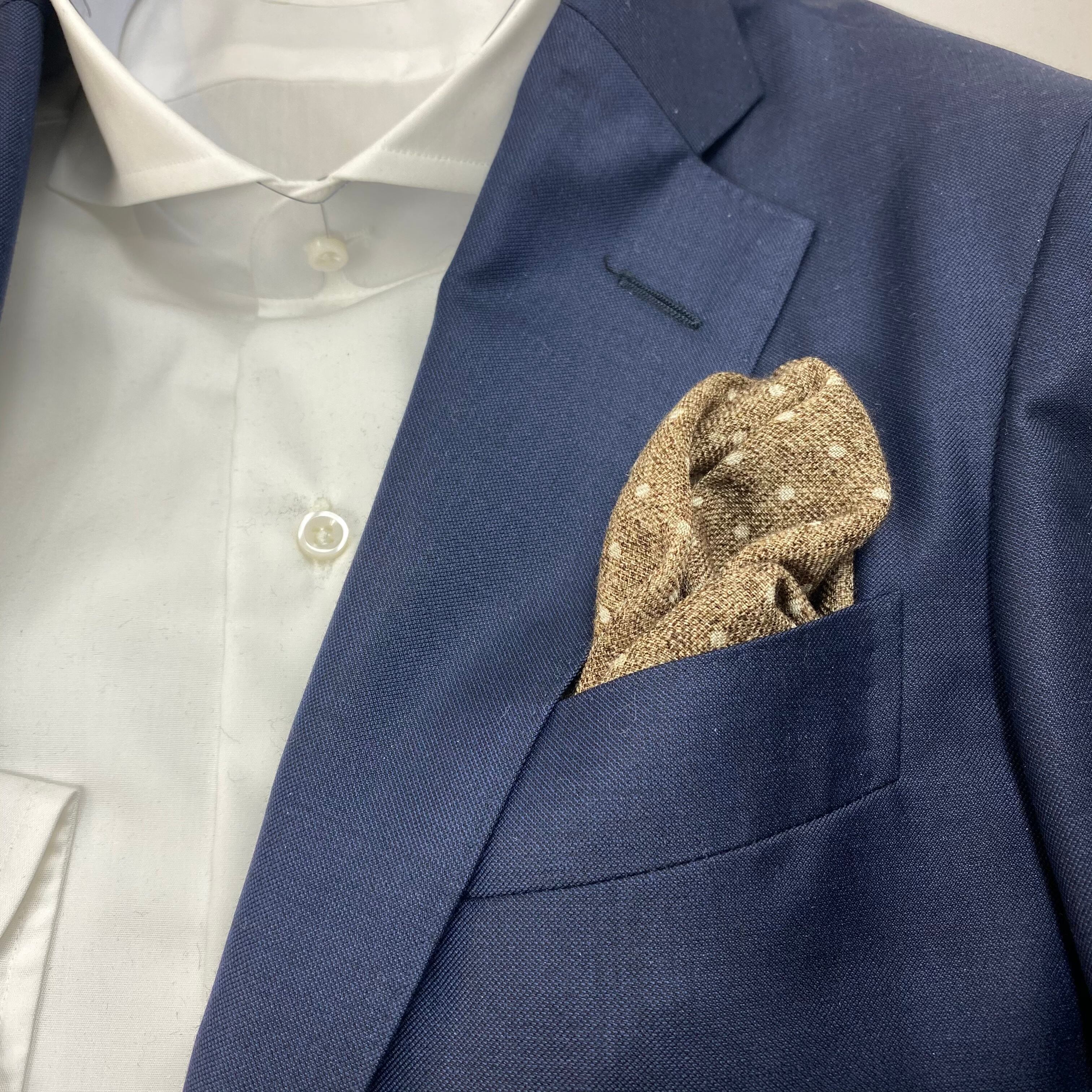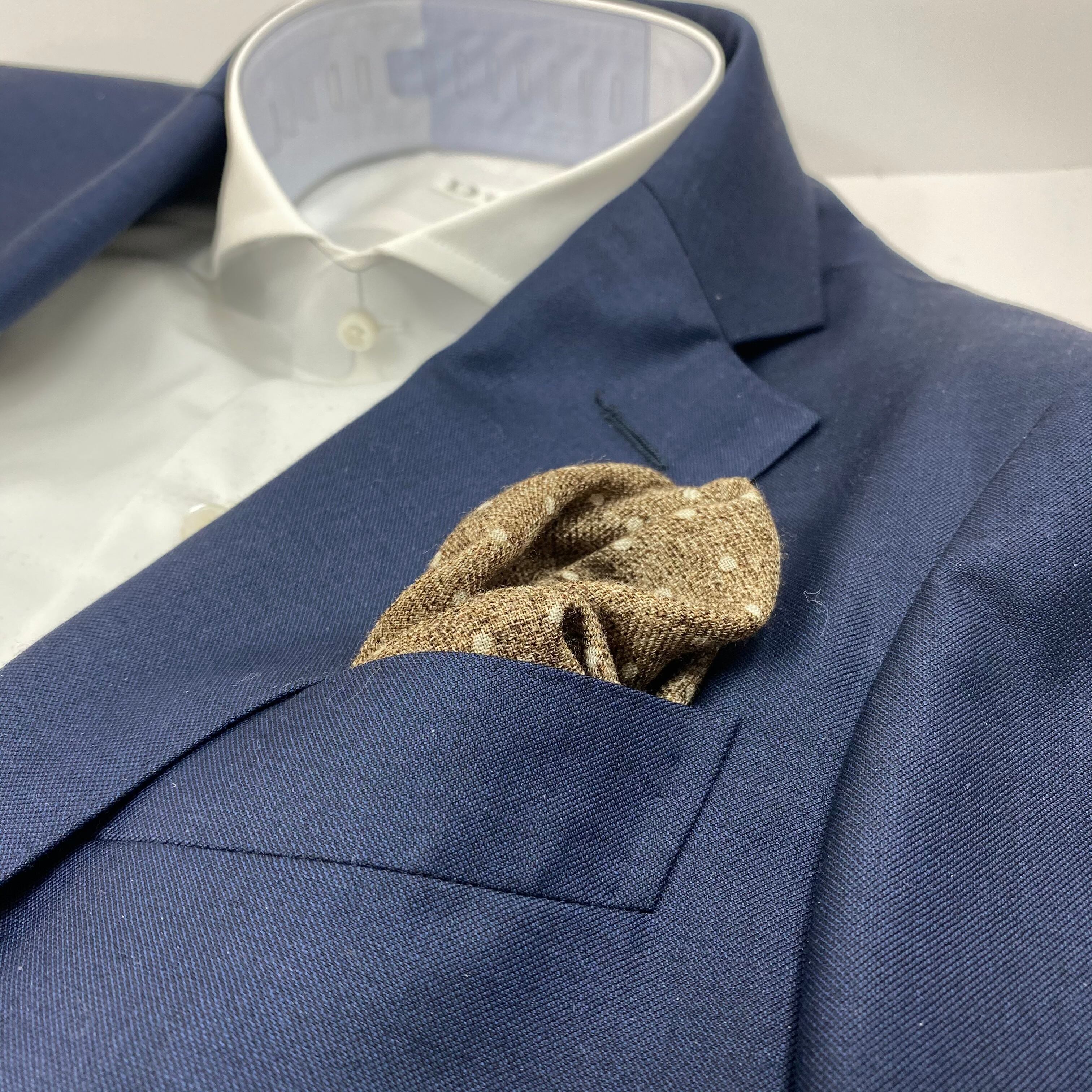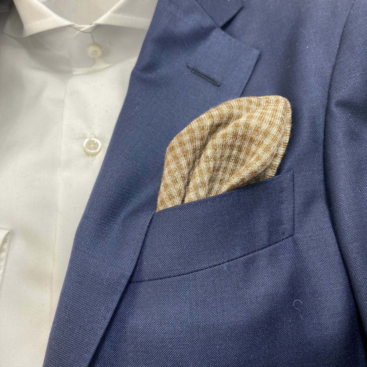 イタリア産 ブラウンチェック×ドット リバーシブル ウールチーフ ポケットチーフ お洒落 プレゼント ギフト Vゾーン
