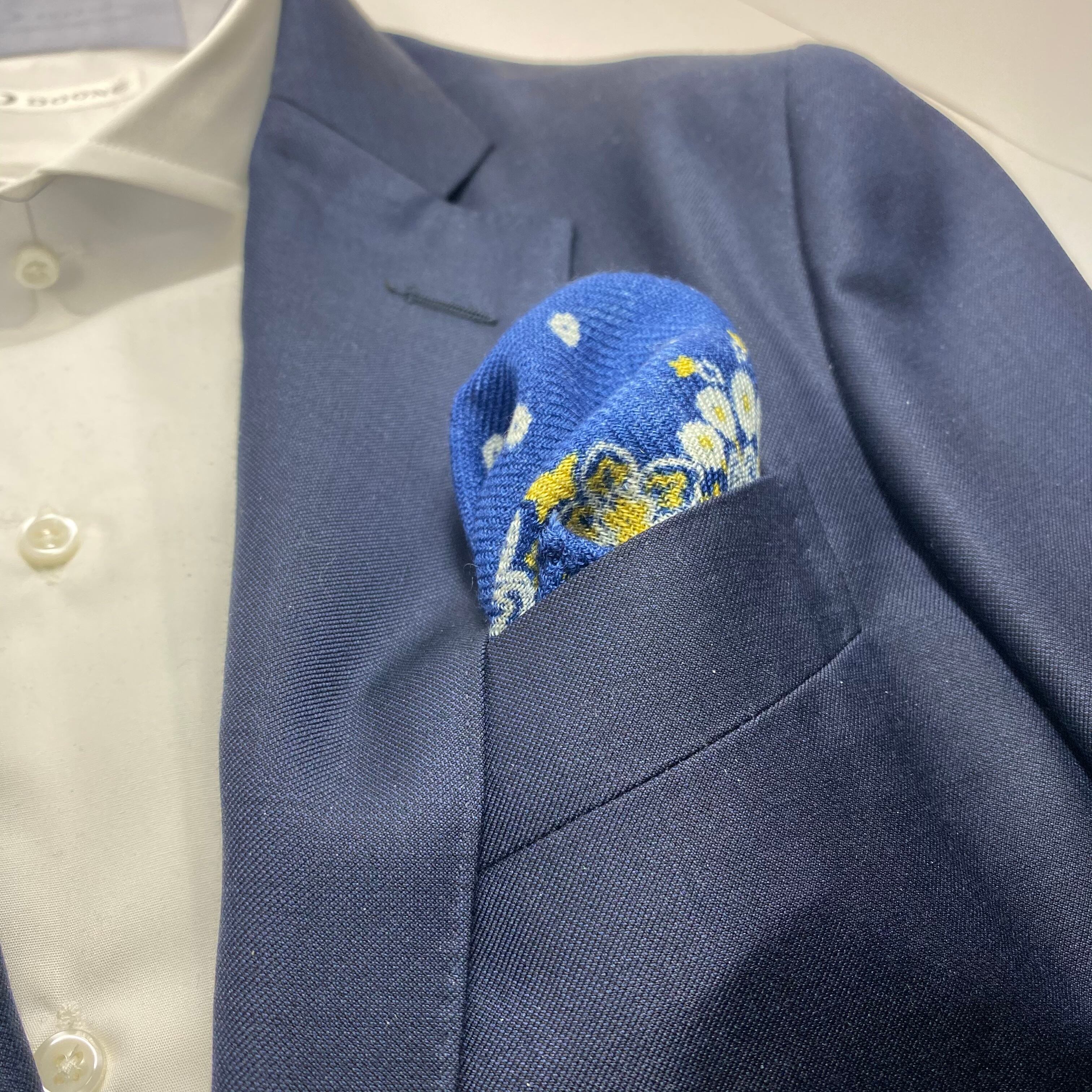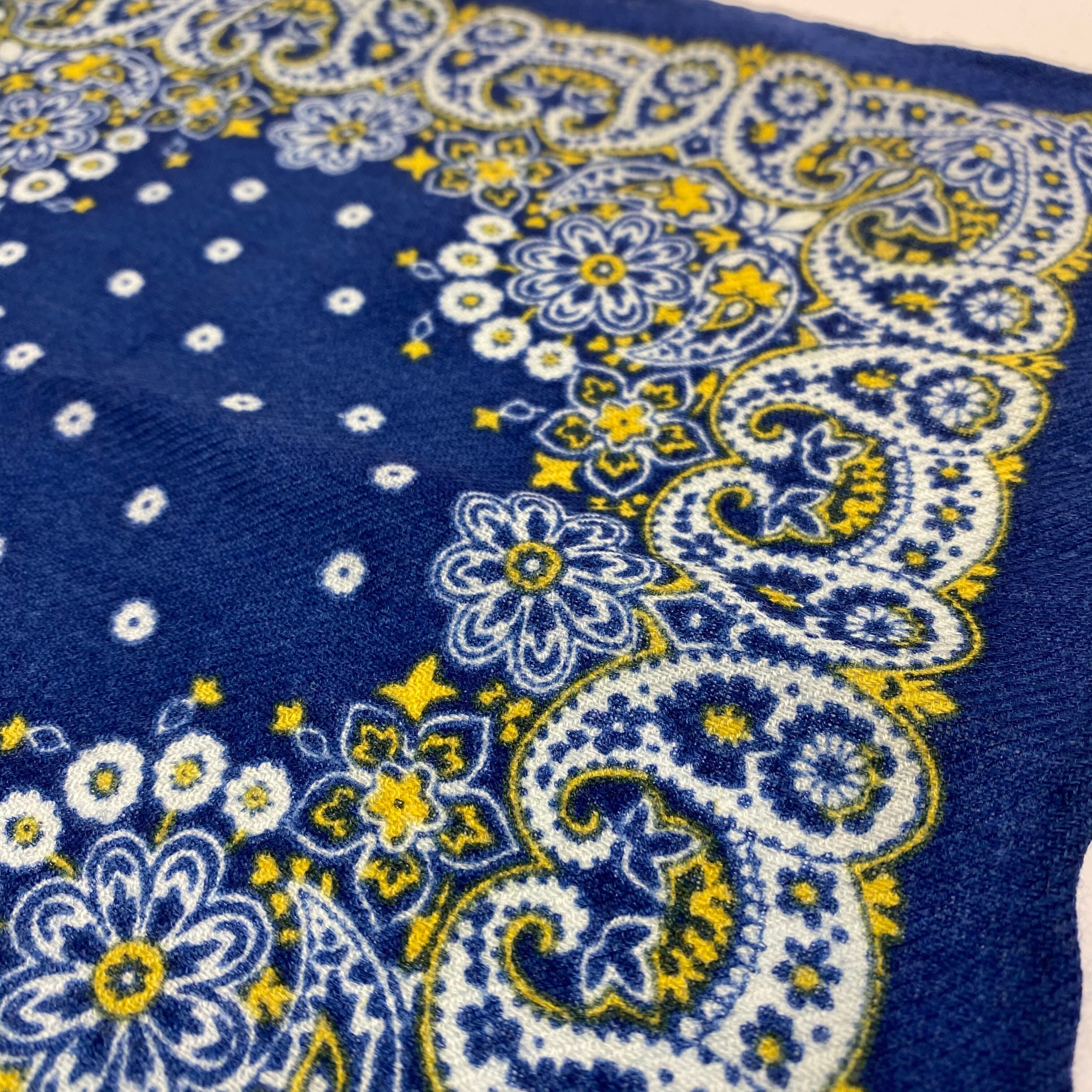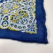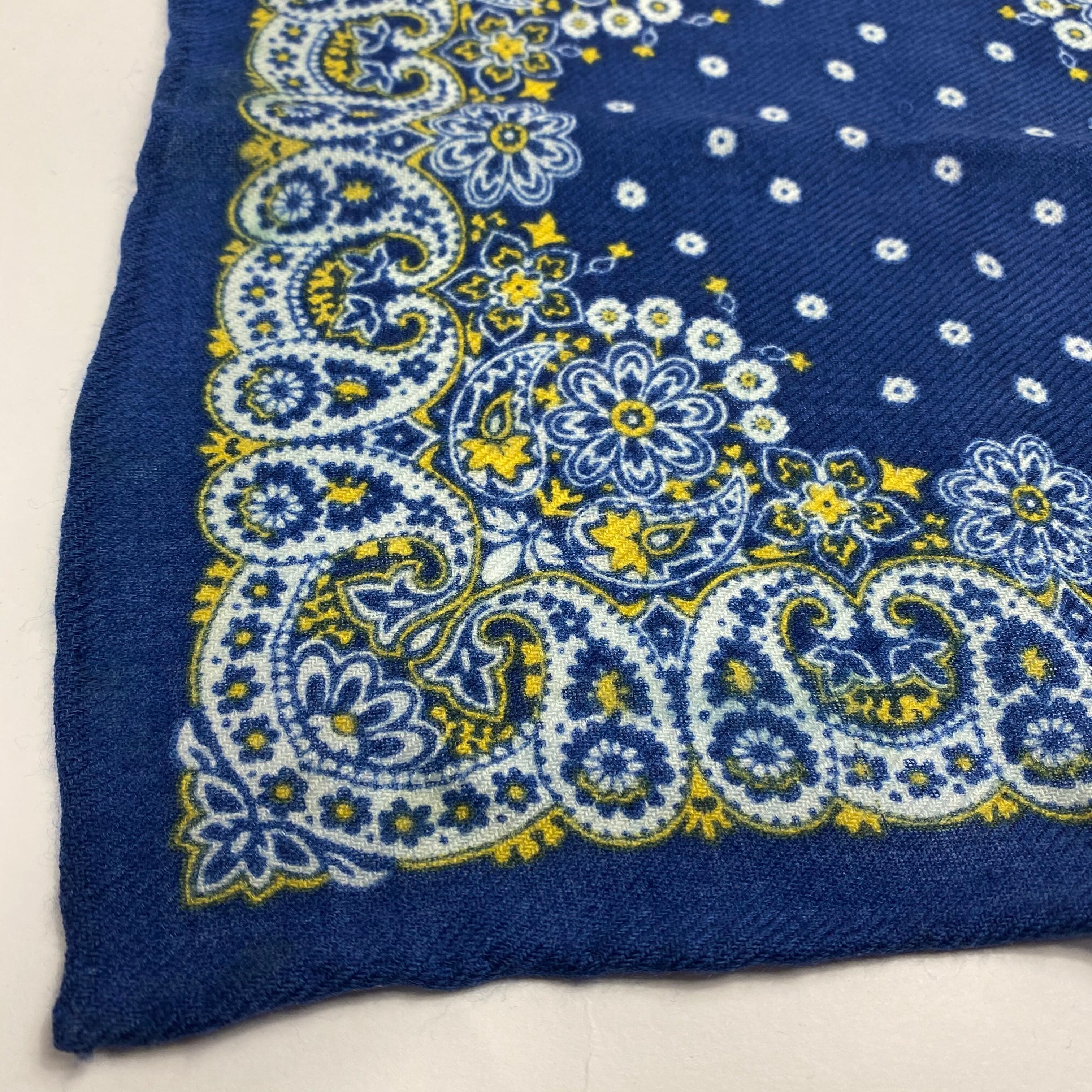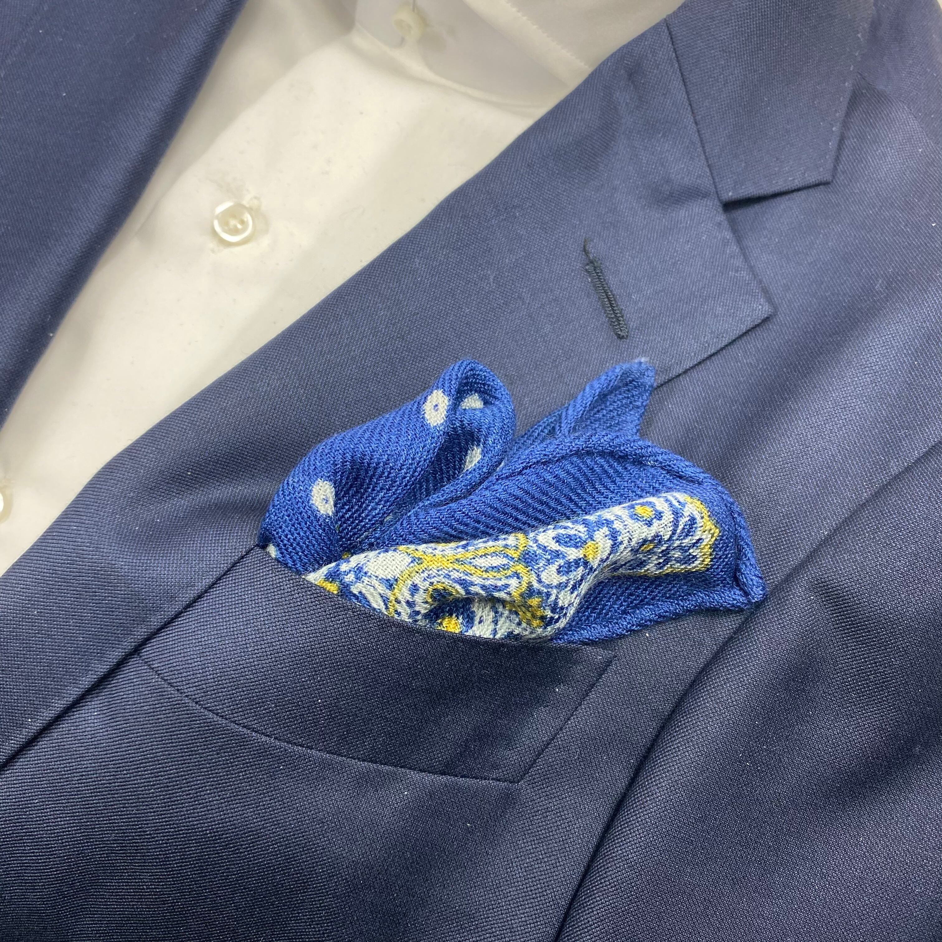 イタリア産 ロイヤルブルーペイズリー柄 ウールチーフ ポケットチーフ お洒落 プレゼント ギフト Vゾーン