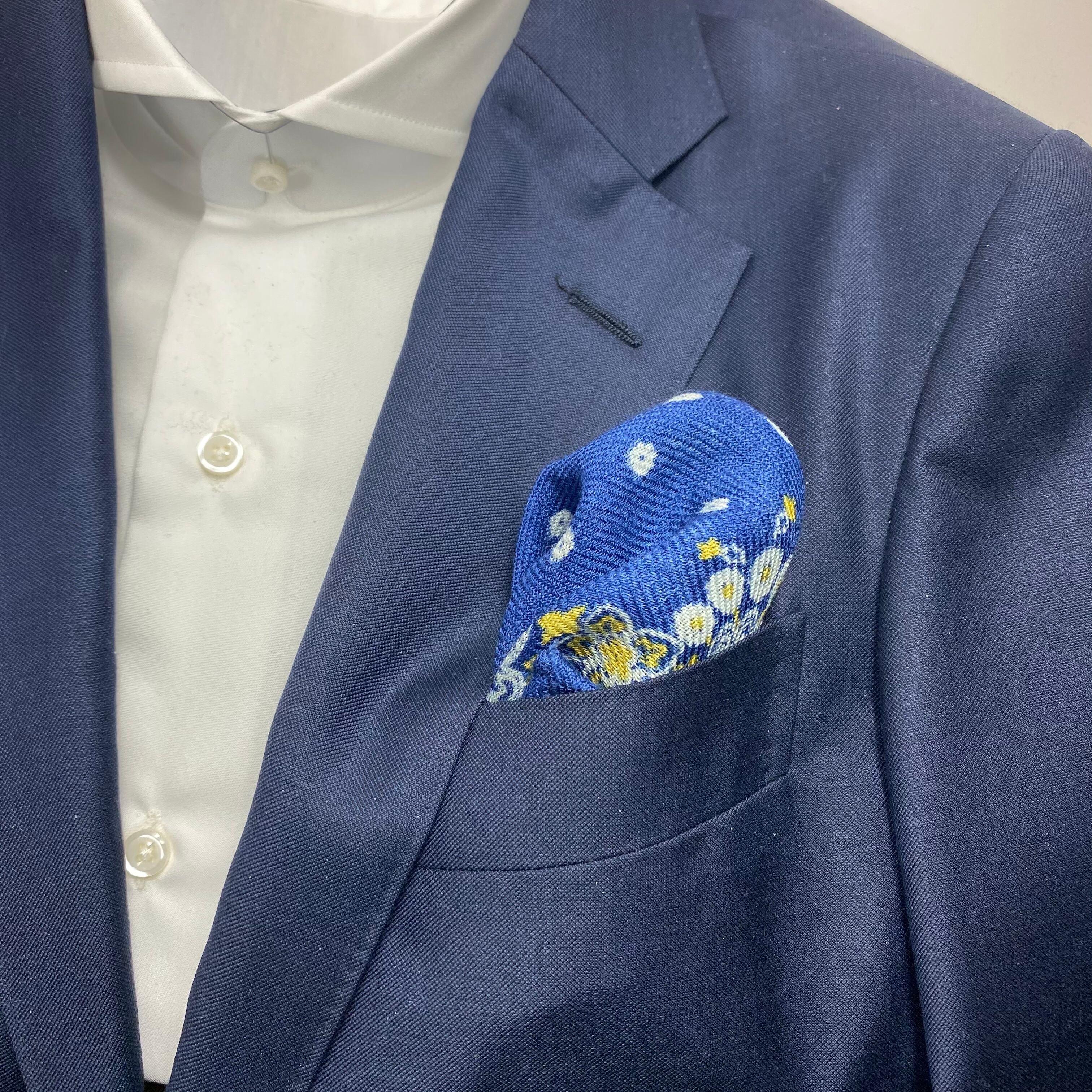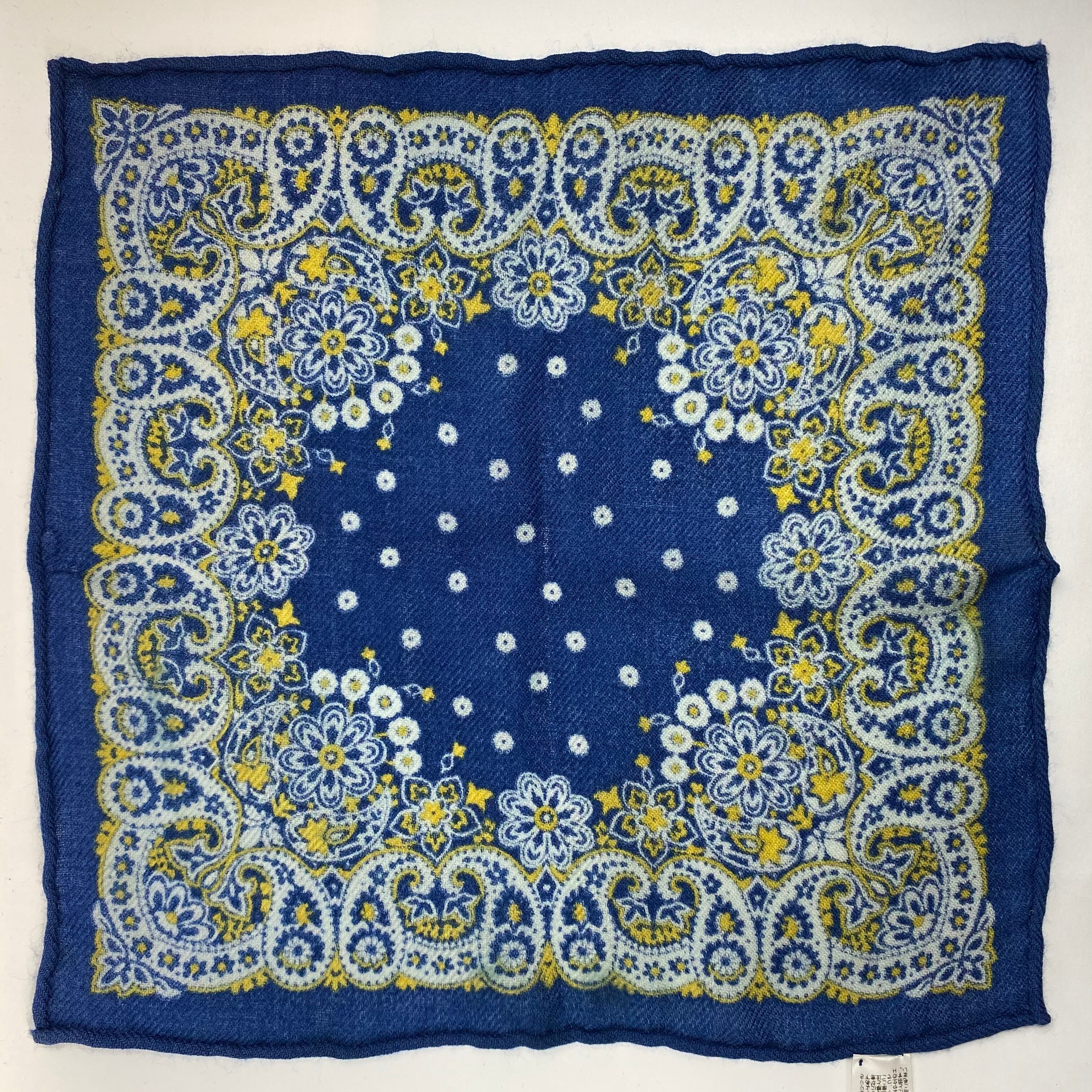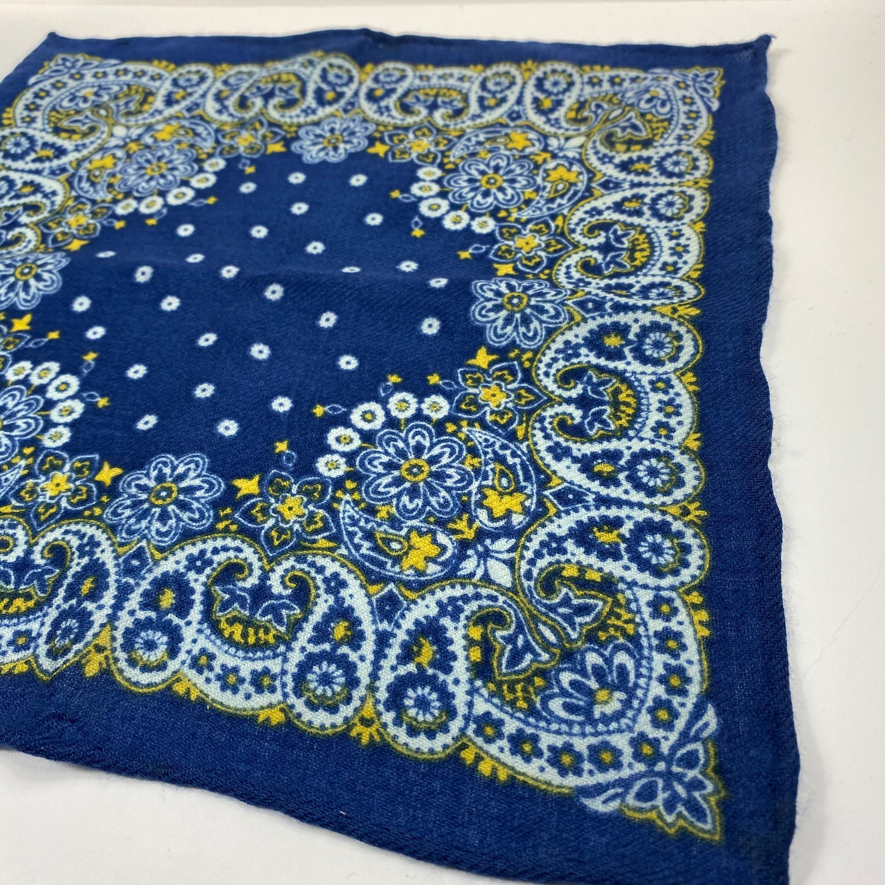 イタリア産 ロイヤルブルーペイズリー柄 ウールチーフ ポケットチーフ お洒落 プレゼント ギフト Vゾーン