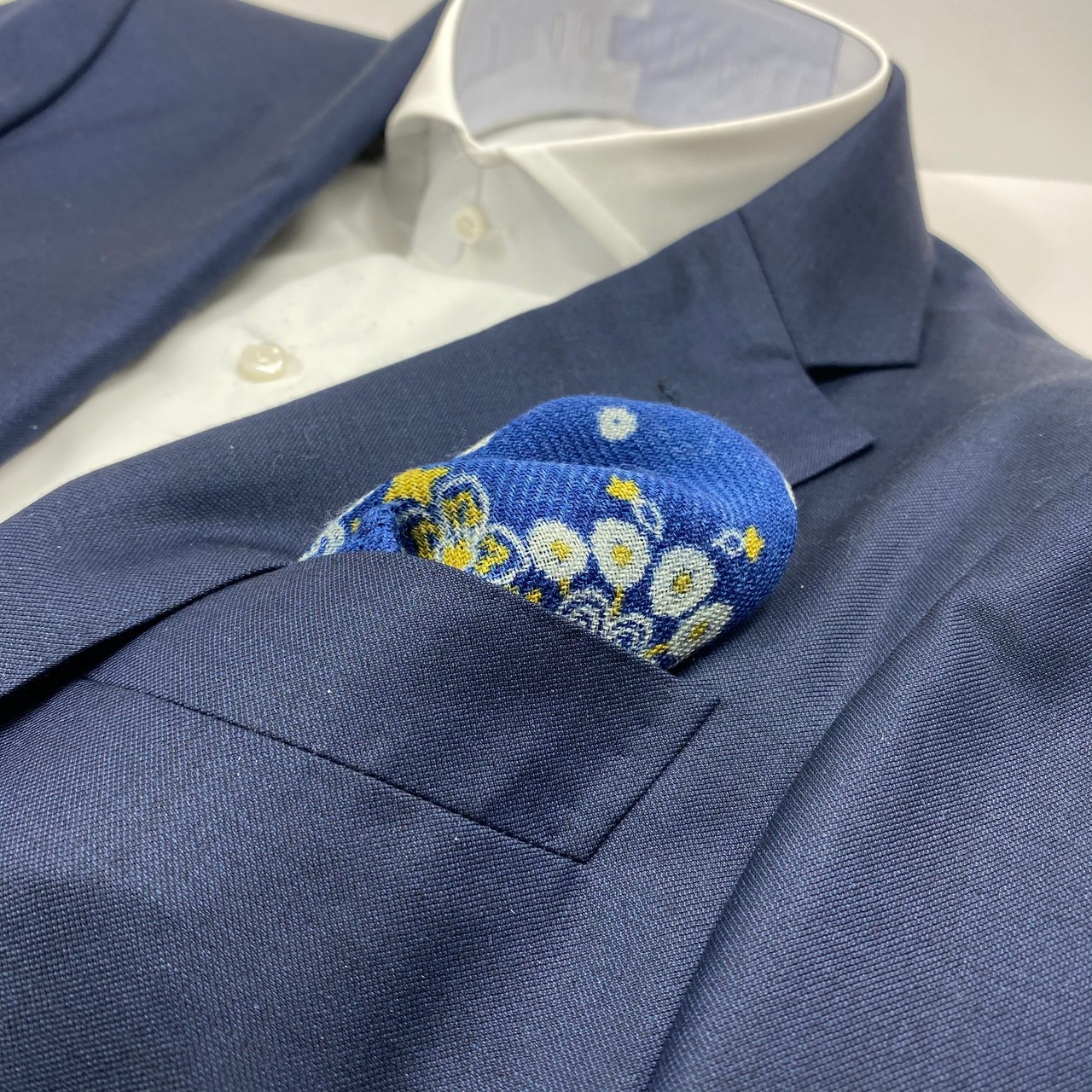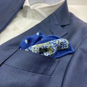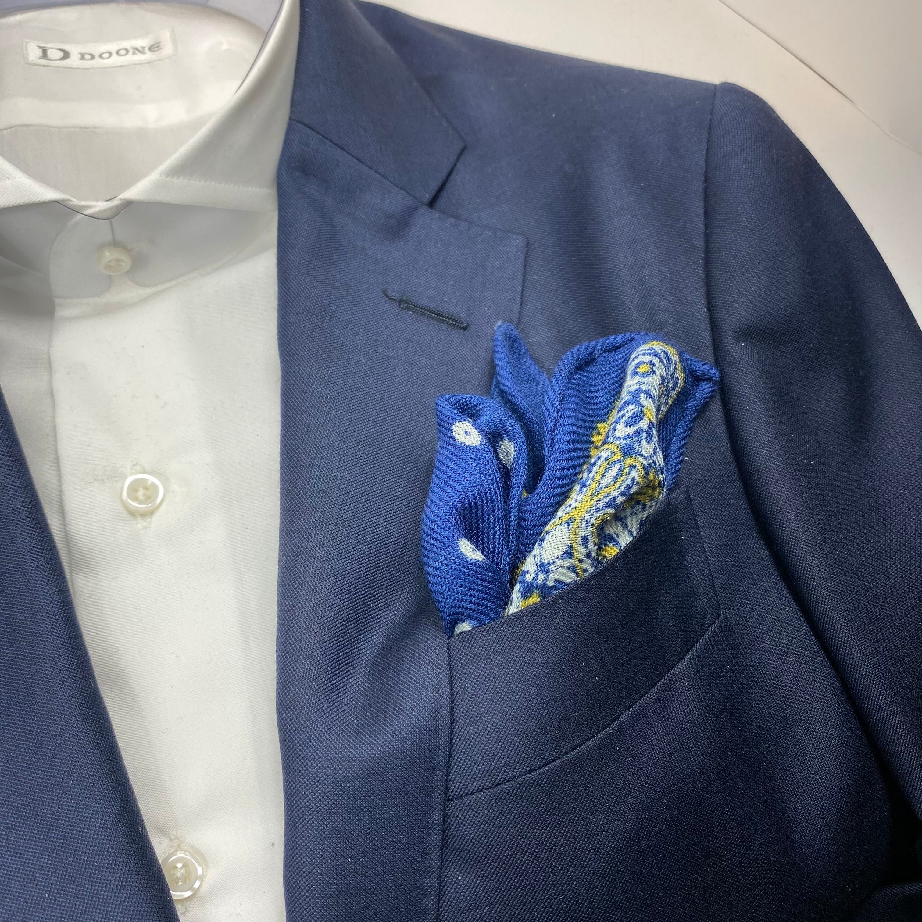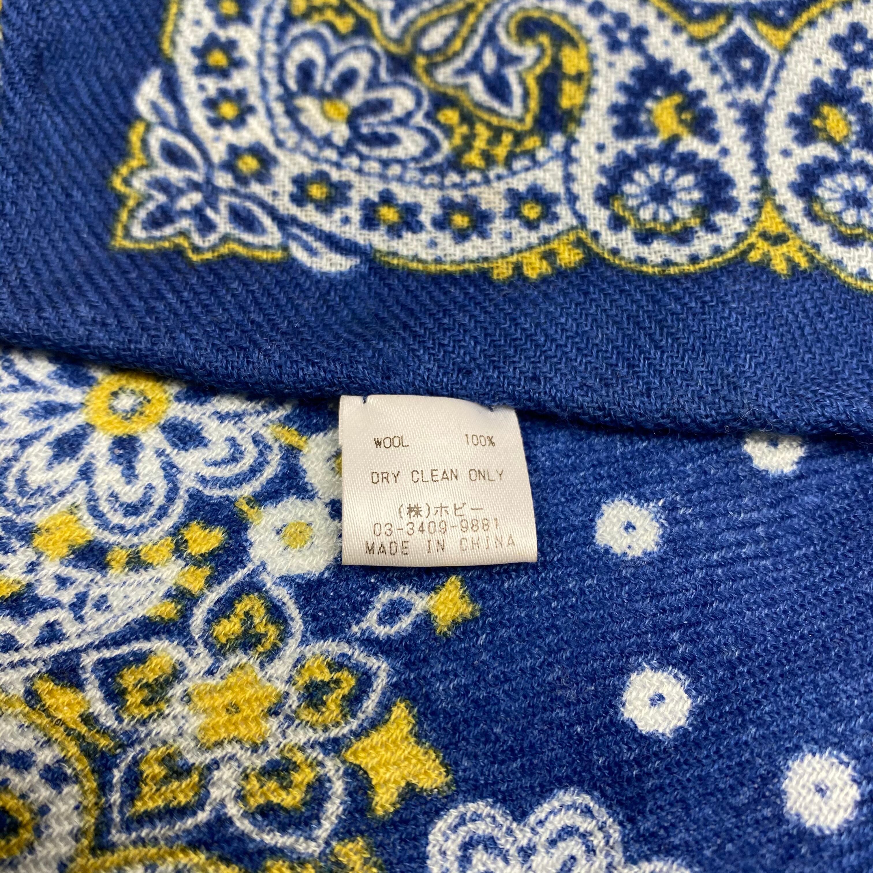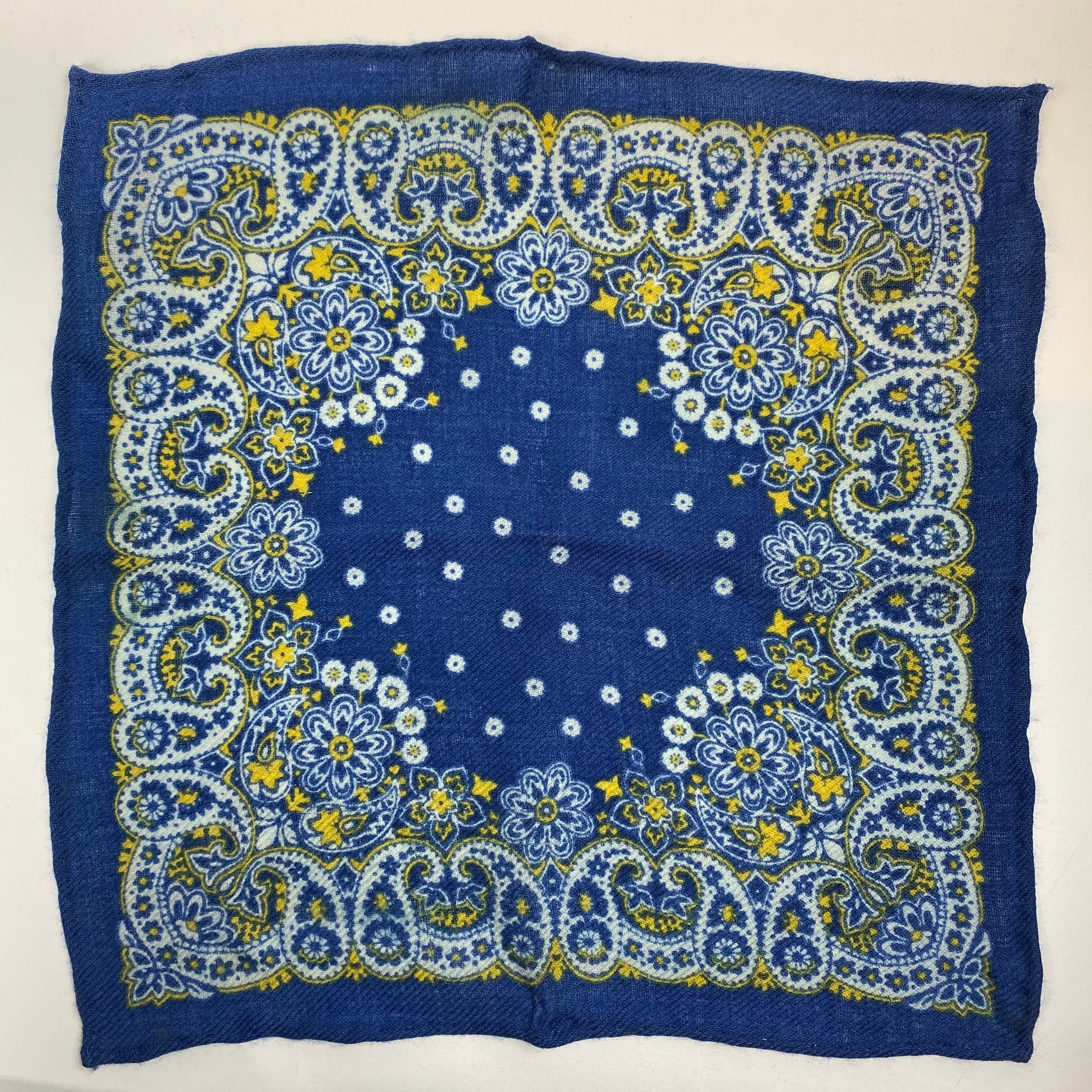 イタリア産 ロイヤルブルーペイズリー柄 ウールチーフ ポケットチーフ お洒落 プレゼント ギフト Vゾーン