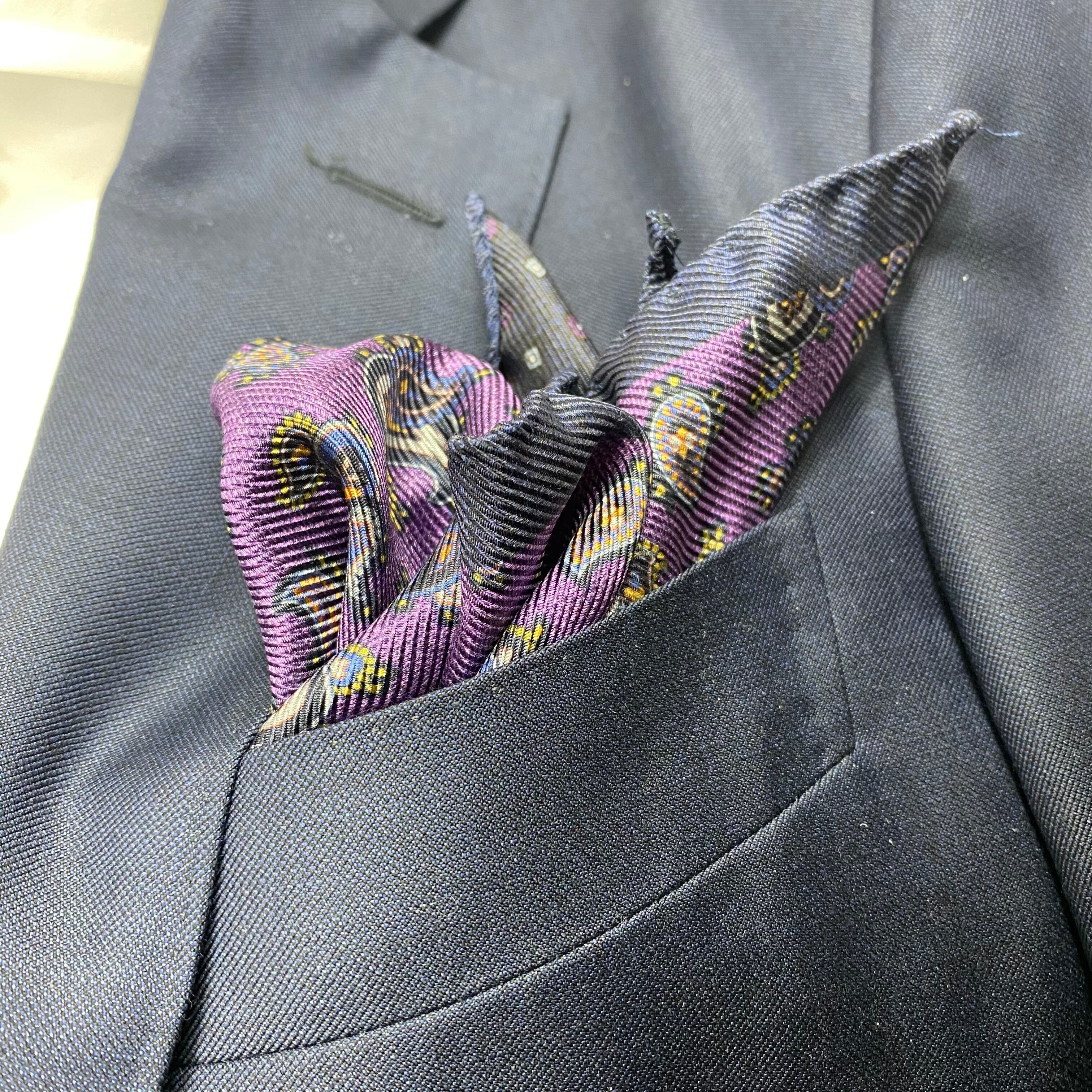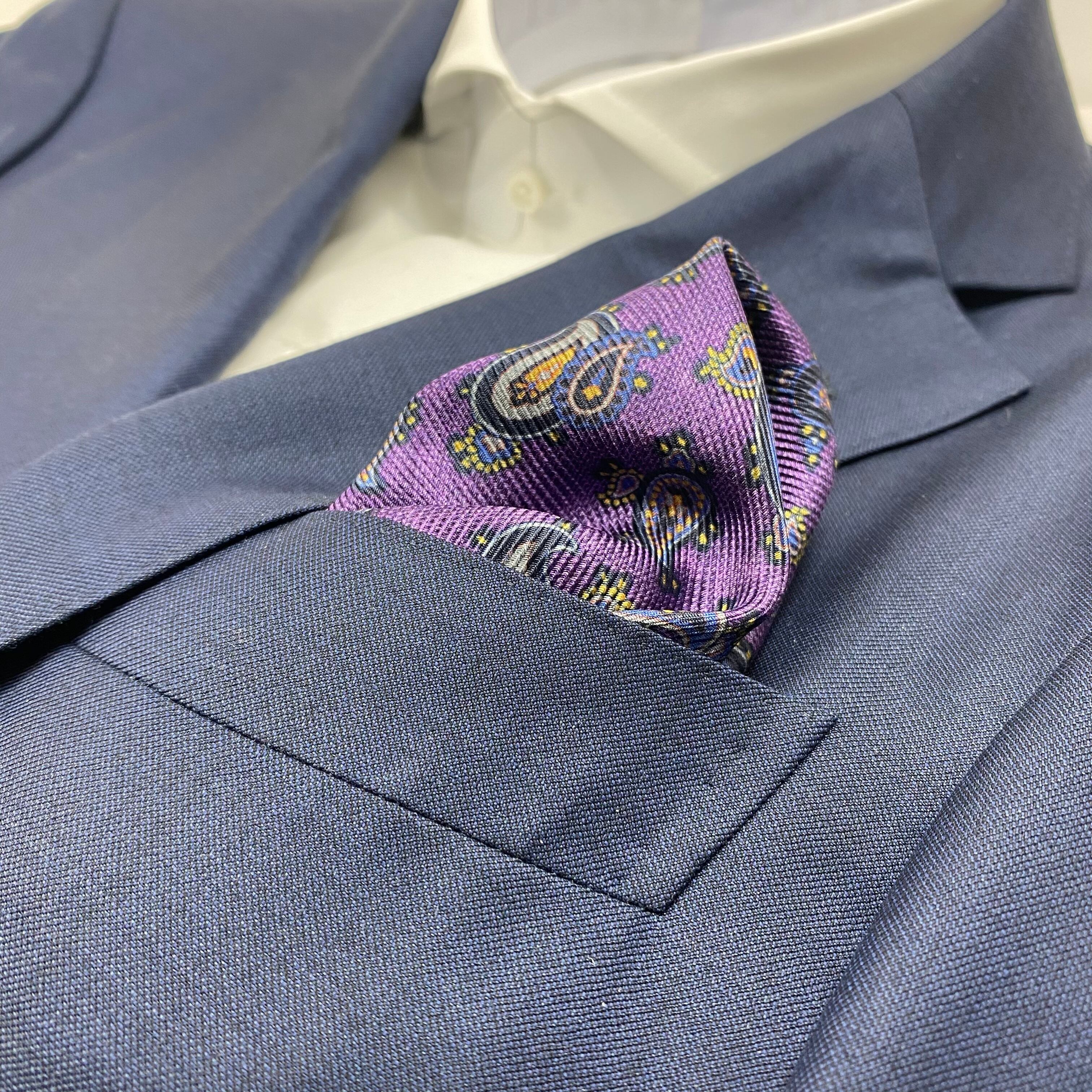 イタリア産 パープルペイズリー&パープルドット リバーシブル シルクチーフ ポケットチーフ お洒落 プレゼント ギフト Vゾーン