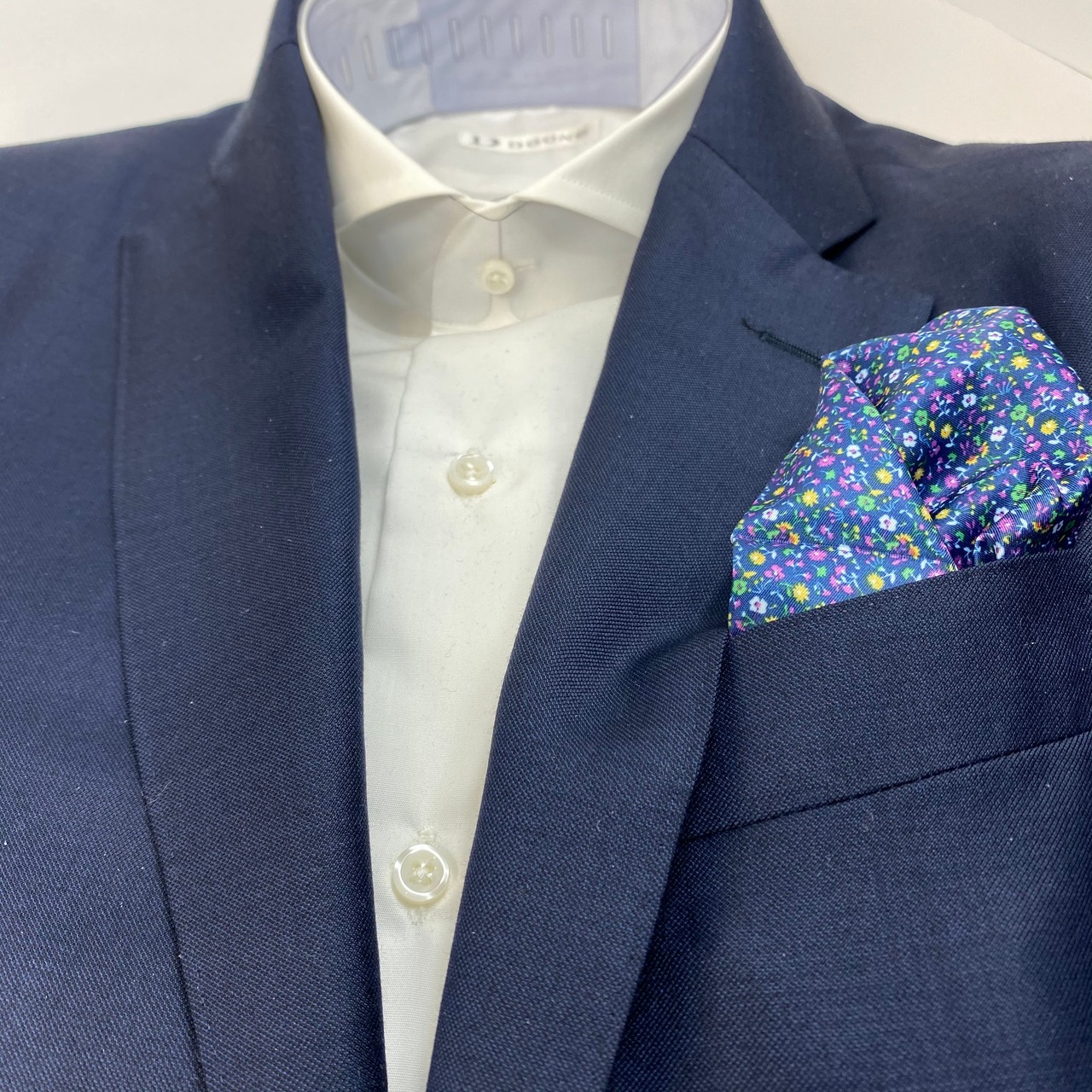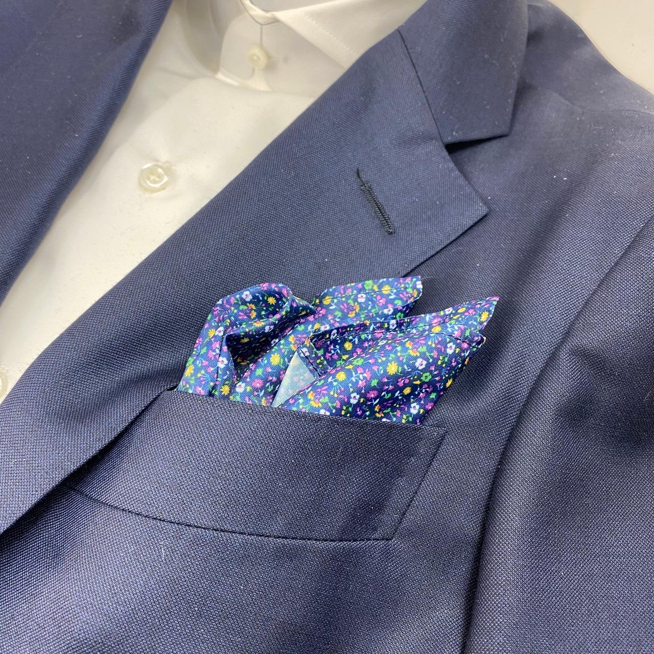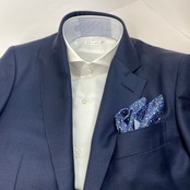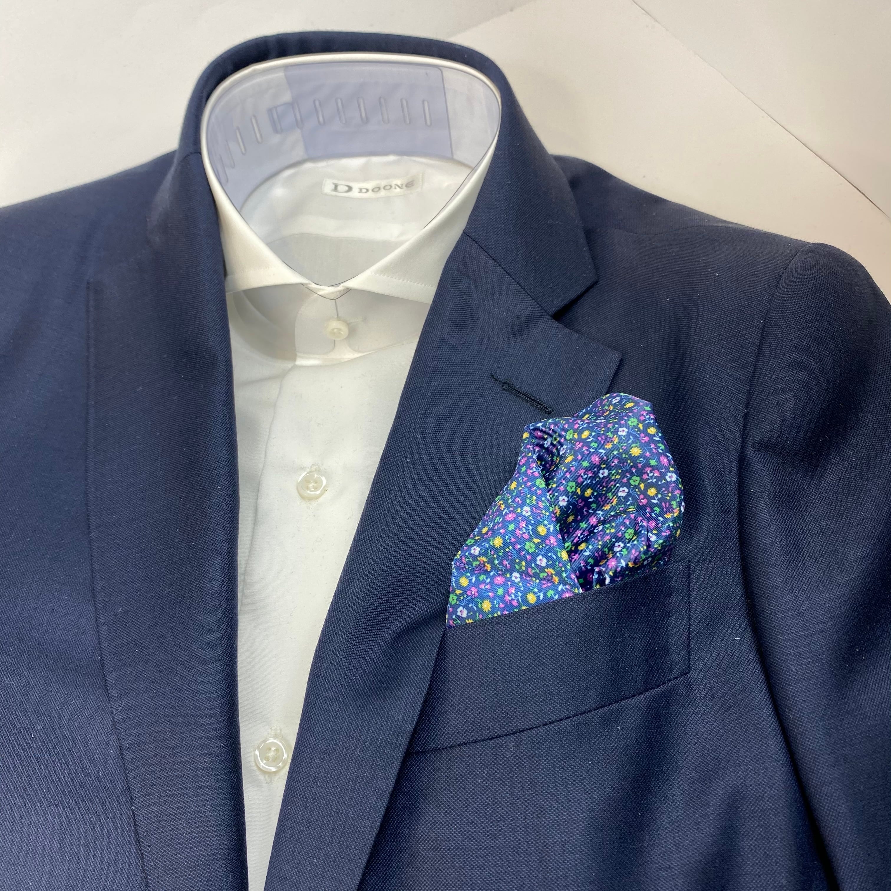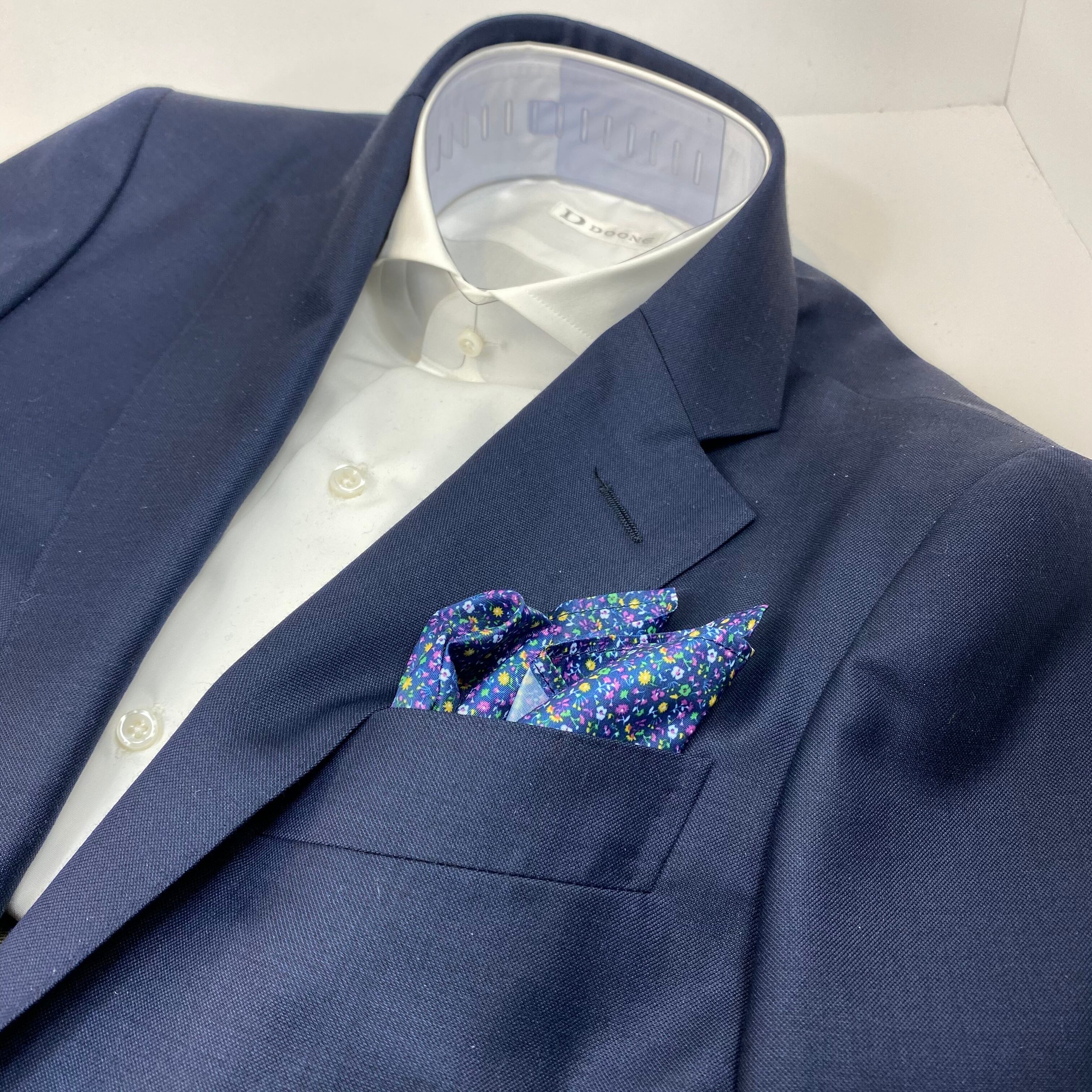 国産 ネイビー×ピンク小花柄 チーフ ポケットチーフ お洒落 プレゼント ギフト Vゾーン