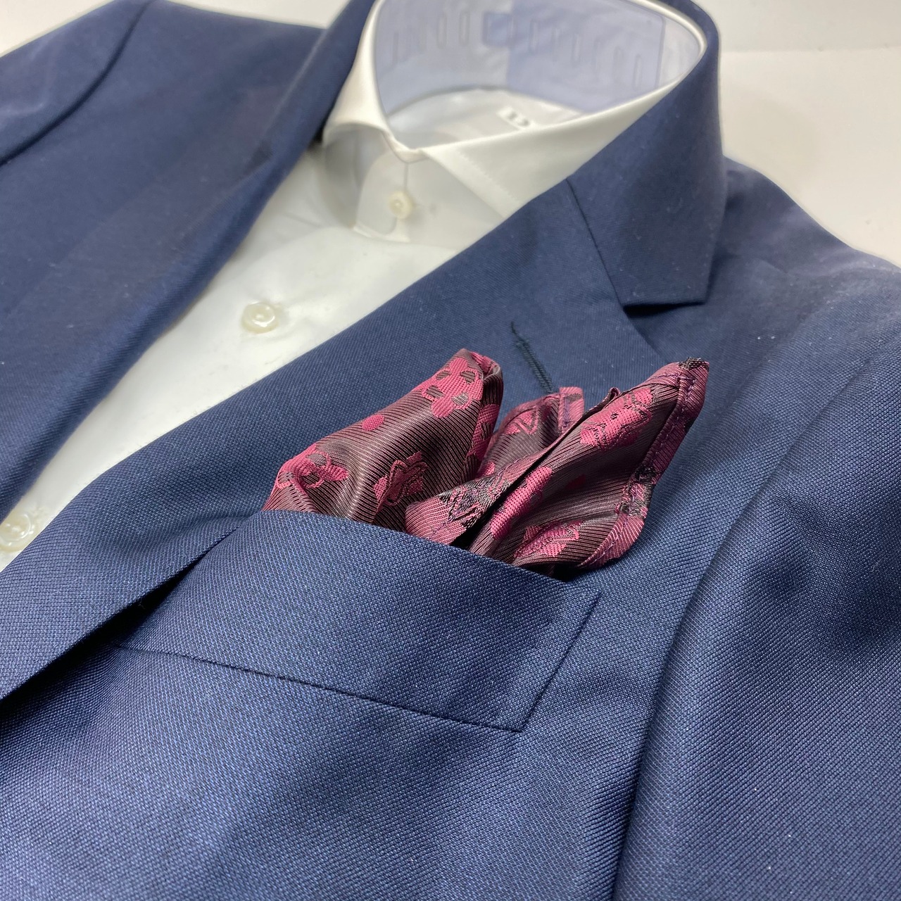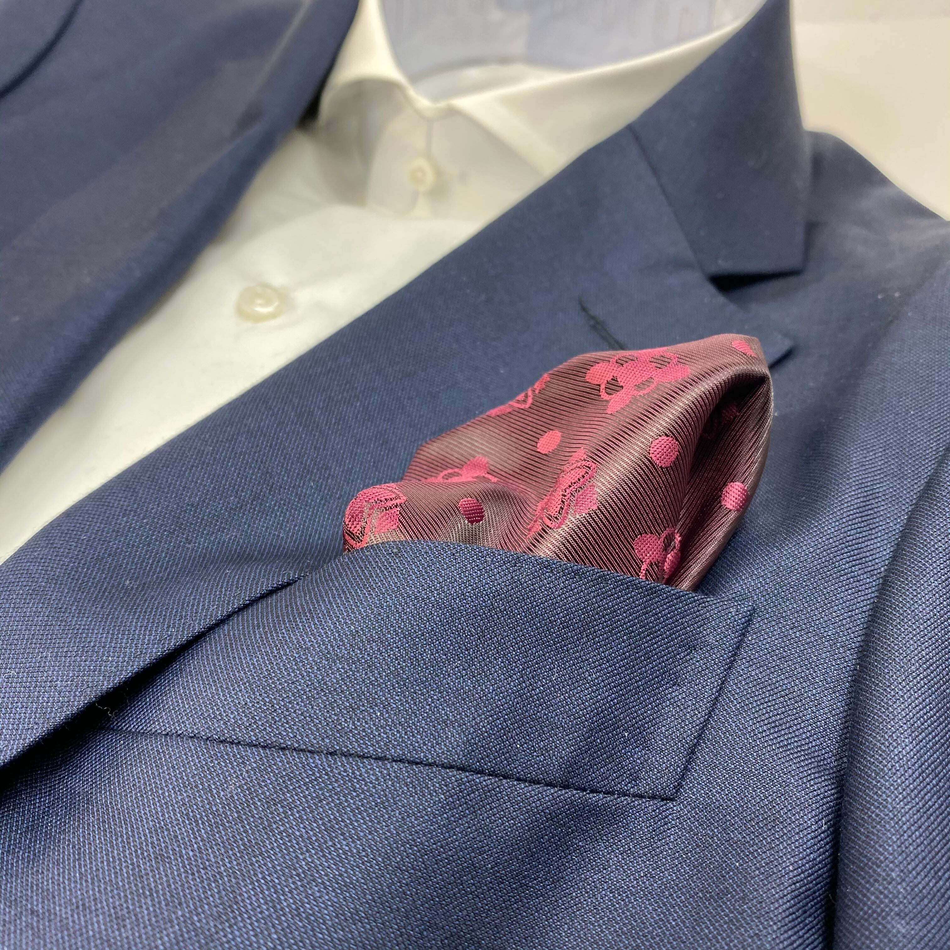 国産 バーガンディ小紋柄チーフ ポケットチーフ お洒落 プレゼント ギフト Vゾーン