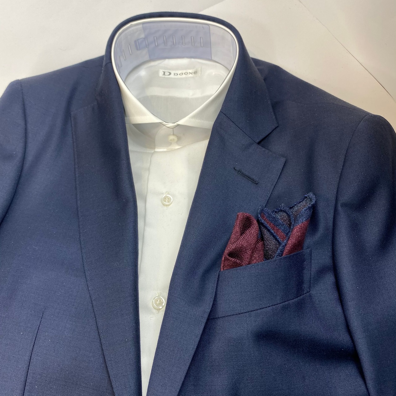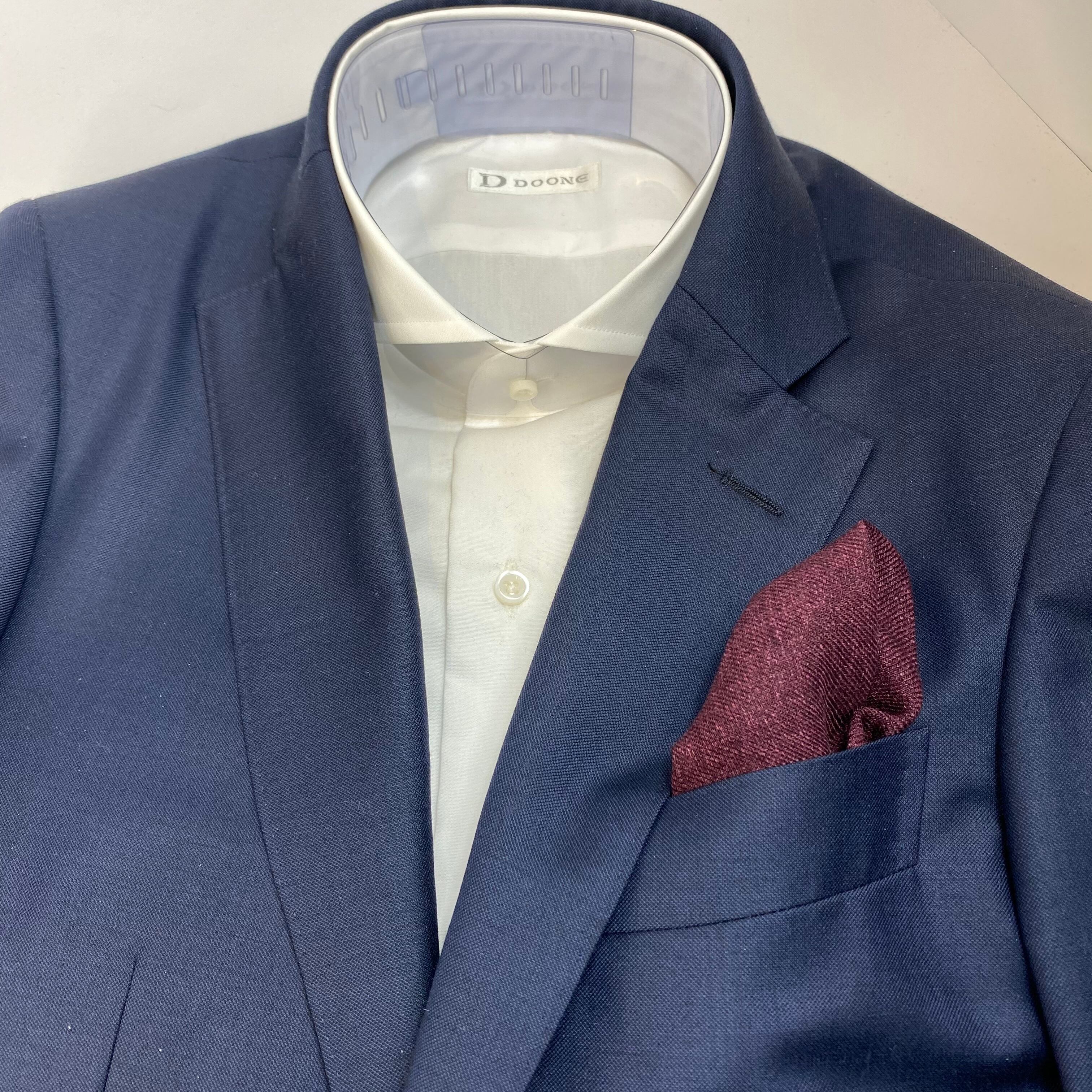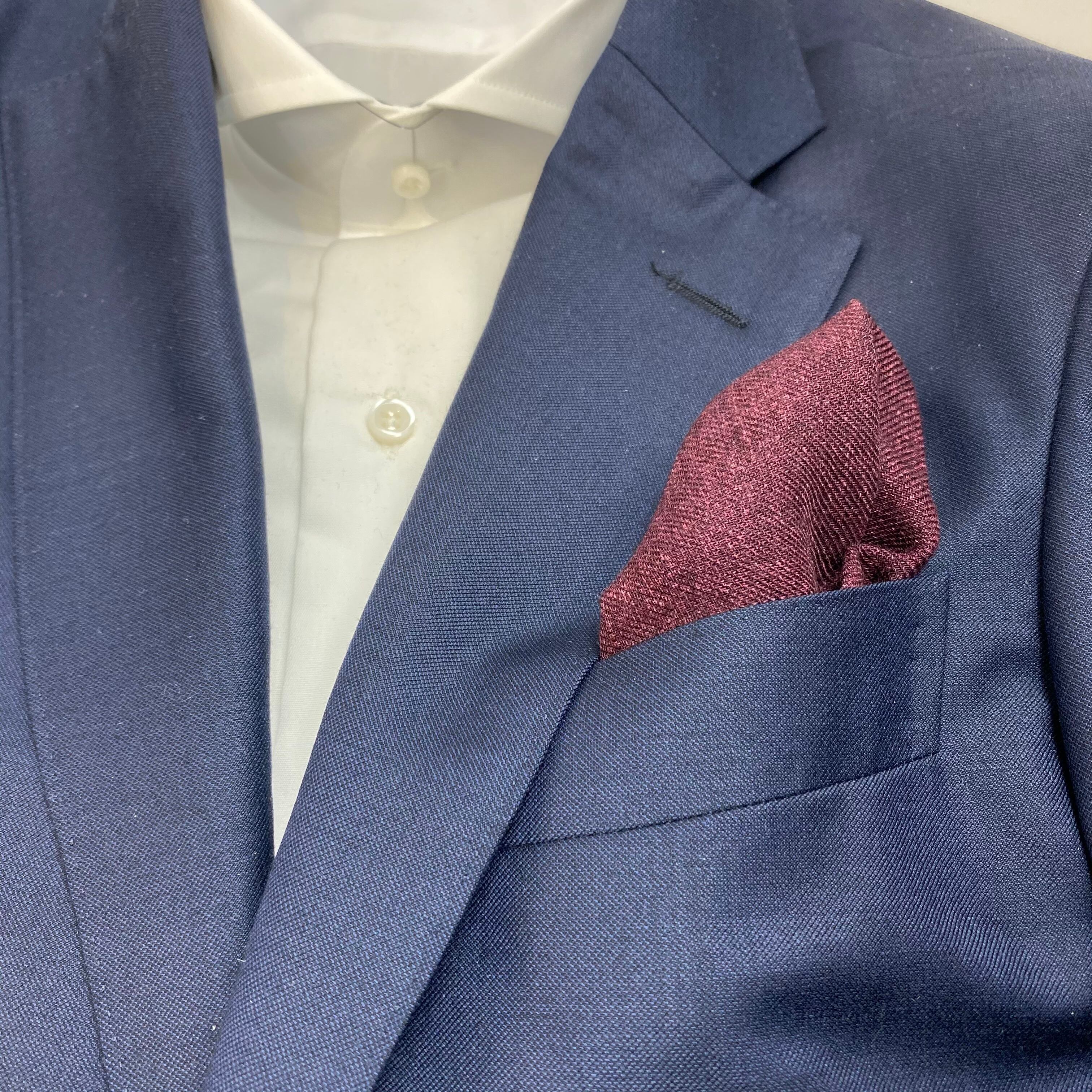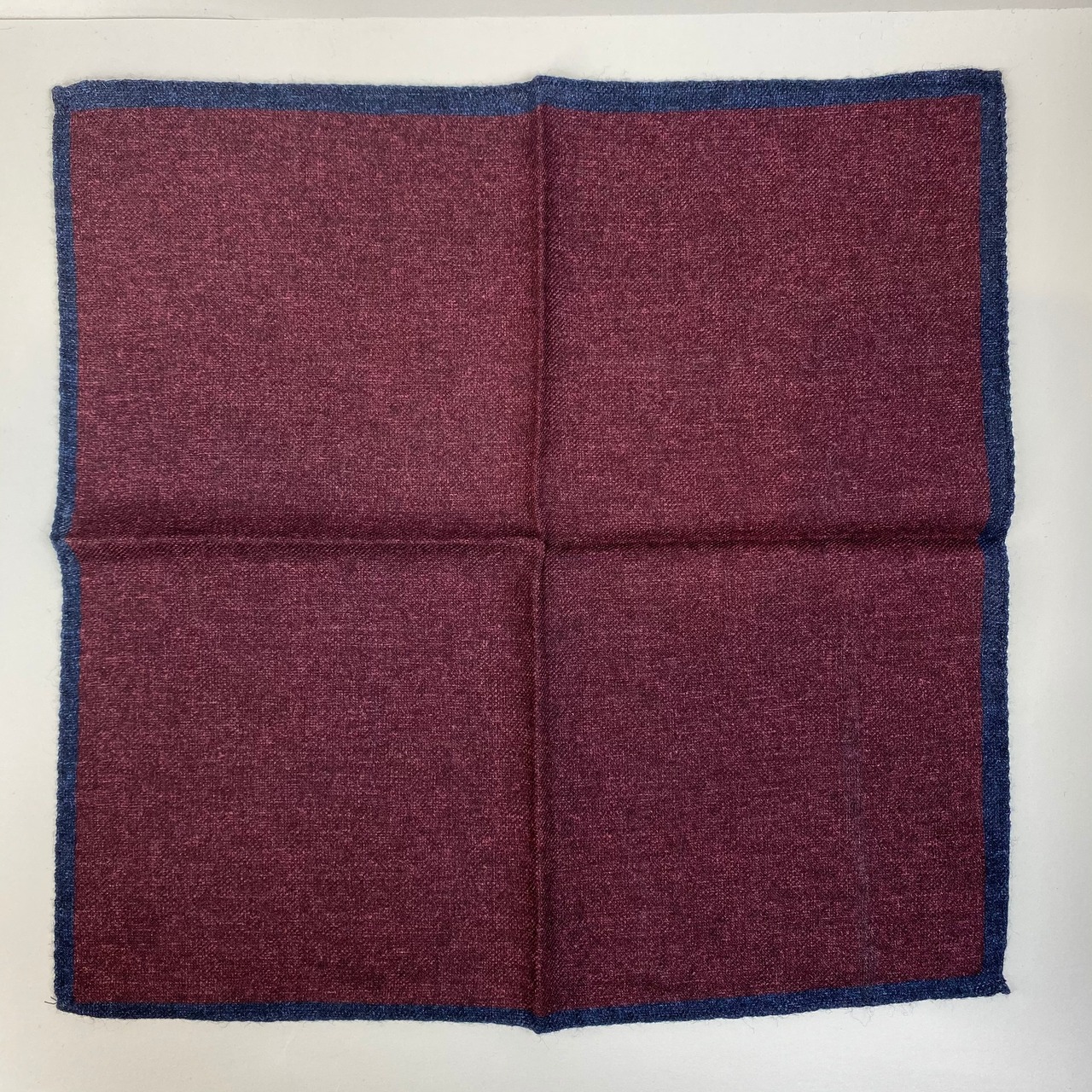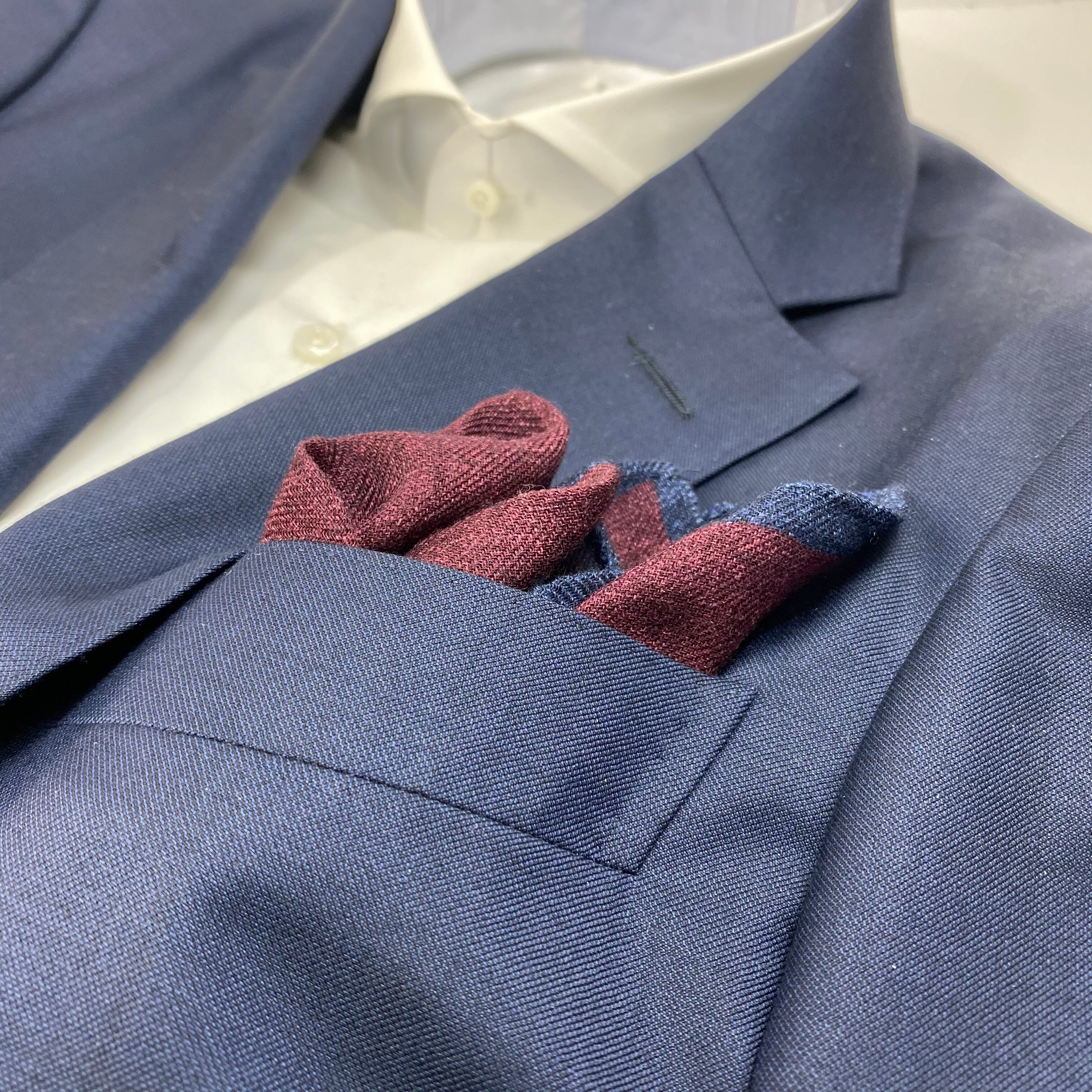 ネイビーに縁取られた、程良いウォーム感が魅力のウール100%ポケットチーフ。