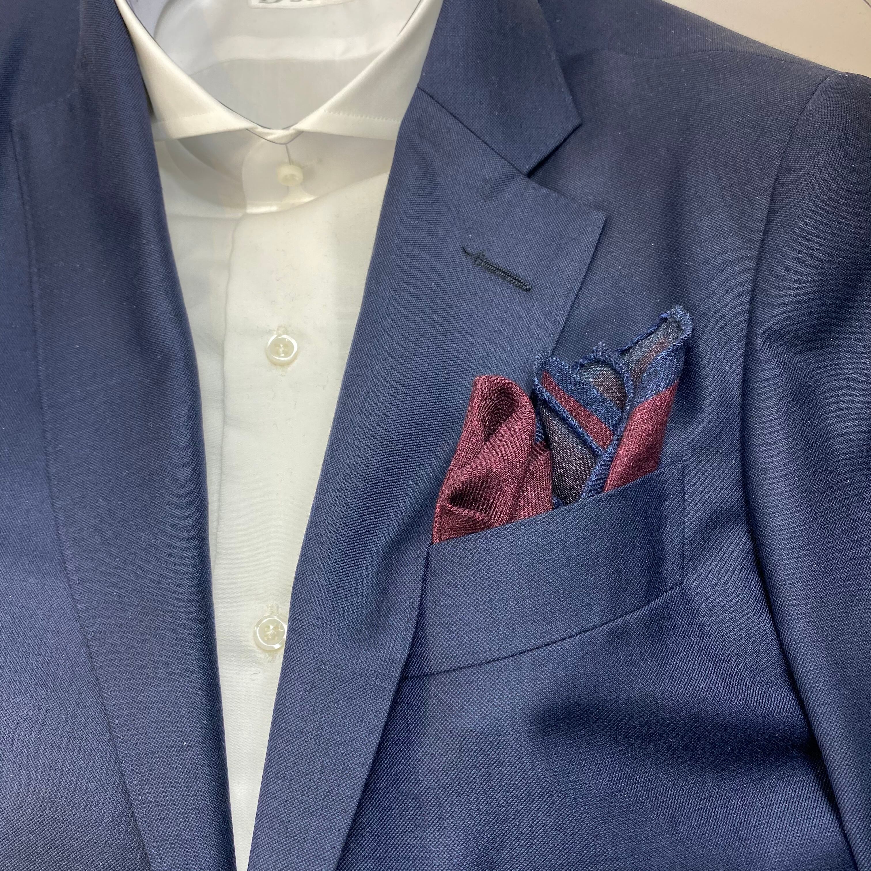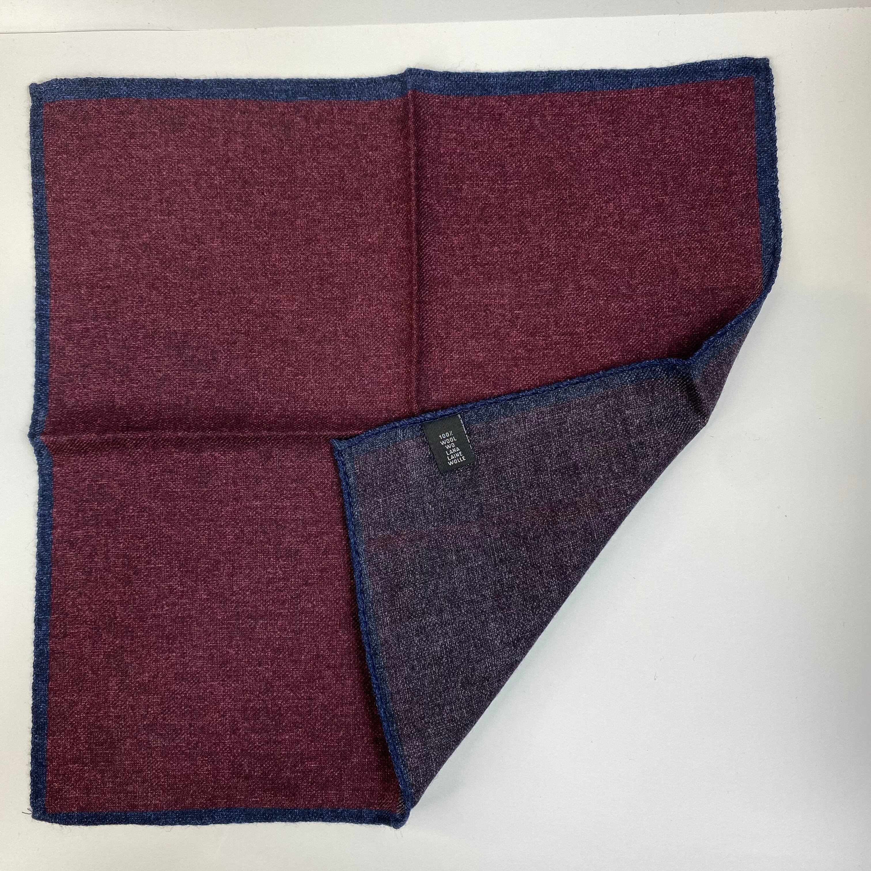 イタリア産 ワインレッド×パープル リバーシブル ウールチーフ ポケットチーフ お洒落 プレゼント ギフト Vゾーン