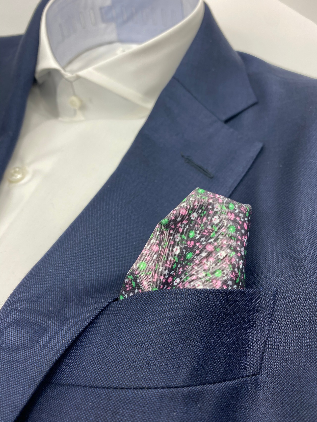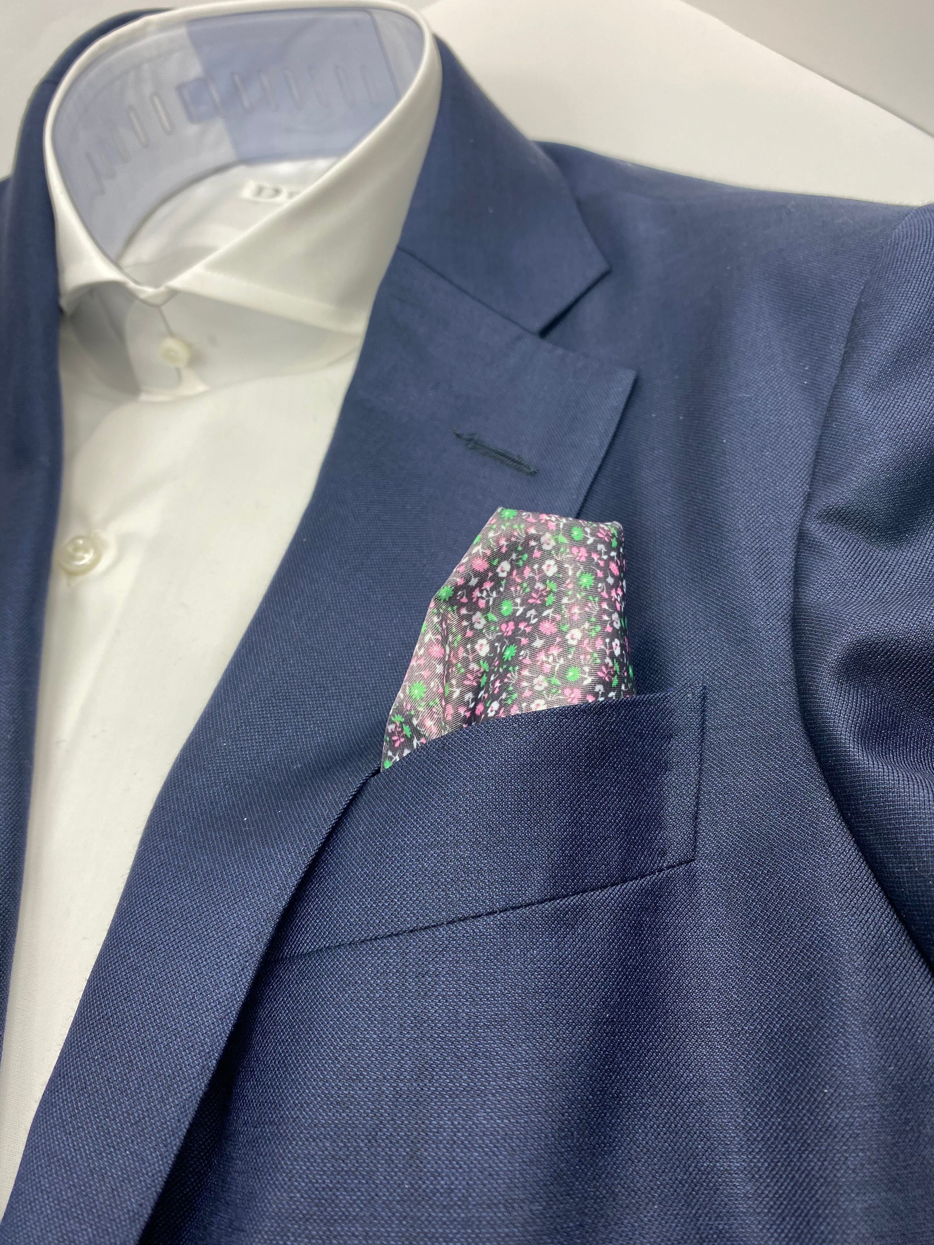 国産 ブラウン×ピンク小花柄チーフ ポケットチーフ お洒落 プレゼント ギフト Vゾーン